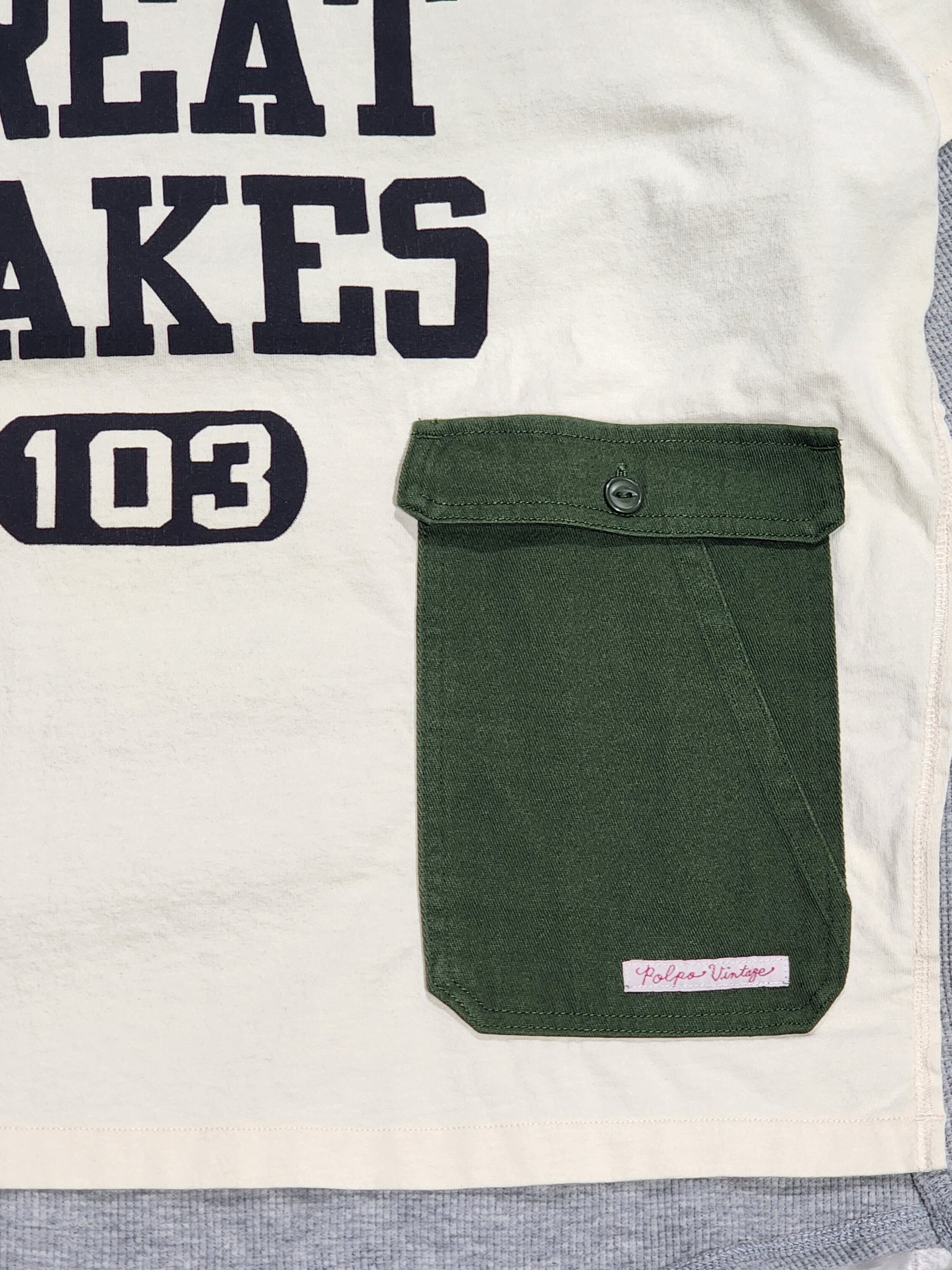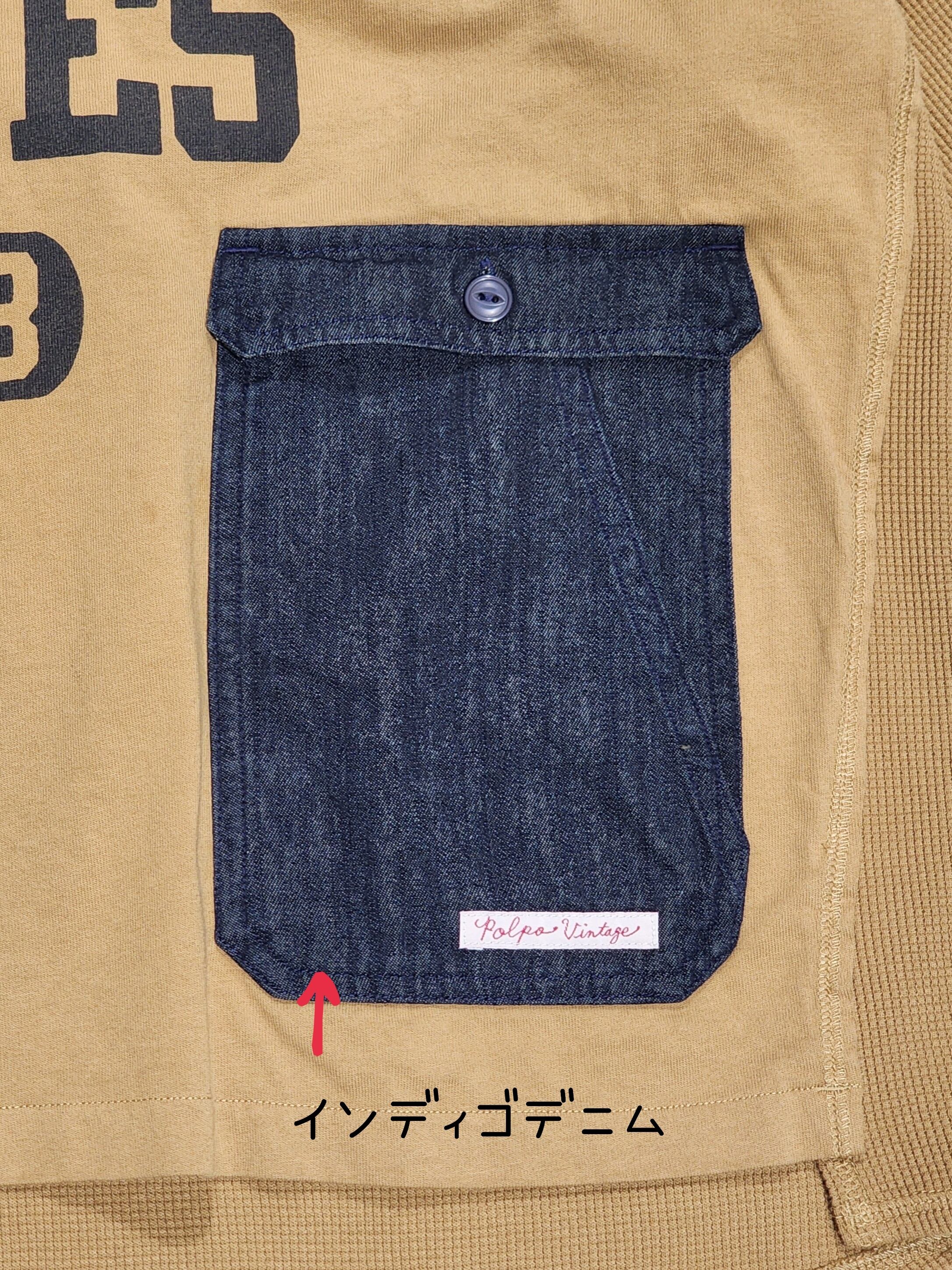 フロントのフラップ付きのポッケや前後のロゴなどワーク調の雰囲気が素敵な一枚です。