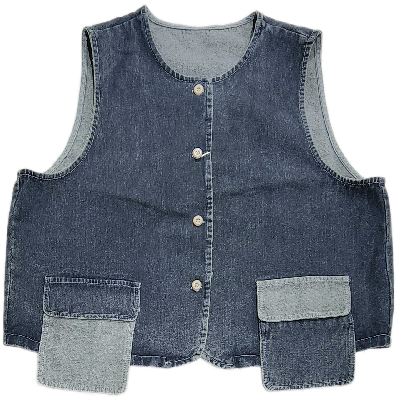 シンプルなデニムベストをベースにしたアイテムなので比較的使いやすく、ゆったりとした身幅で羽織りやすくなっています。
