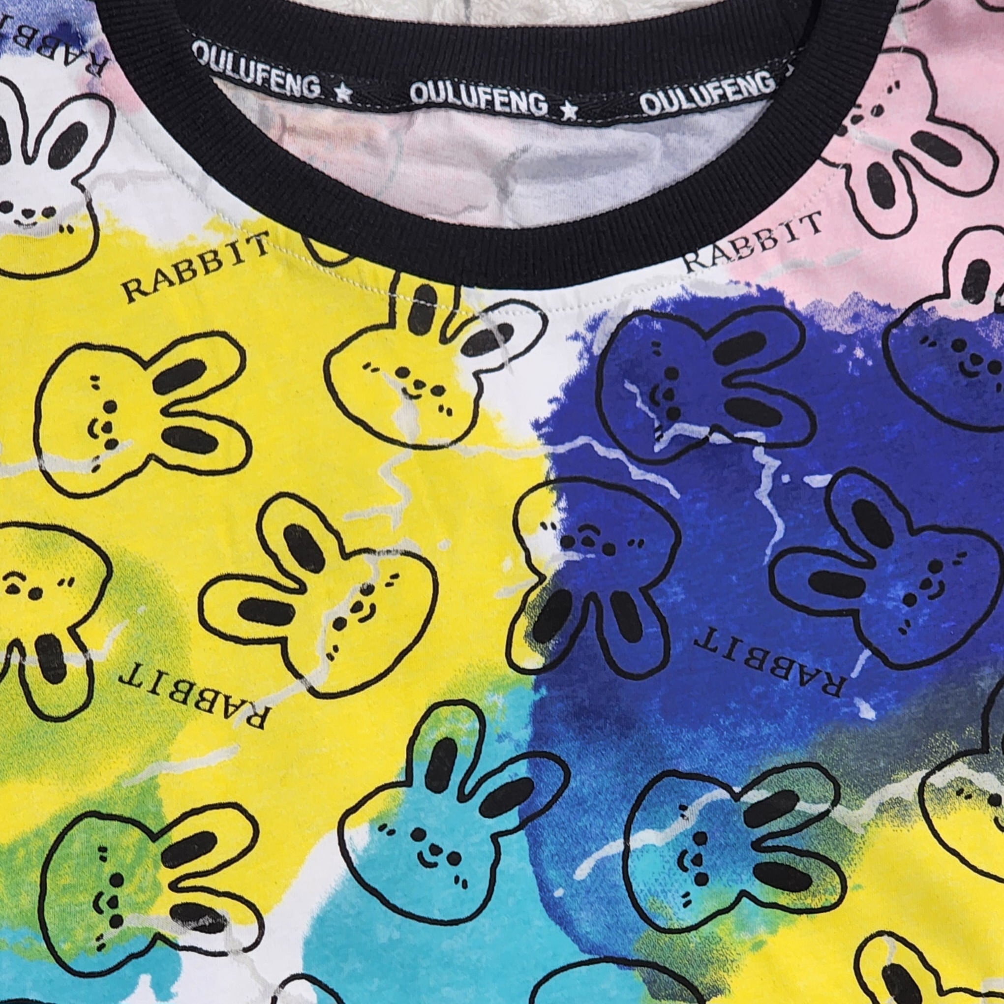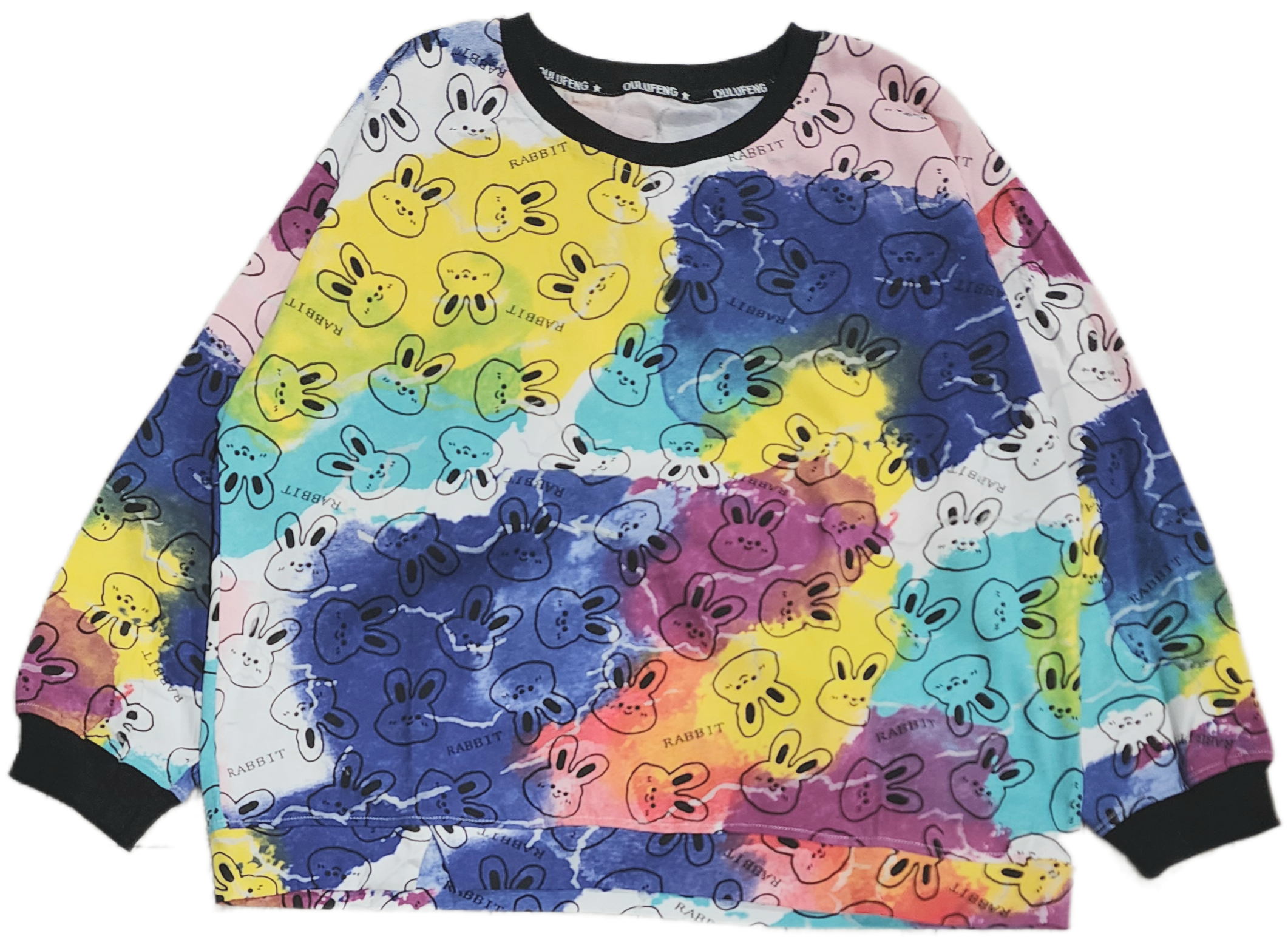 タイダイ染め風のプリントにうさぎのプリントを合わせた目を引くプルオーバー☆