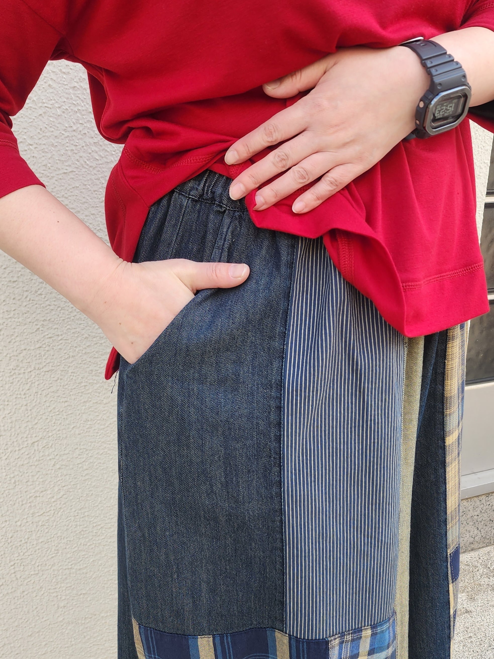 デニムをベースにしていますが、比較的薄手な生地をパッチワークしているので軽い着心地です。