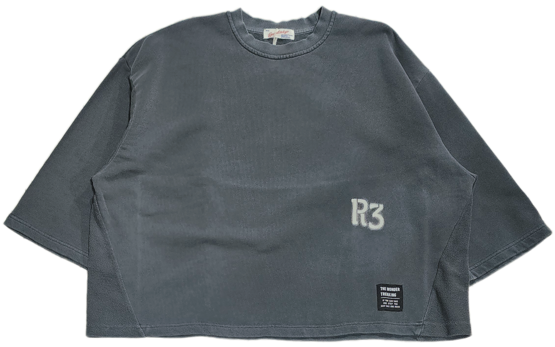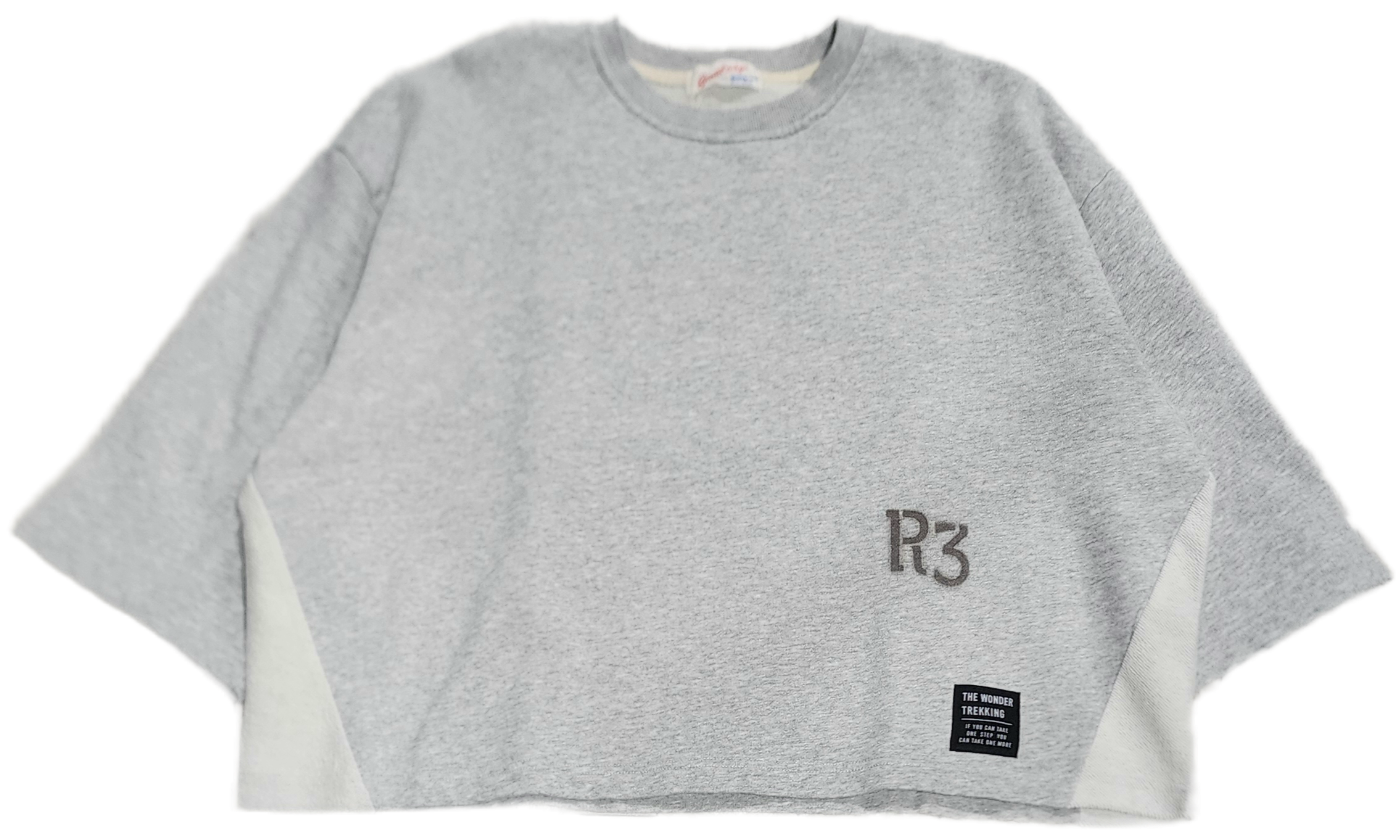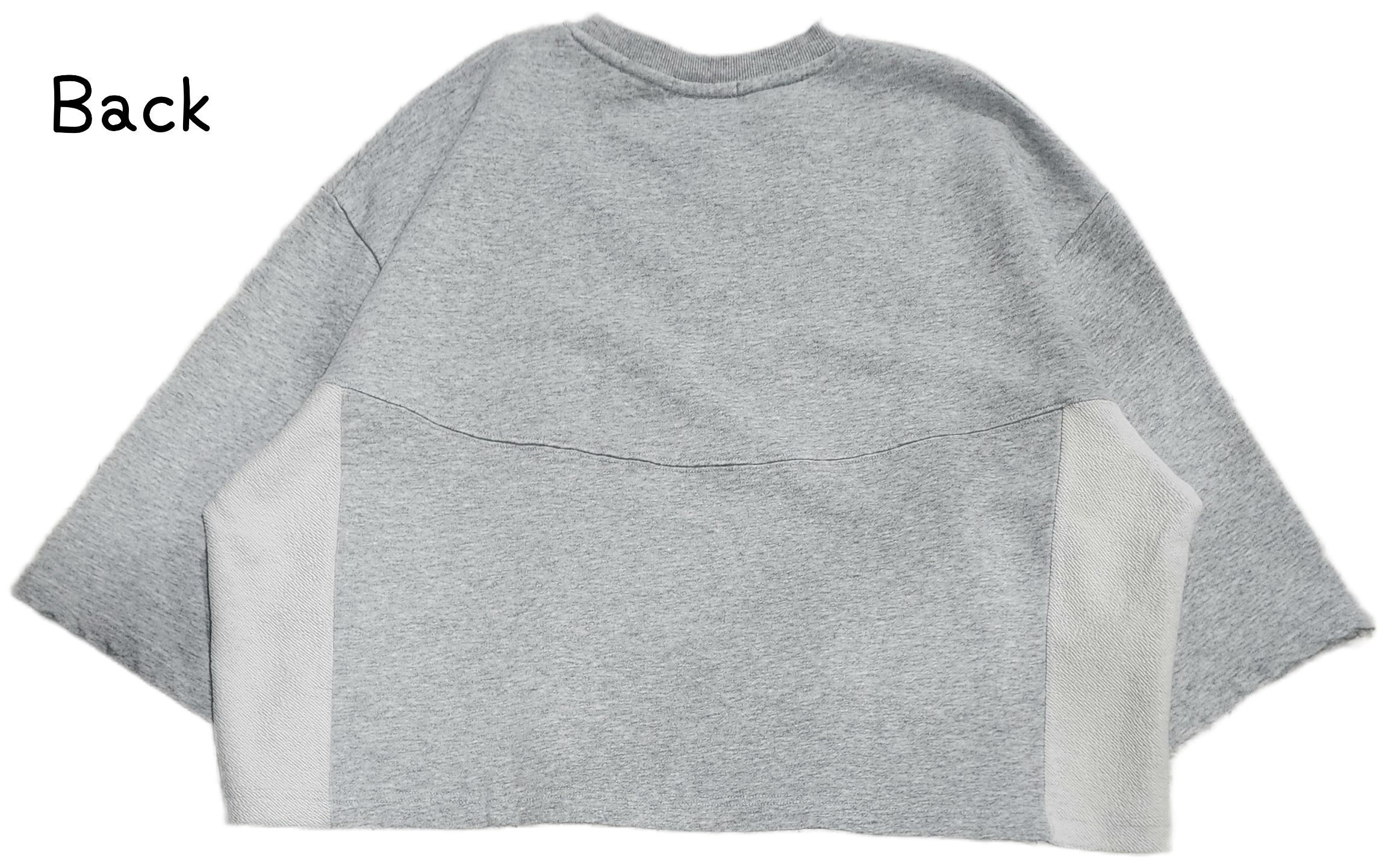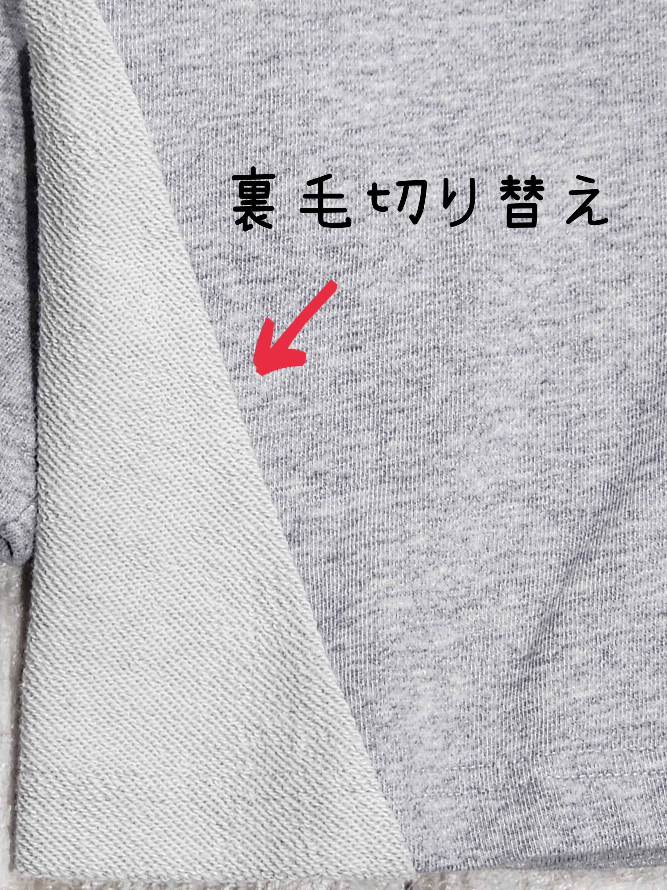 裏毛生地を使用して、サイドは裏毛を表に使って切り替えたデザインになっています。