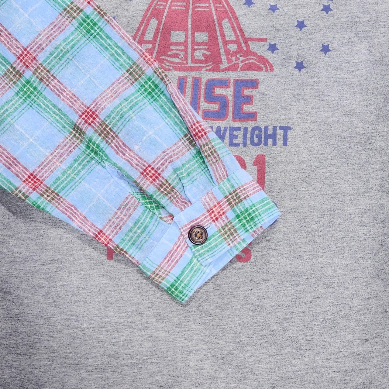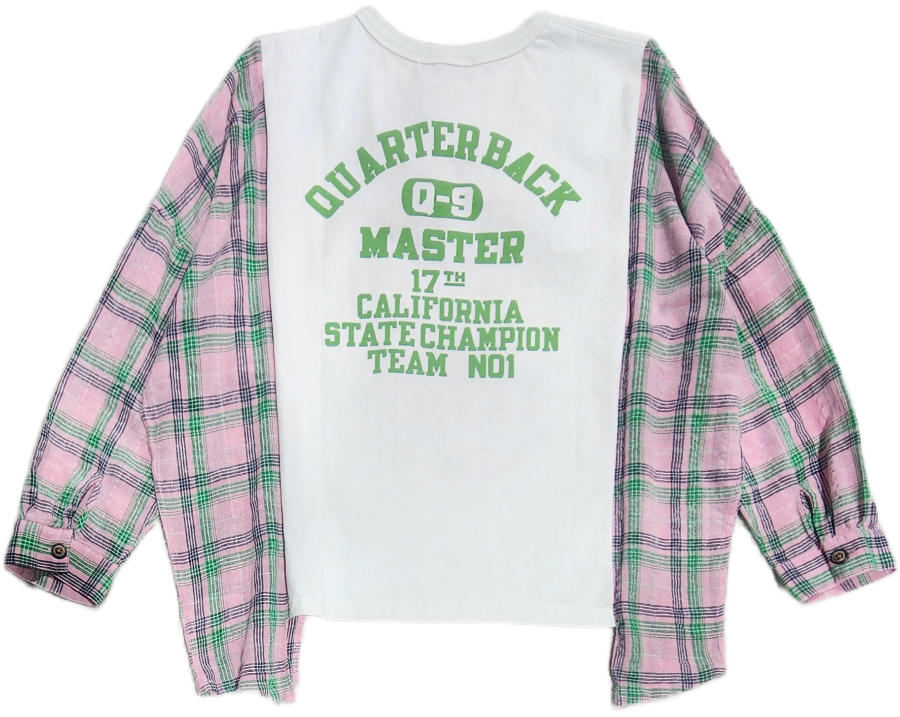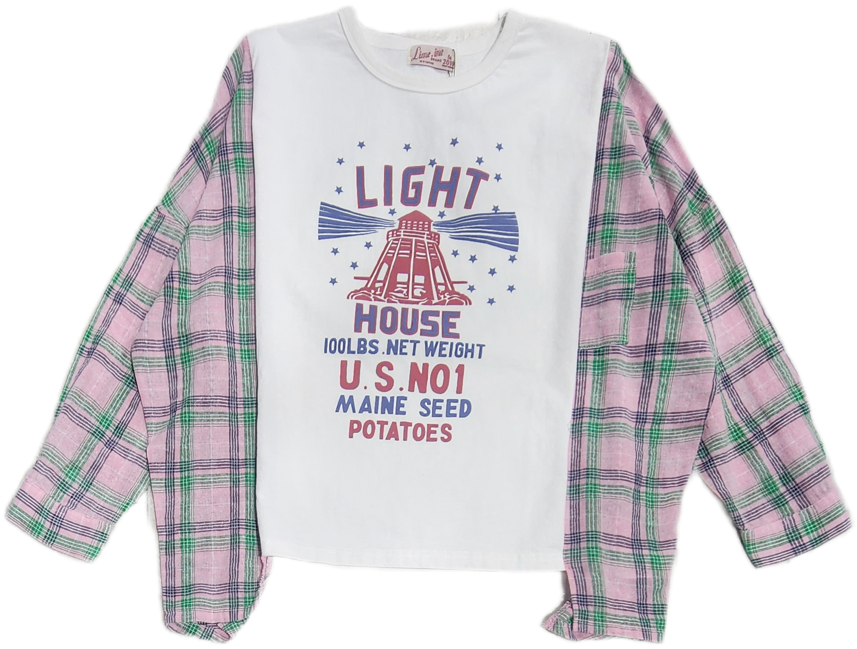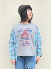 〈Lime.inc〉Tシャツとシャツの袖を組み合わせたようなリメイク風デザイン。
