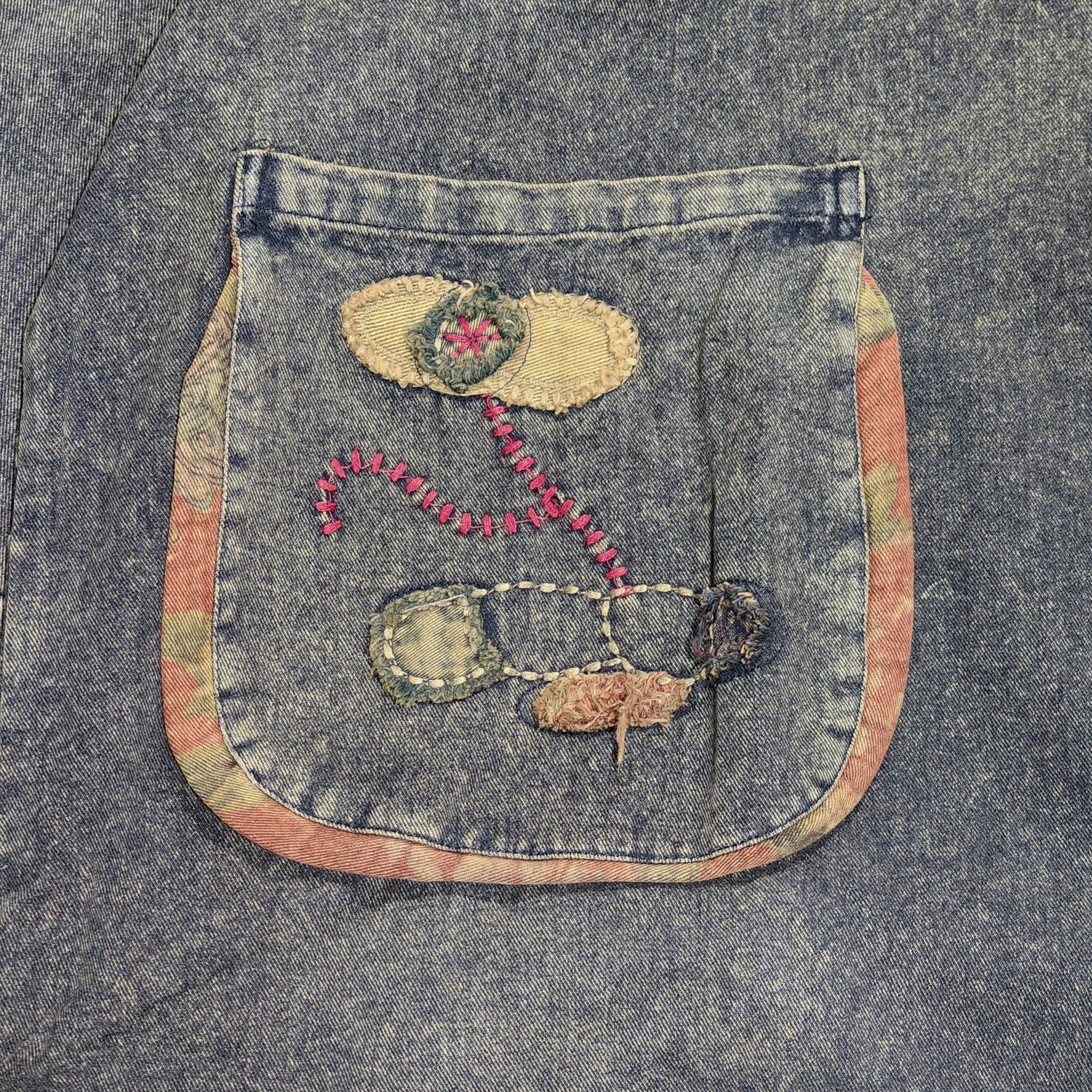 まるっとしたマチ付きのポッケに、動物や植物モチーフのパッチワーク入り☆