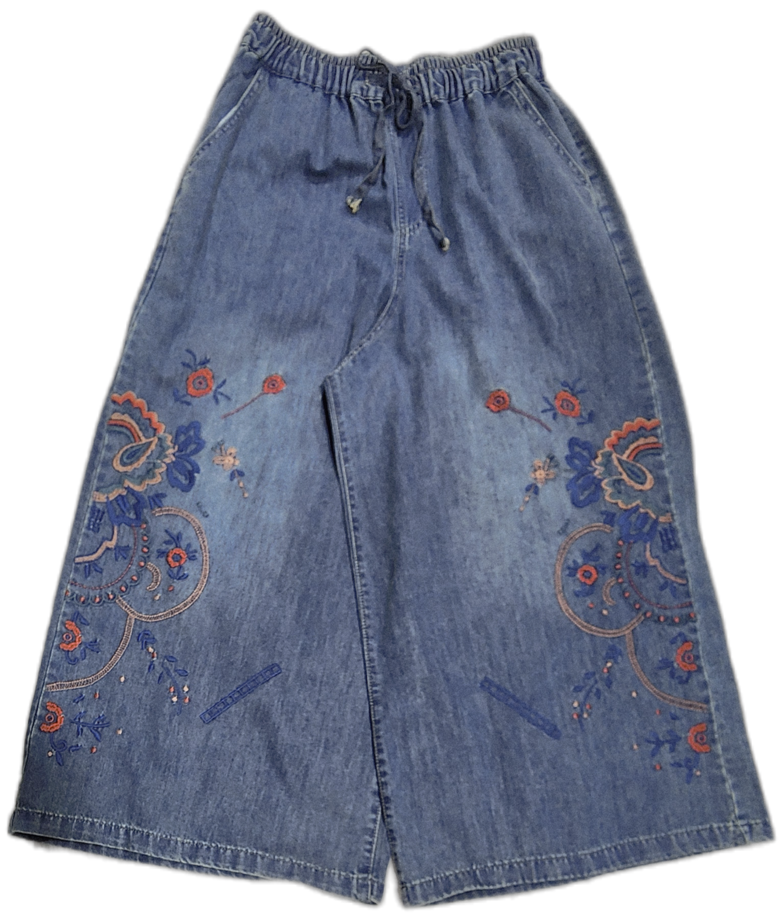 定番人気の刺繍デニムワイドパンツ、新入荷してます。