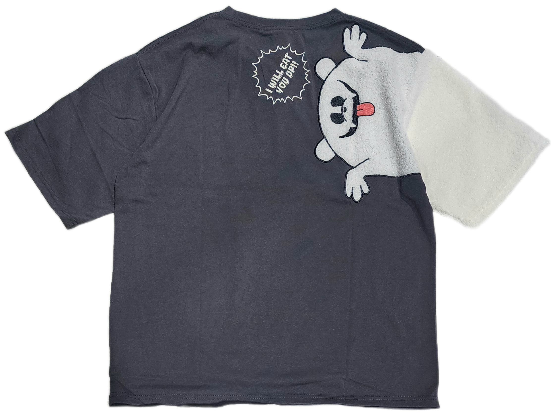 フロントは片方の袖だけ切替になったようなデザインで、バックはお腹をすかせたクマオバケさんがインパクト大!!