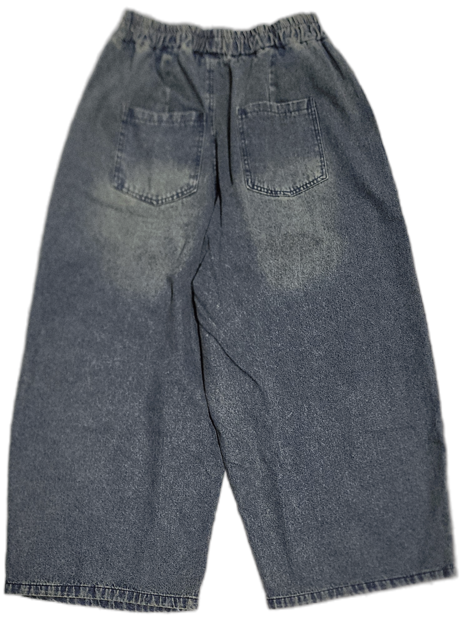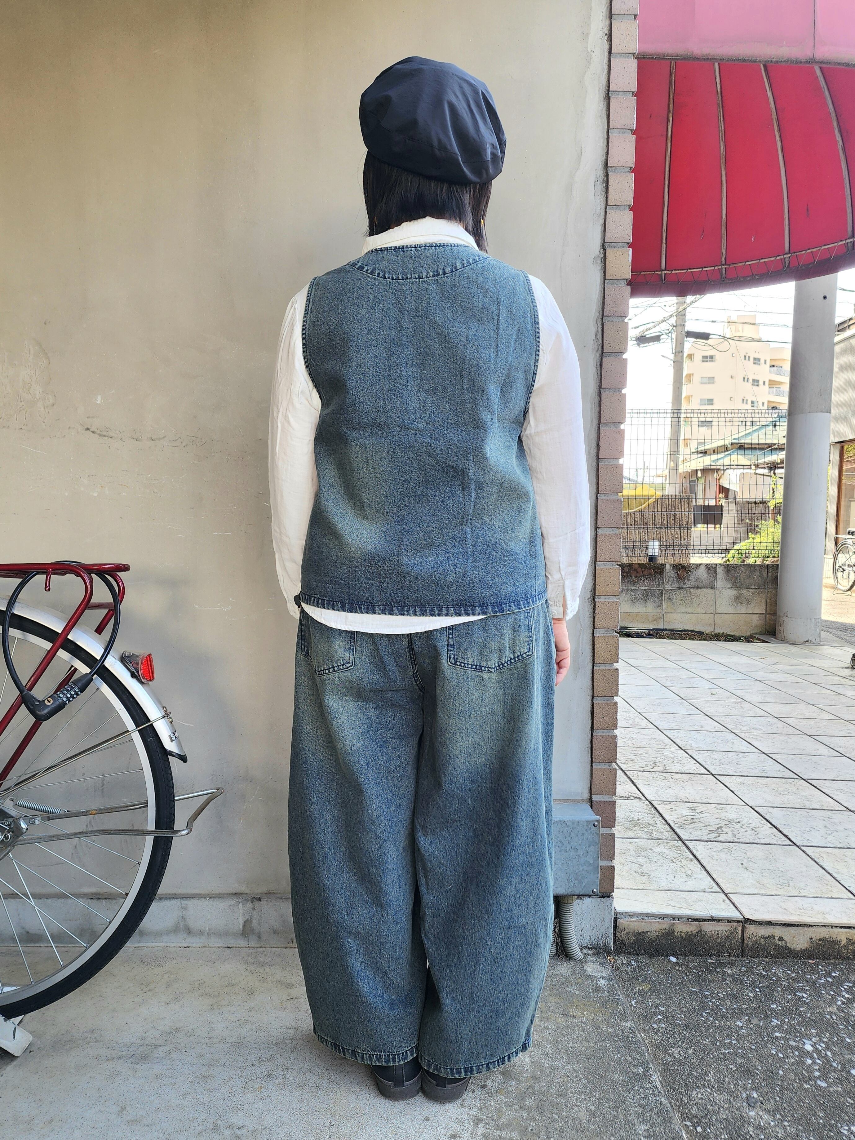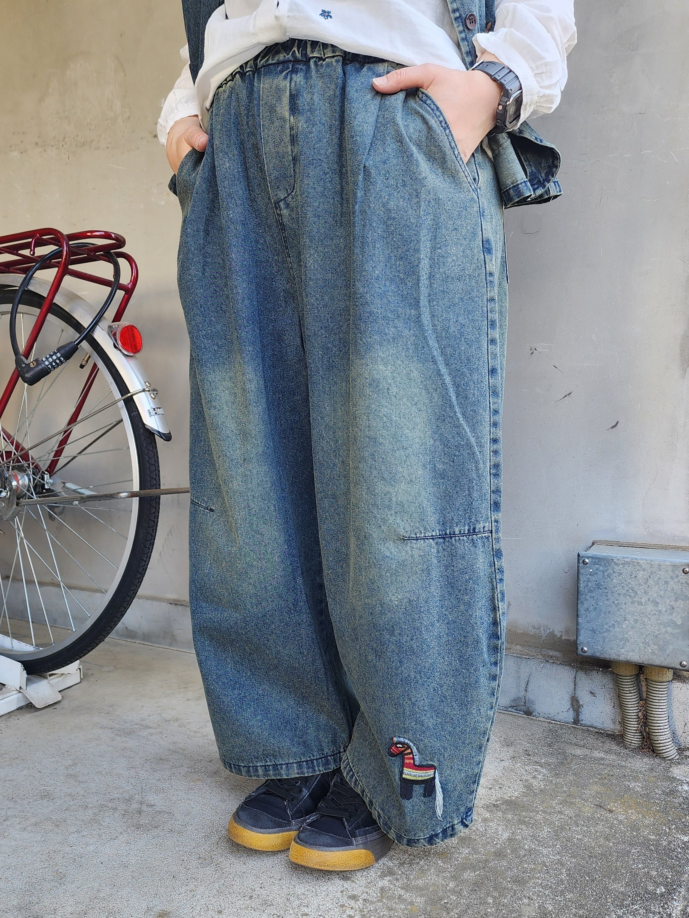 ゆるっとワイドシルエットで楽々着られるデニムパンツ。