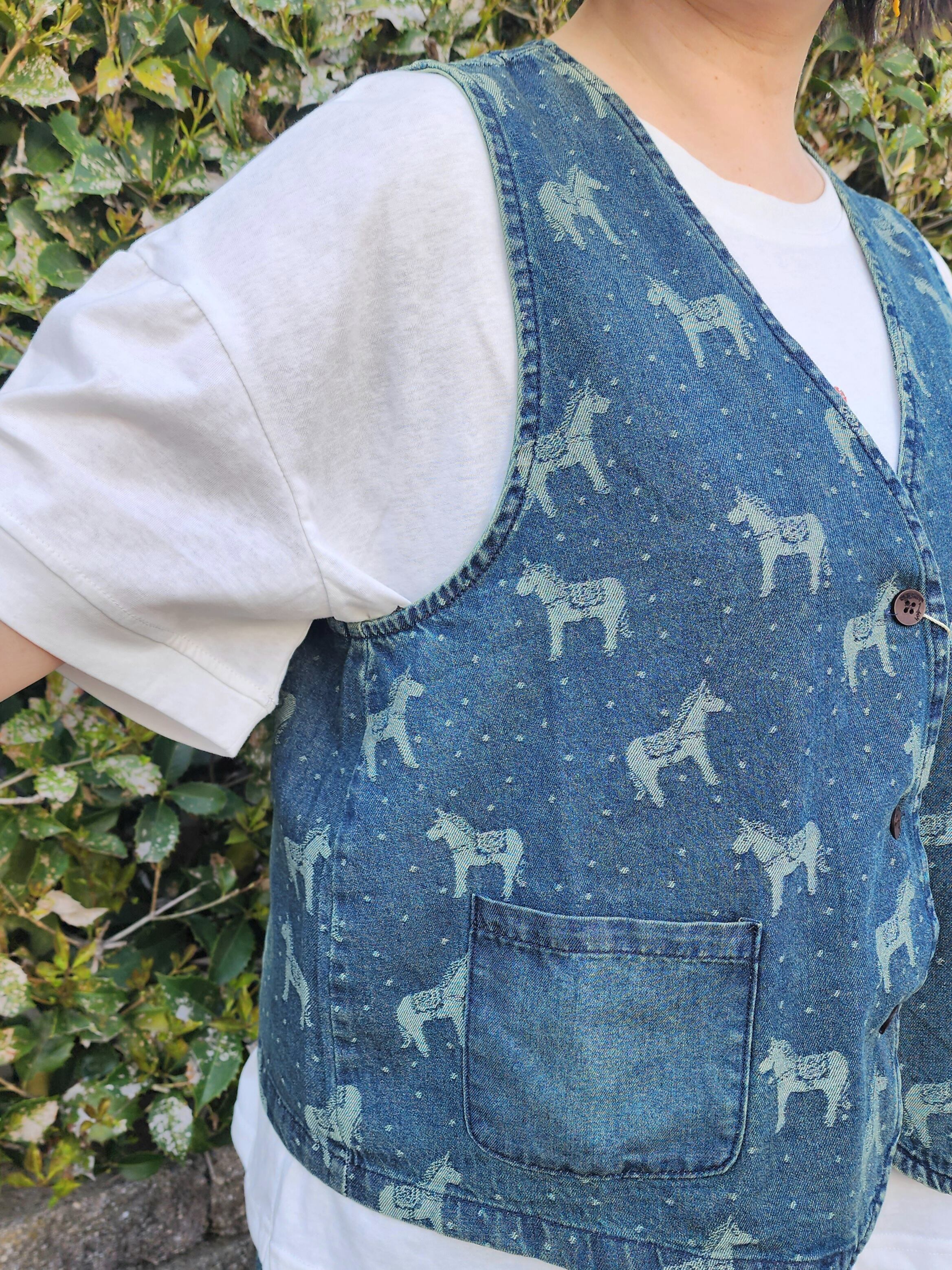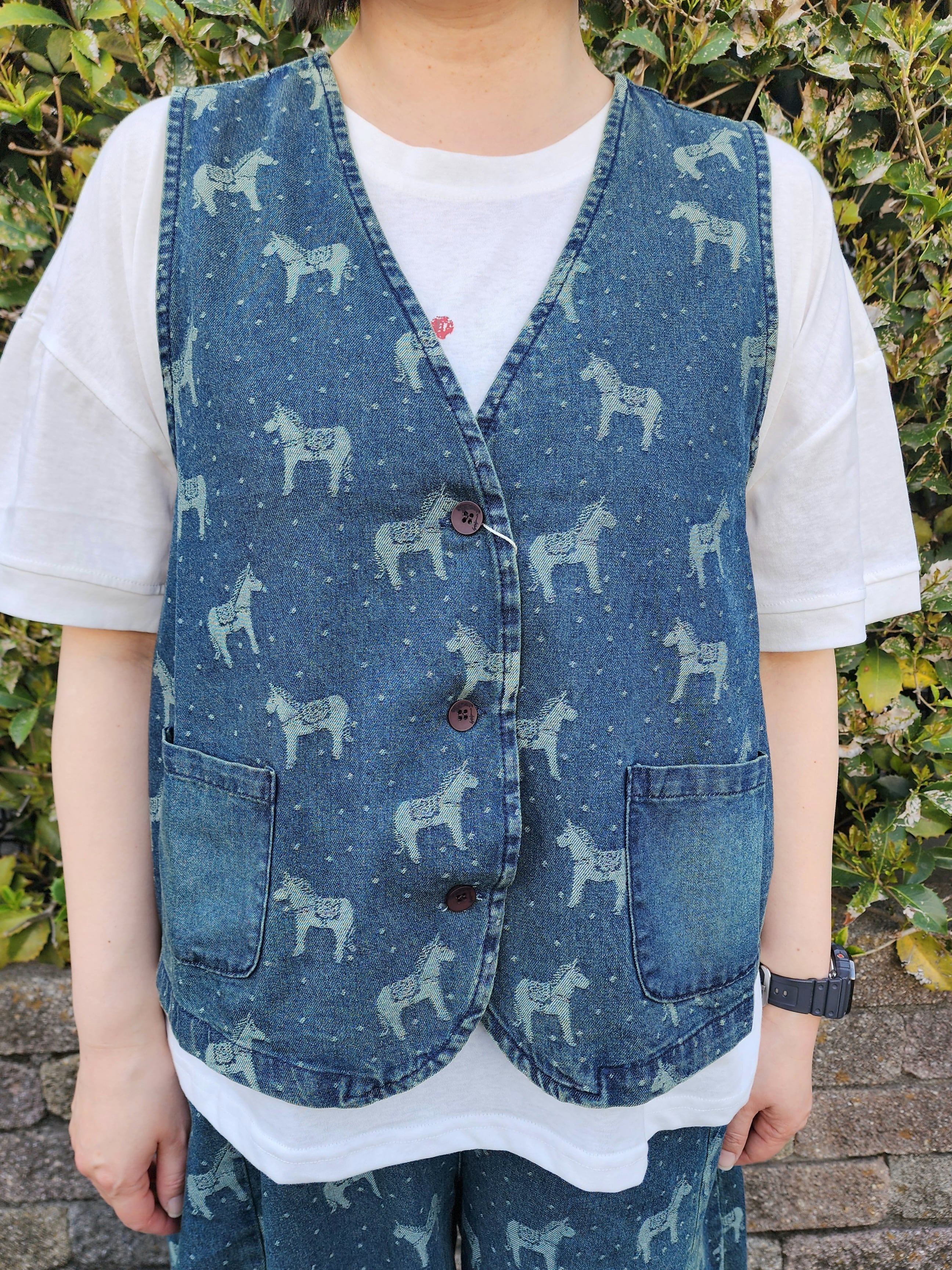 お馬さん&ドットの総柄が珍しい、レトロで可愛い1枚。
