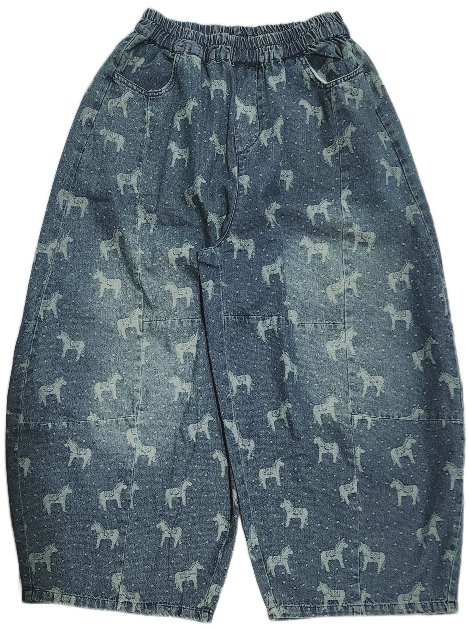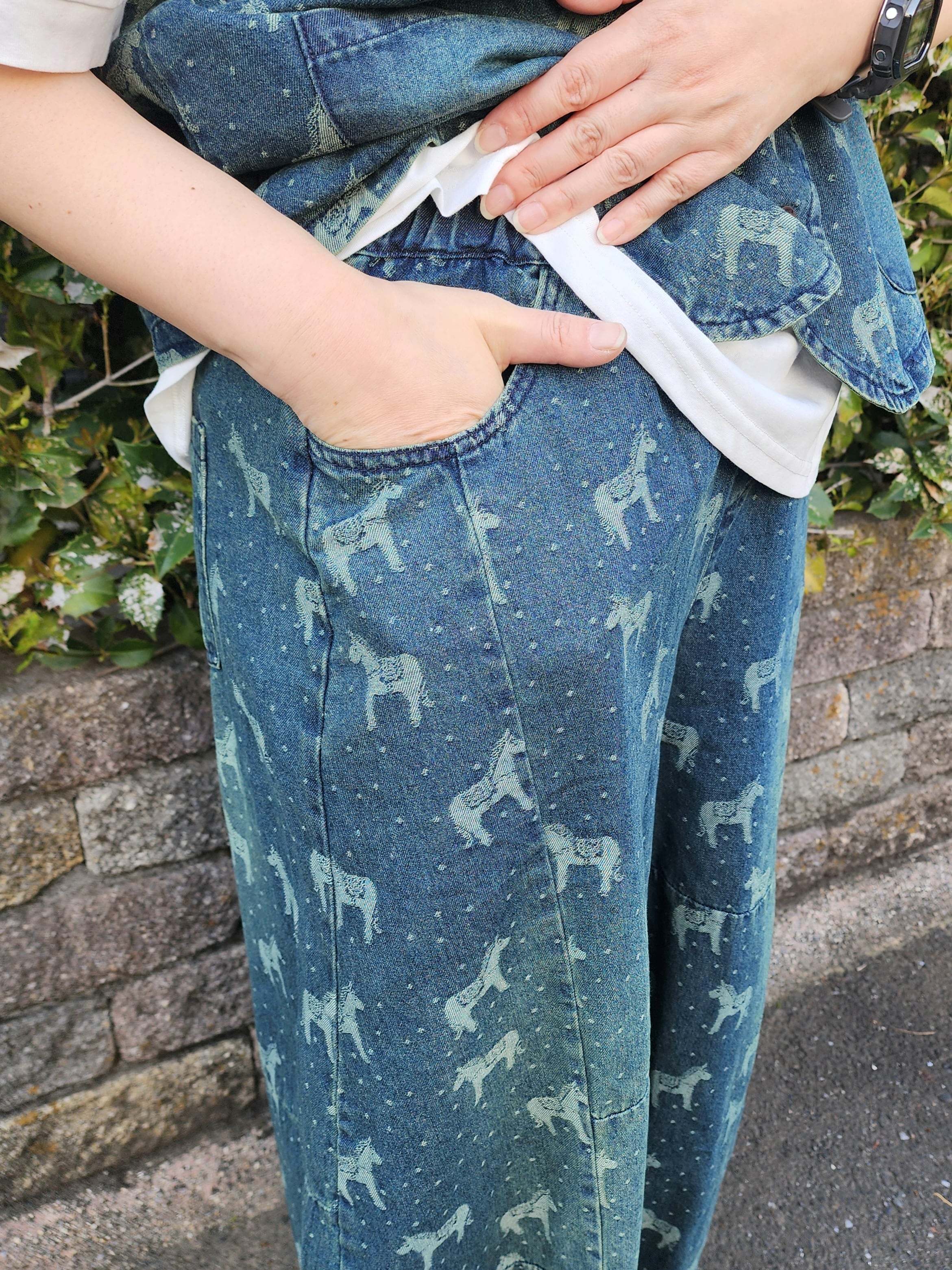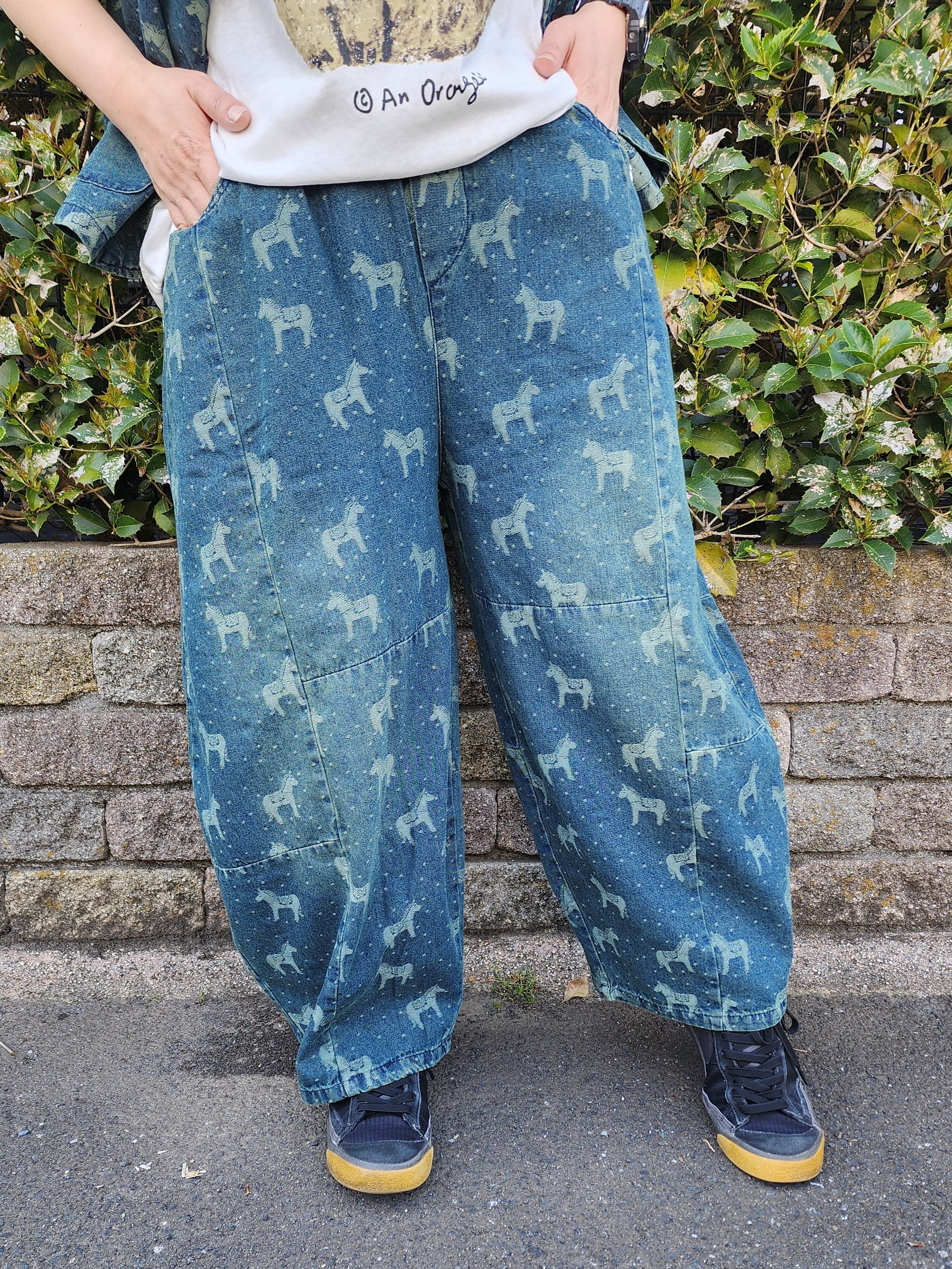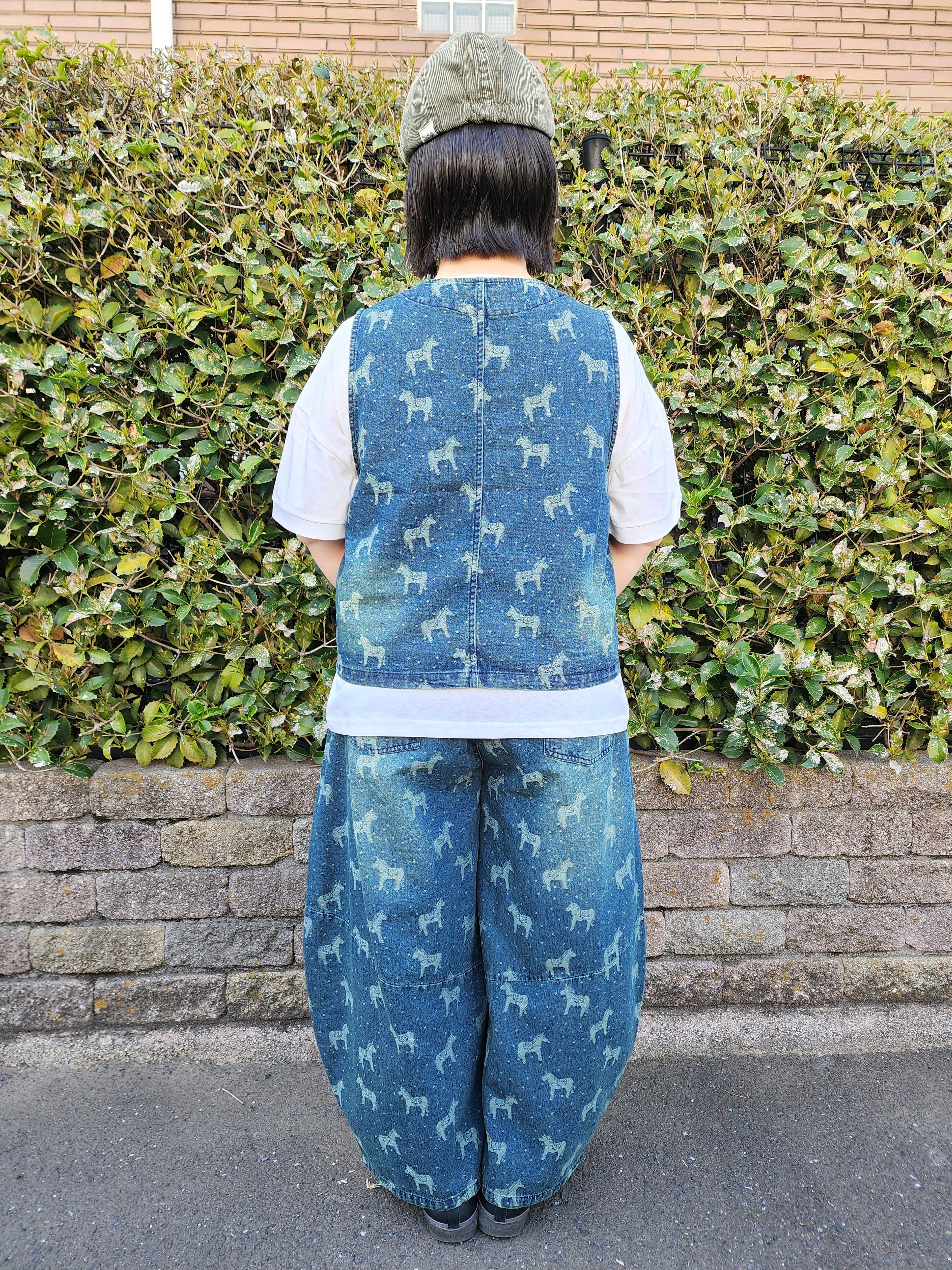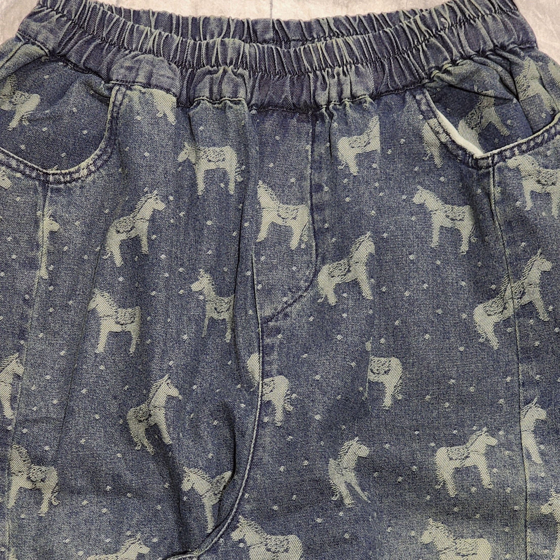 お馬さん&ドット柄のデニムワイドパンツ