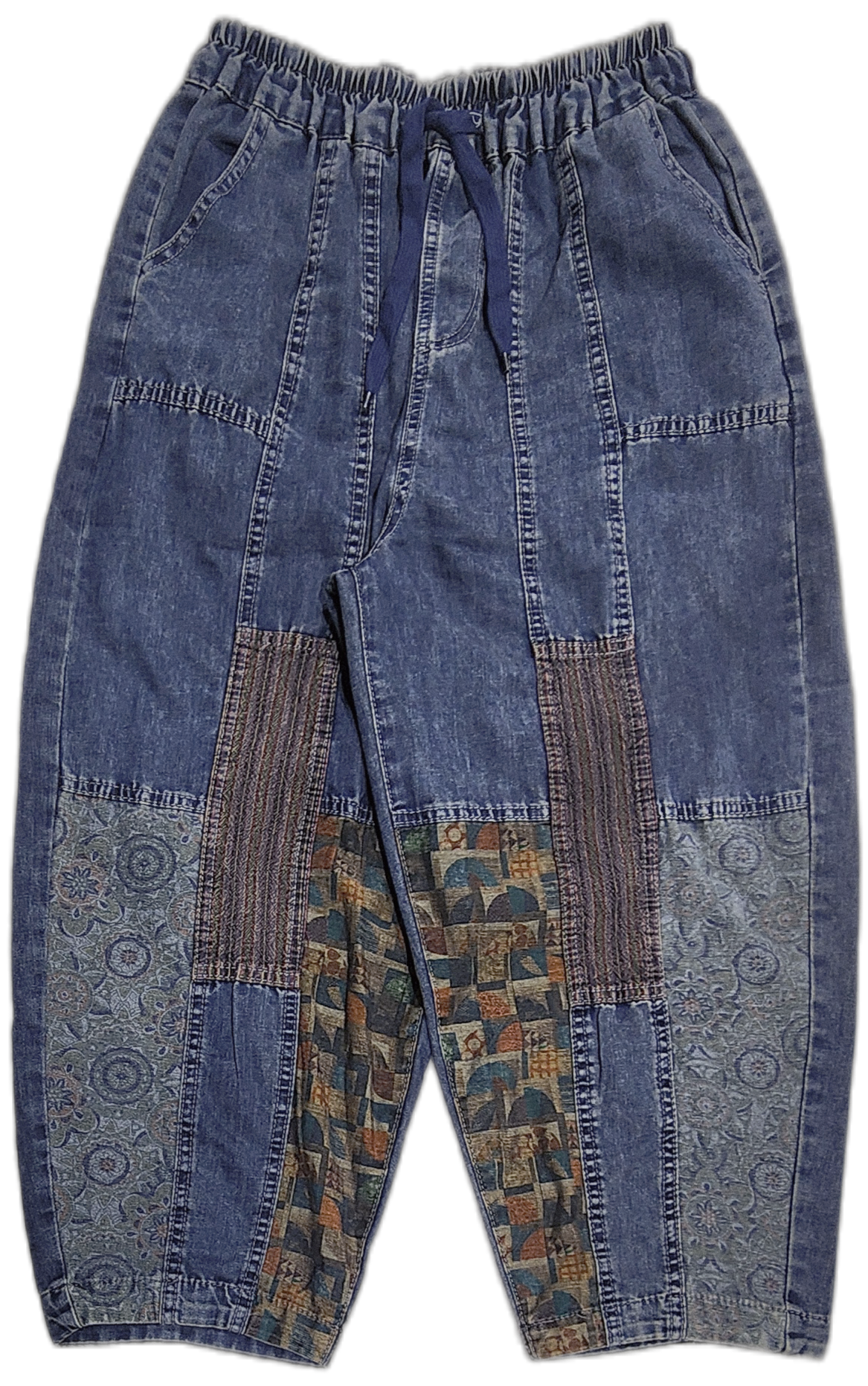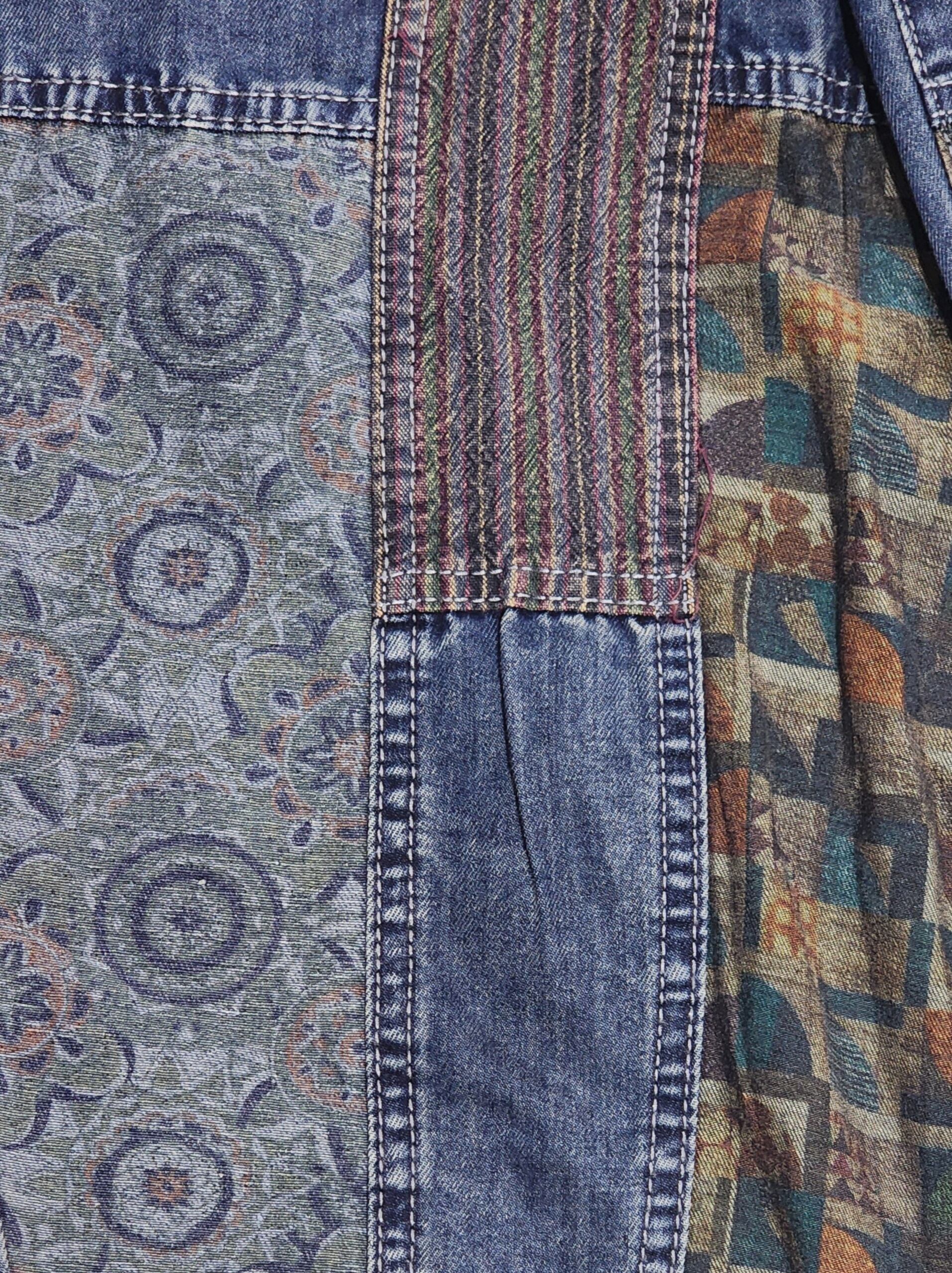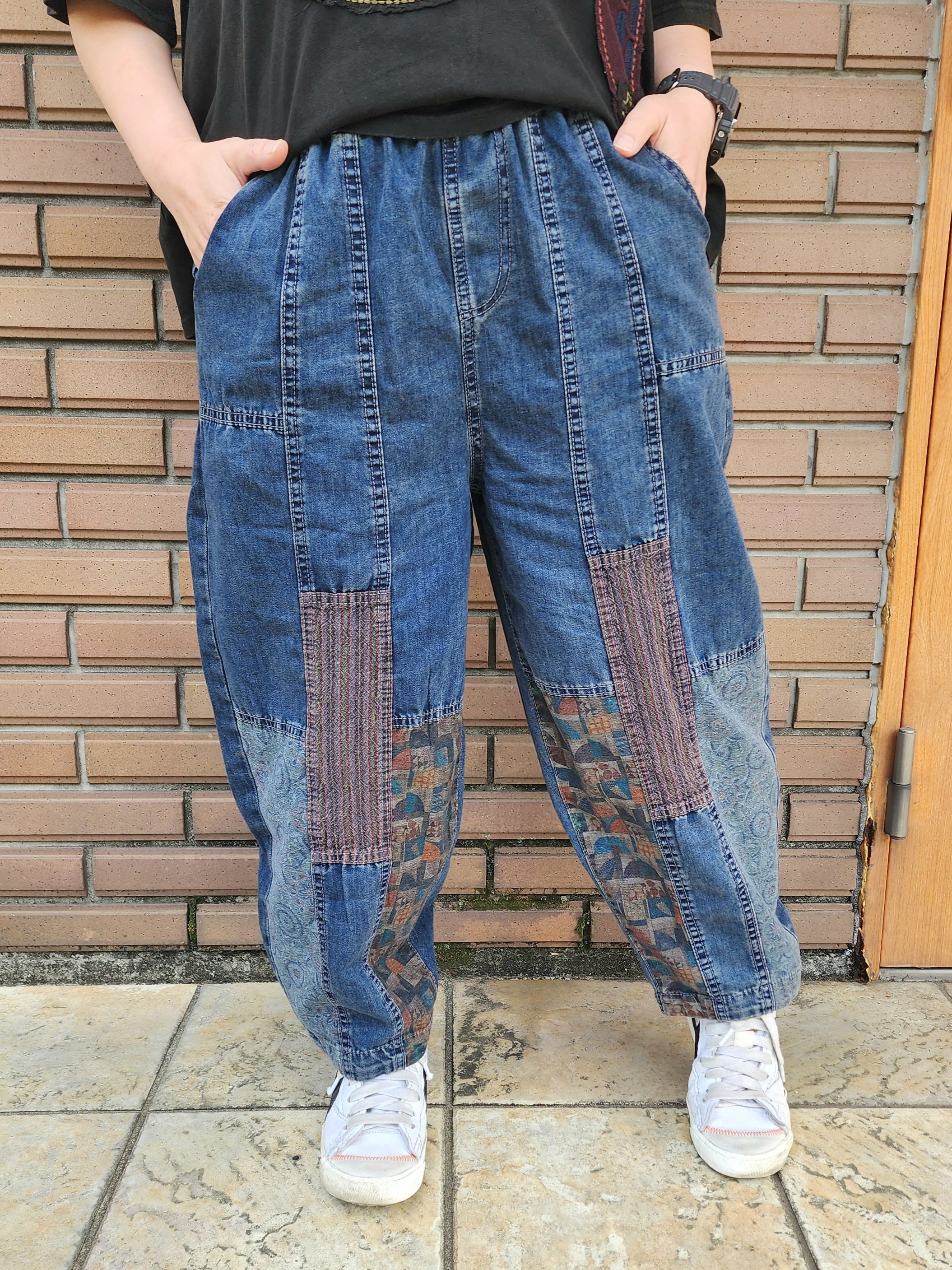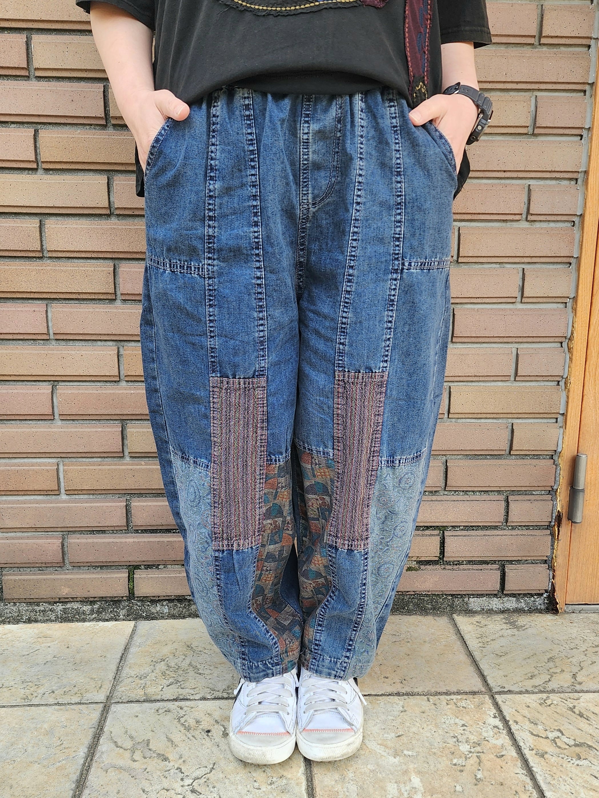 柄パッチワークデニムパンツ