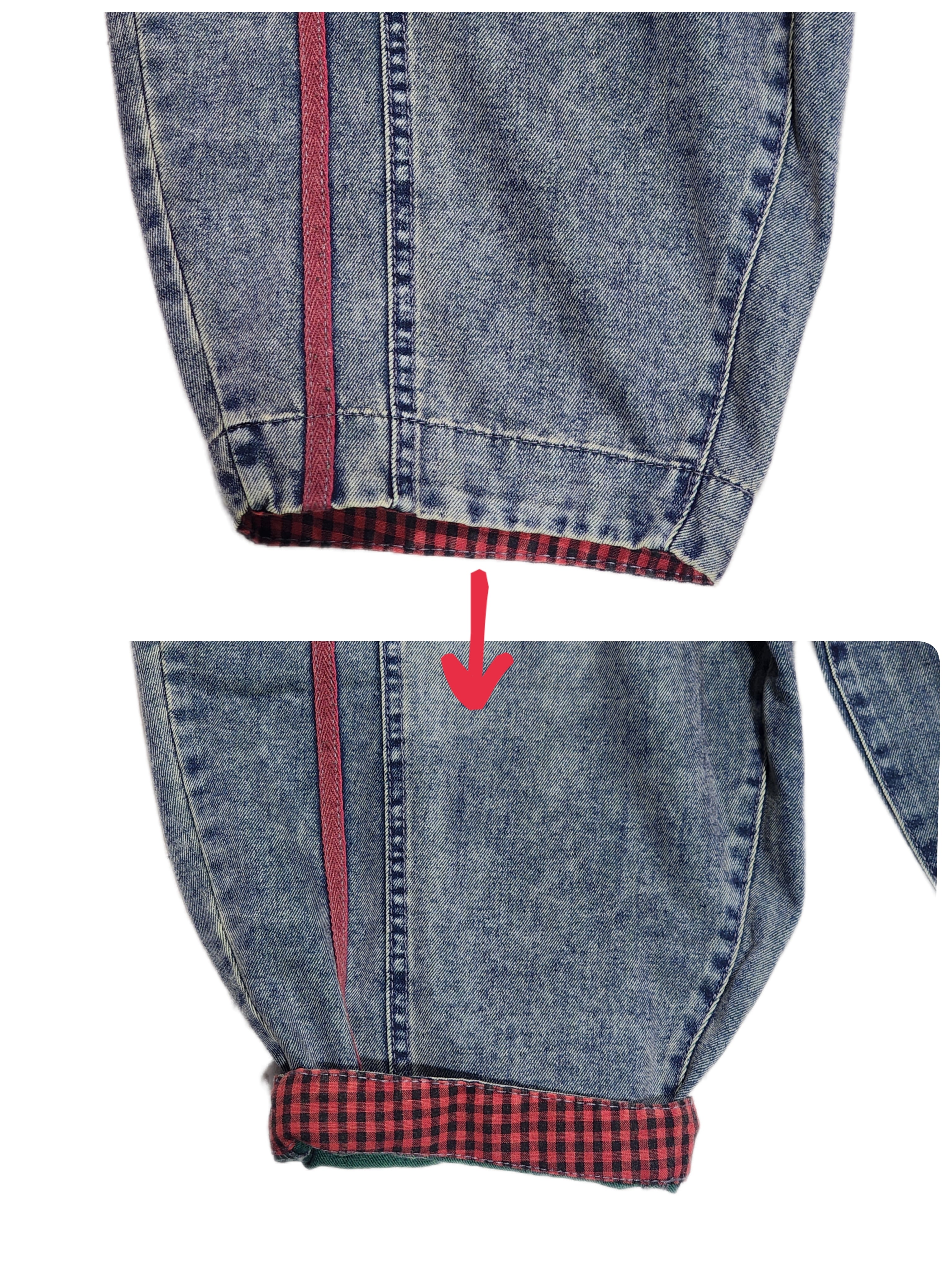 裾裏は配色ラインに合わせてレッドのギンガムチェック生地になっていて、折り返してはいても可愛いです◎
