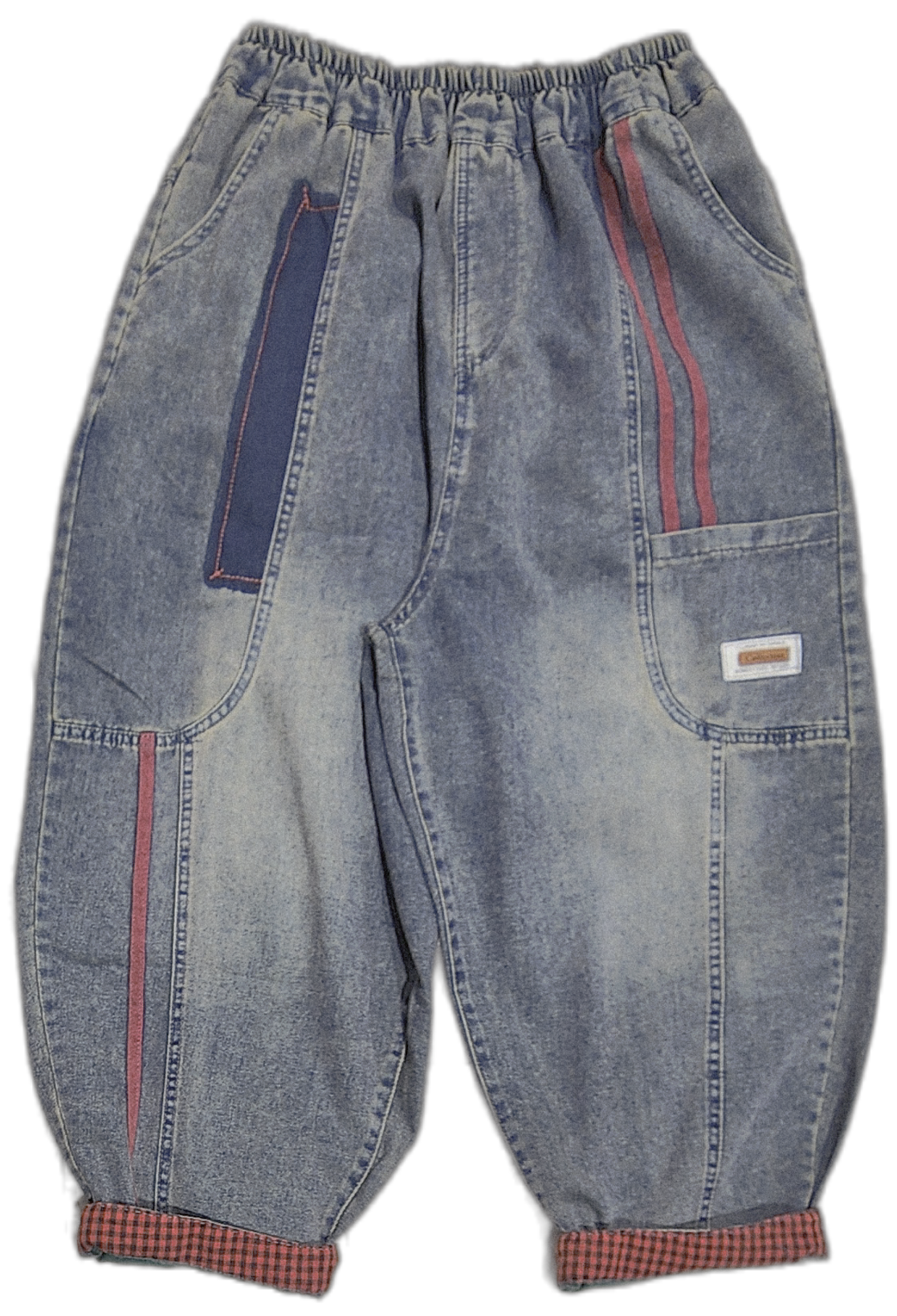 配色ライン&ステッチデニムパンツ
