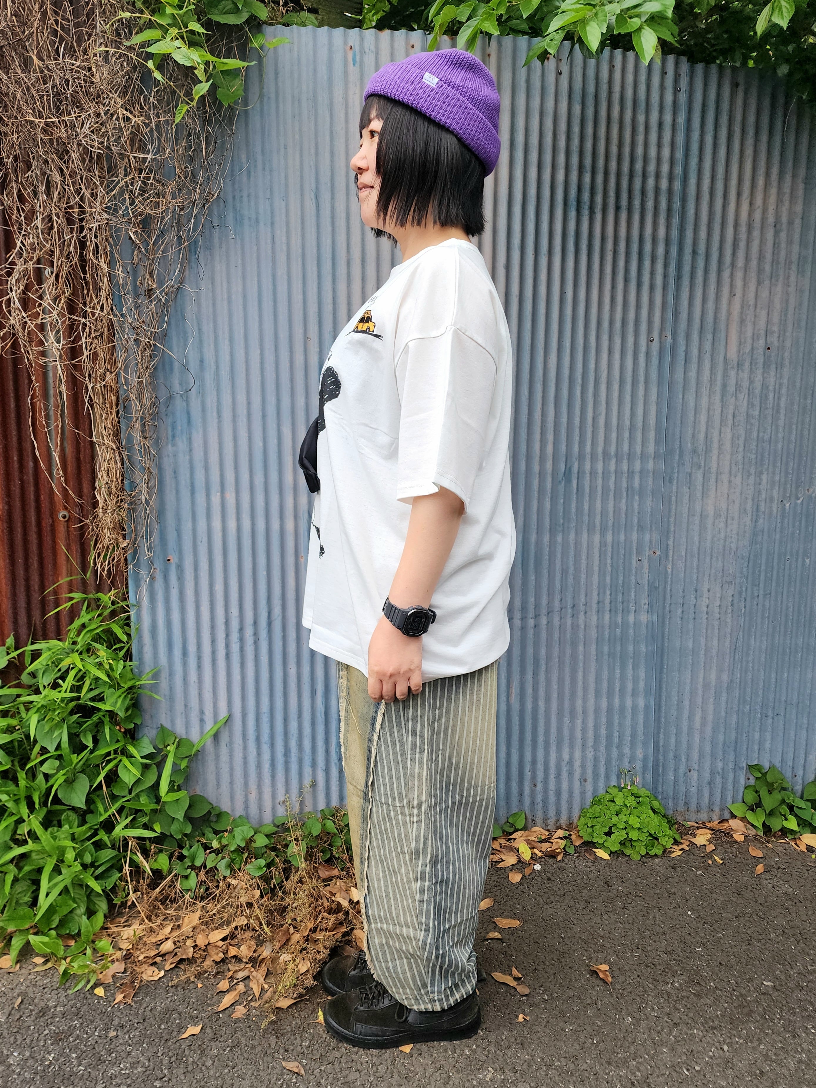 ワイドTで合わせてゆったりカジュアルなコーディネートや、シャツと合わせて爽やかコーディネートも◎