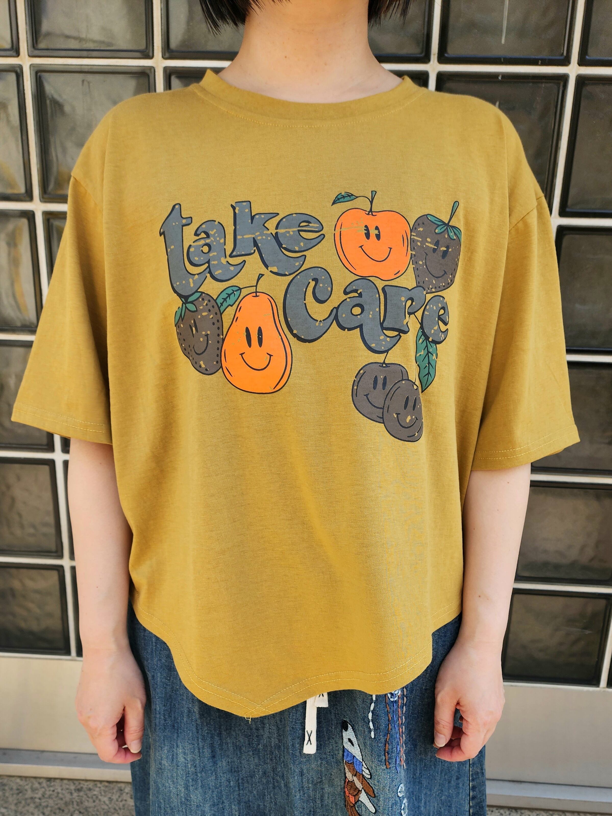 アシンメトリーな裾のデザインも面白い、一枚で存在感あるTシャツです。