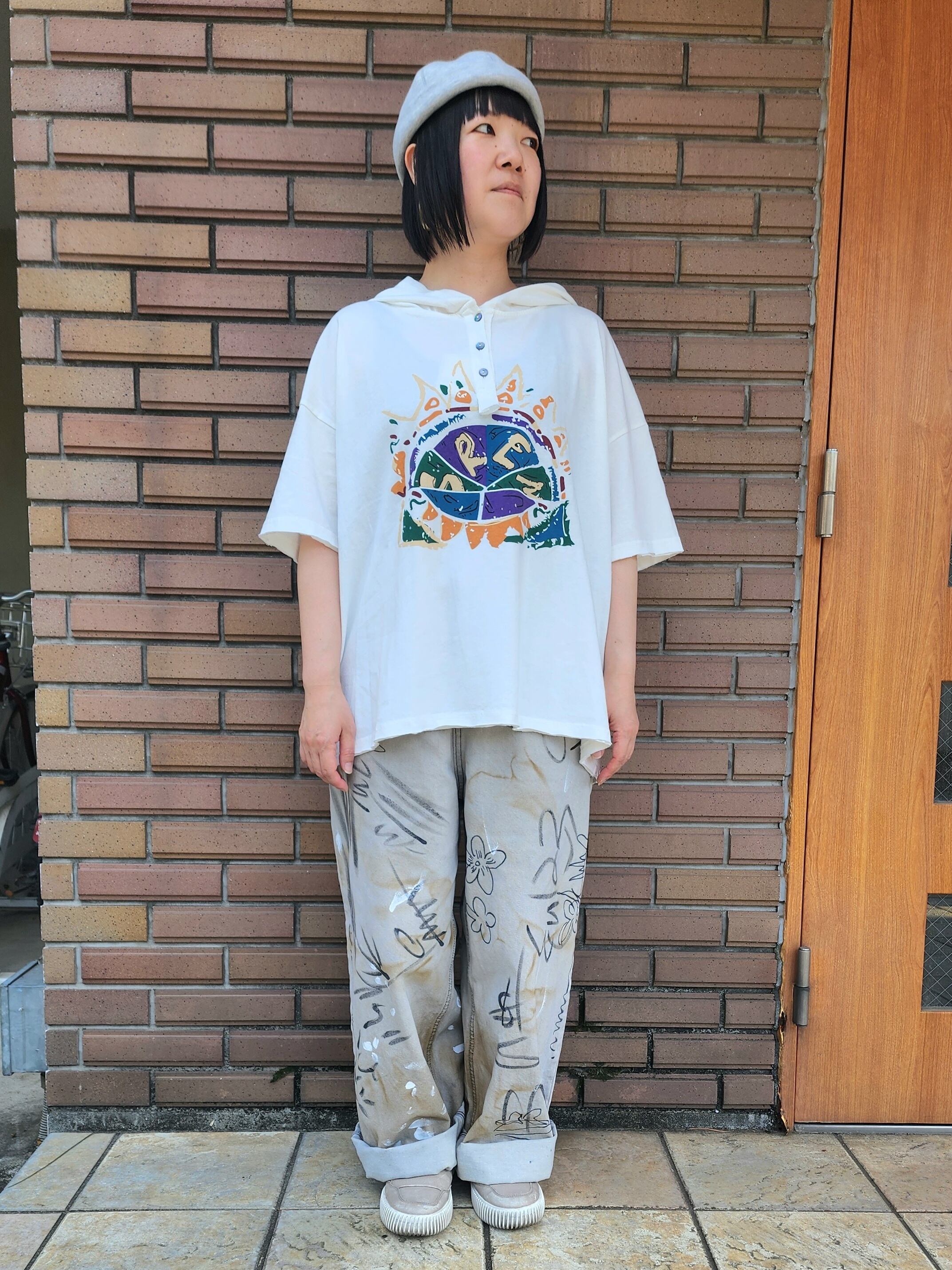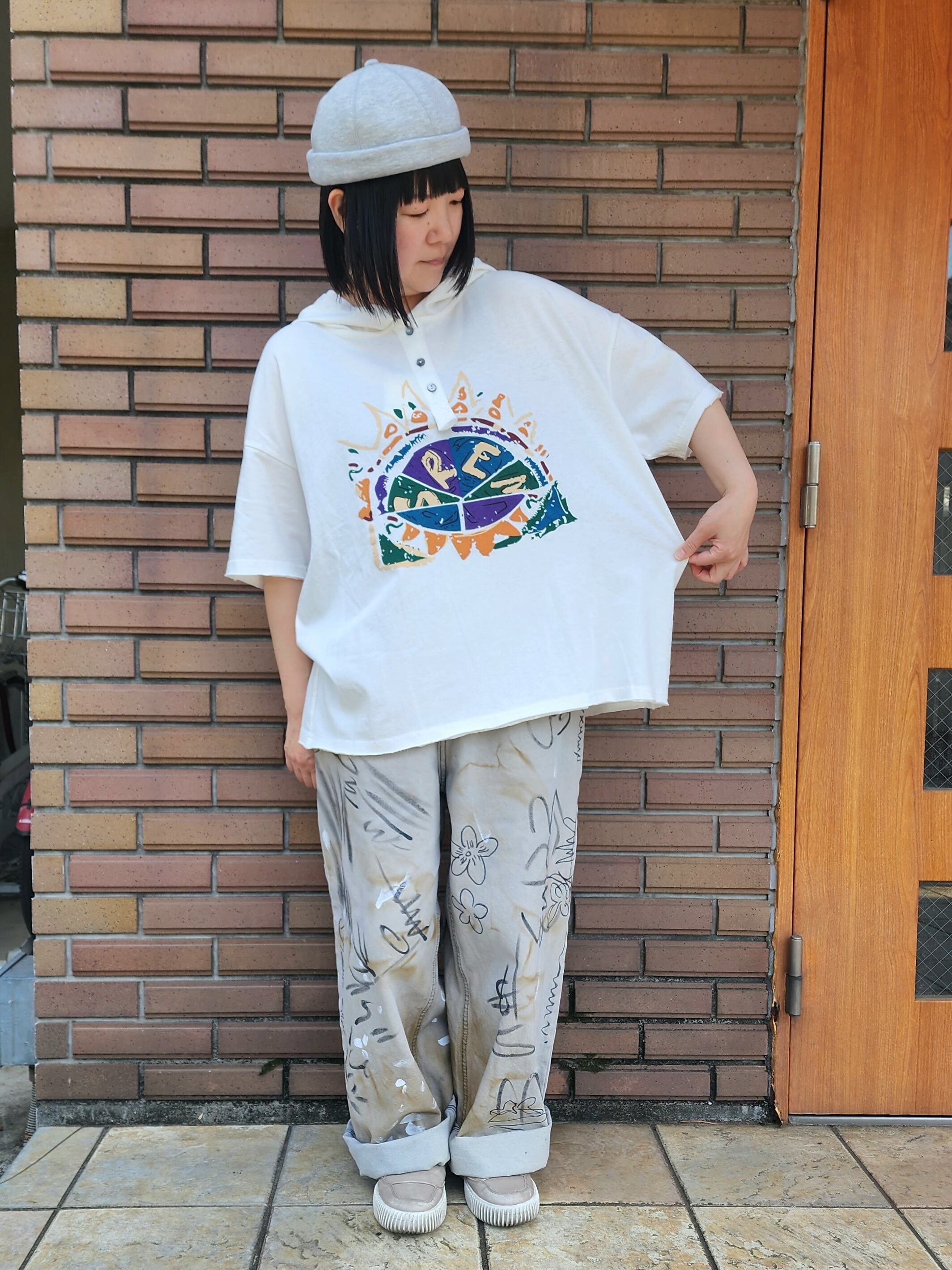 白地にカラフルな太陽モチーフのプリントが元気で爽やかな印象◎