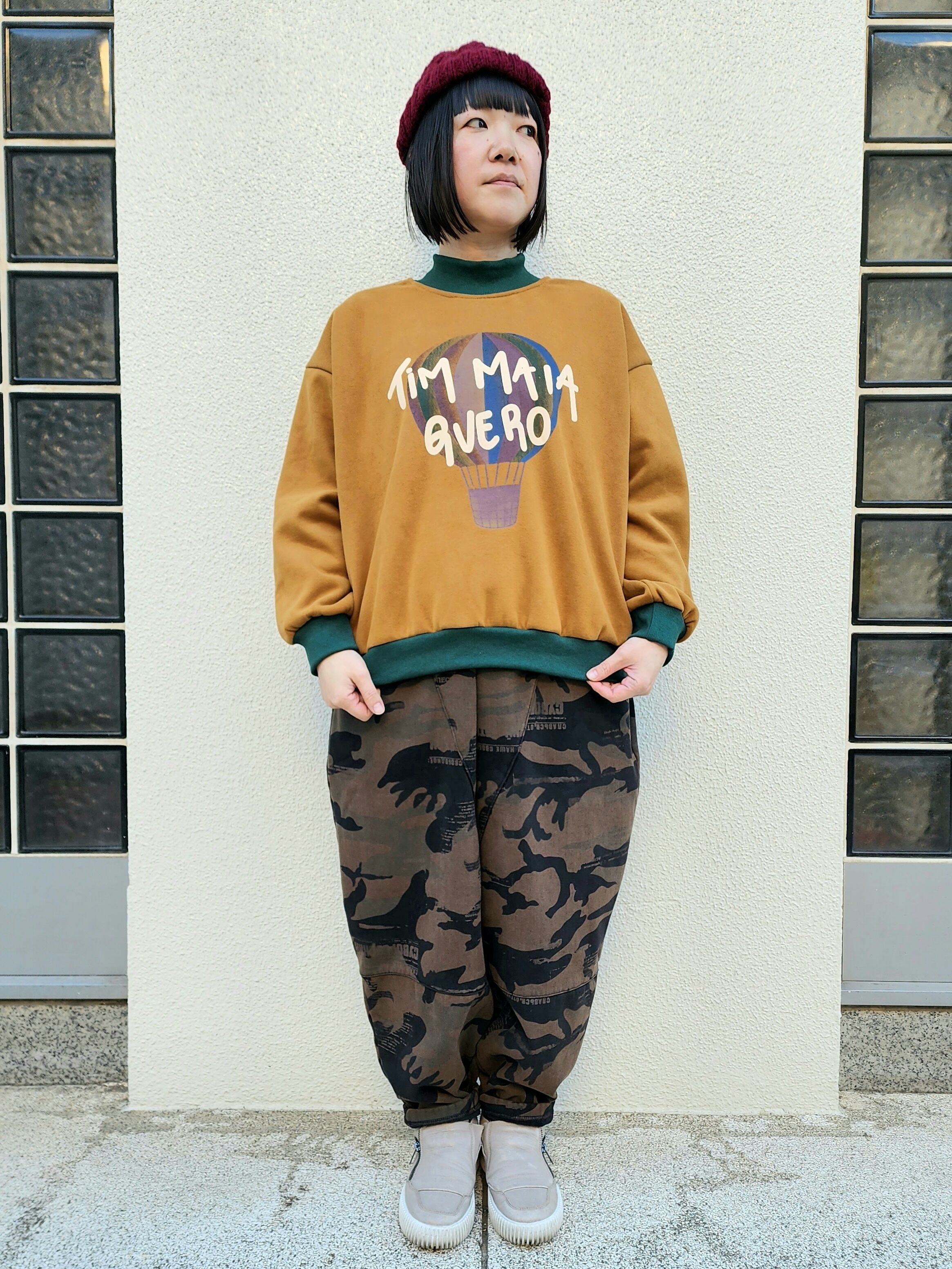 迷彩×英字柄裏起毛パンツ