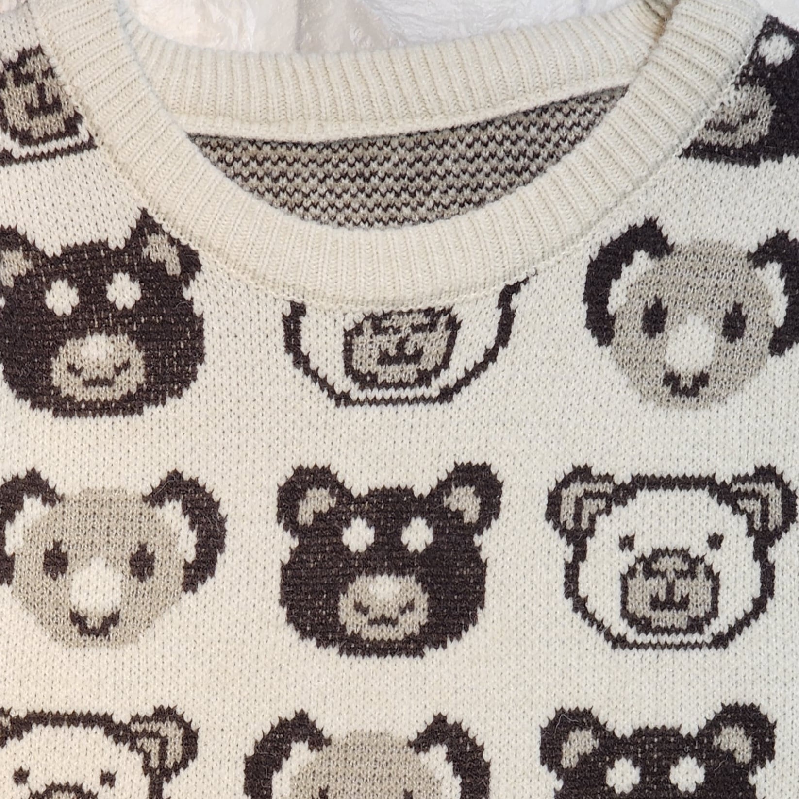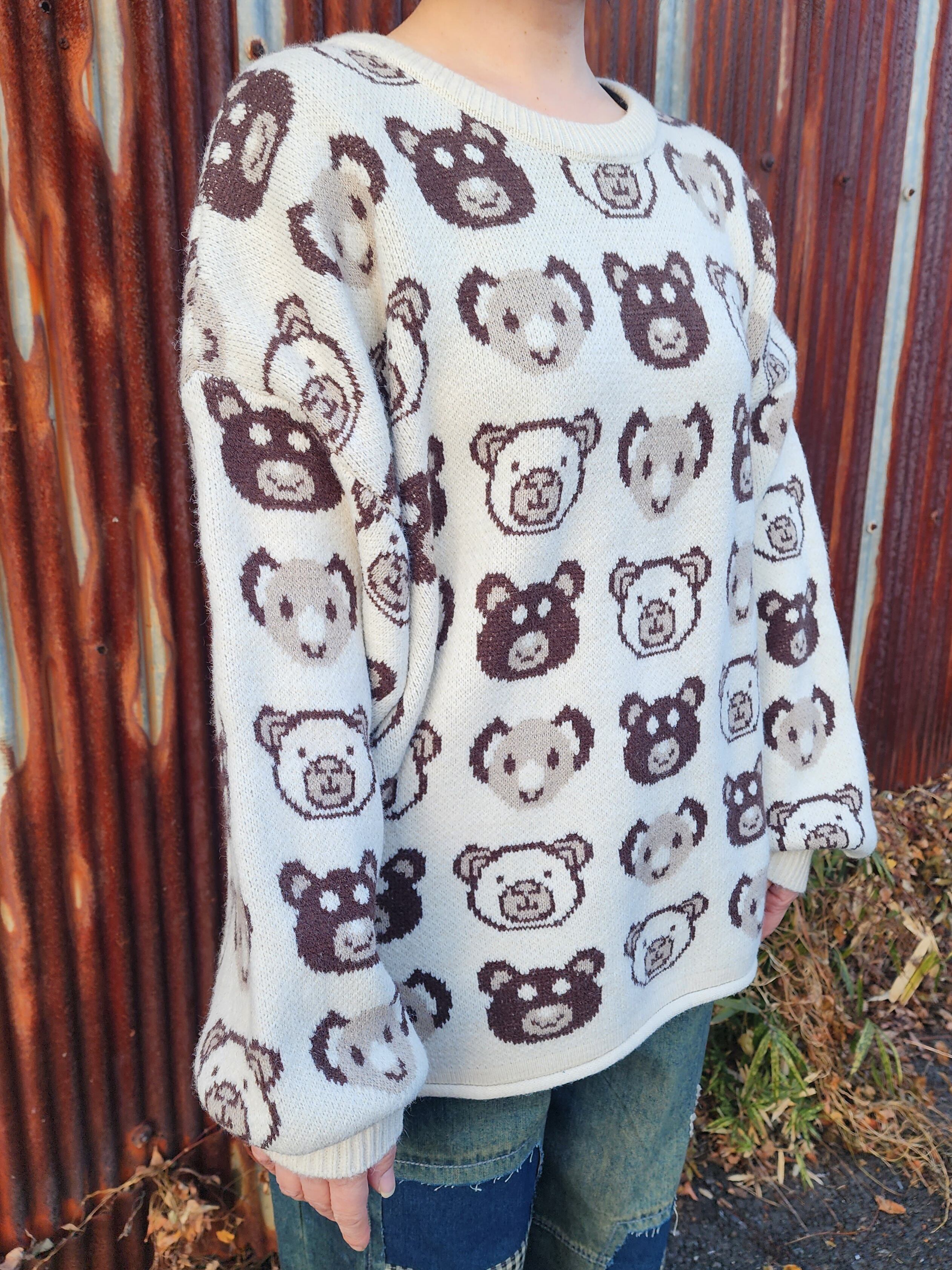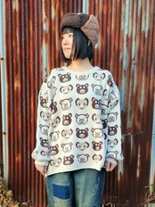 素朴でレトロな雰囲気が何だかとても気になる、クマさん柄のゆったりニットプルオーバー。