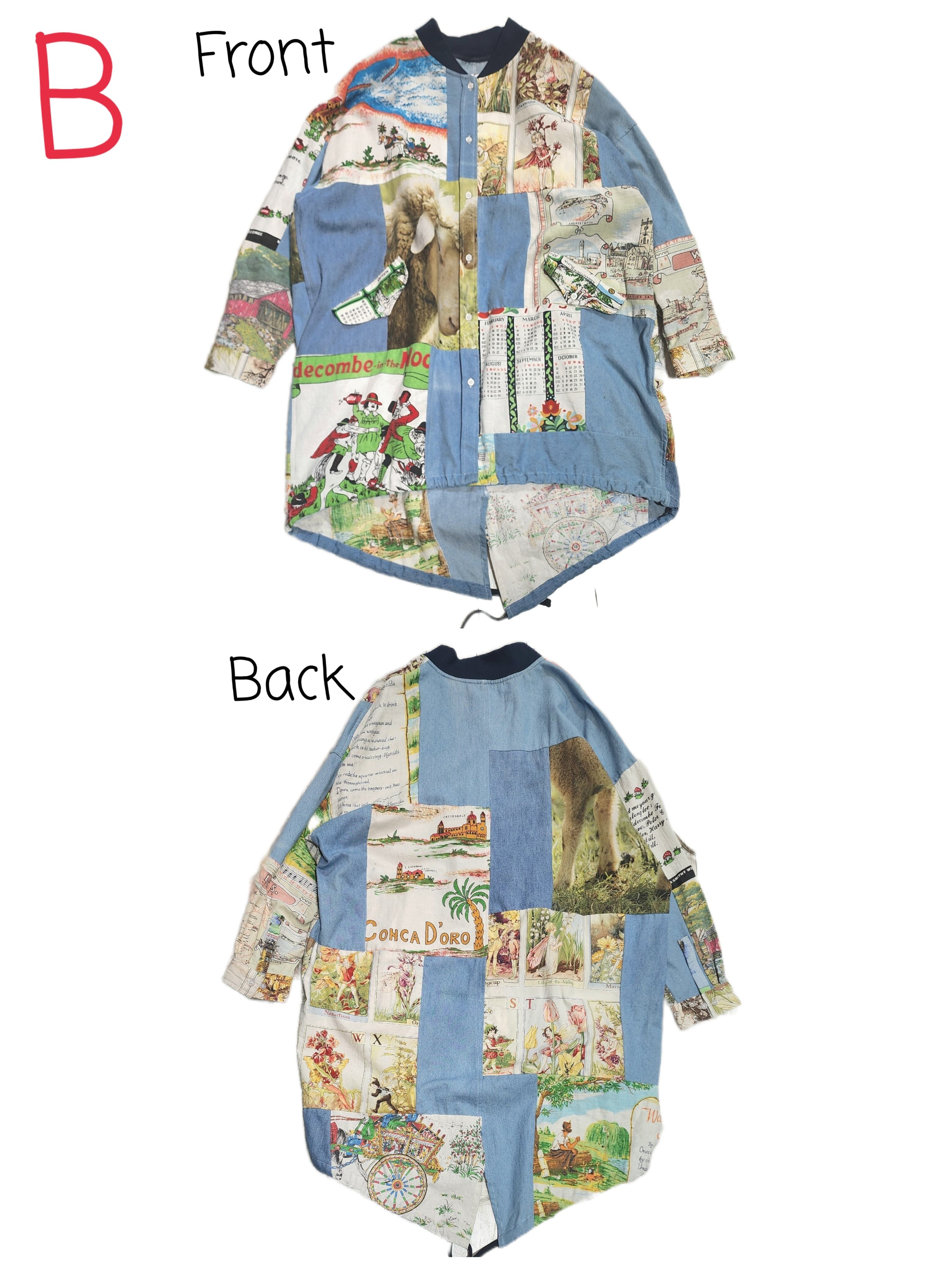 人気のモッズシャツを古着のデニムとタペストリーで贅沢にリメイク☆