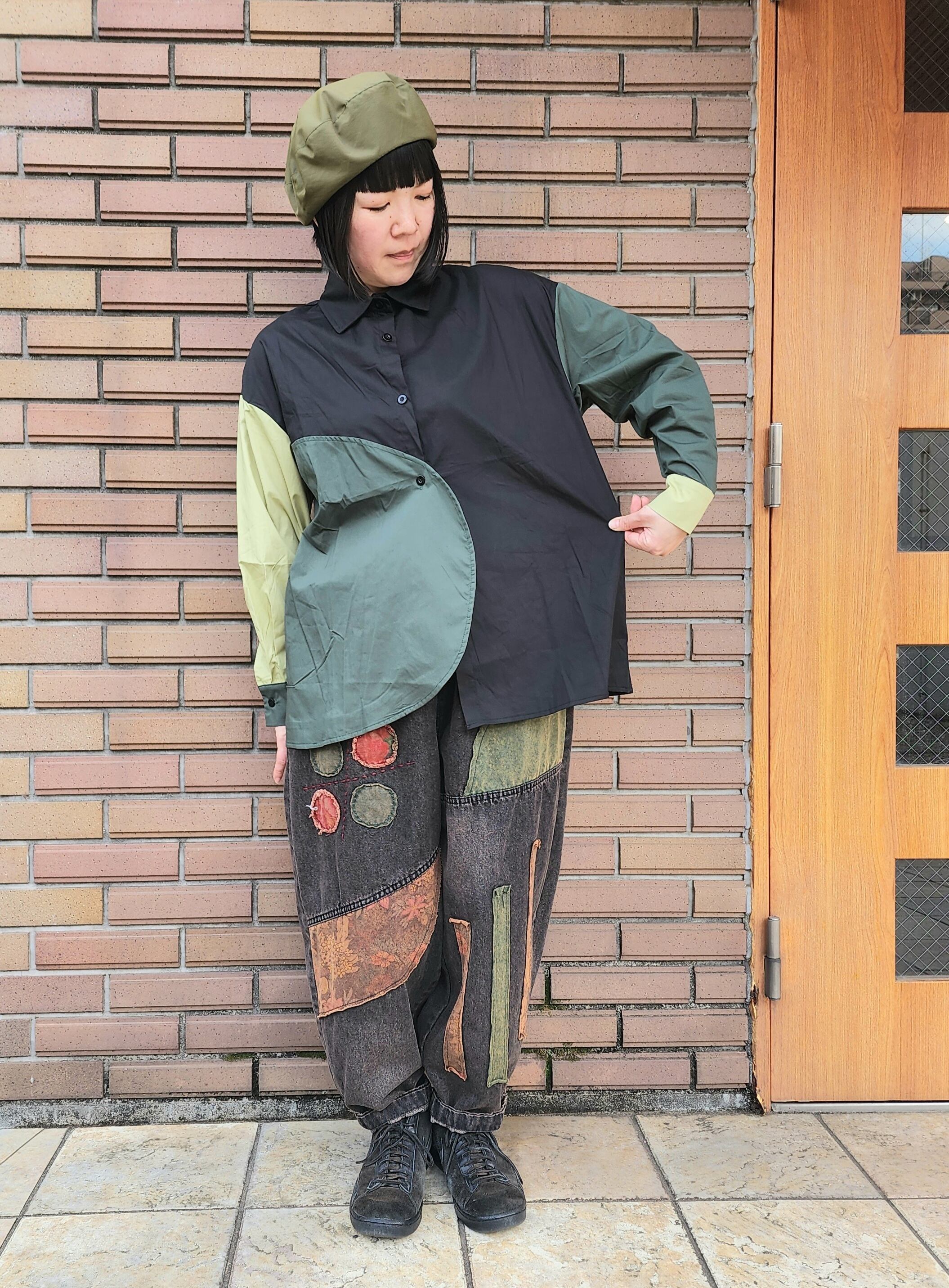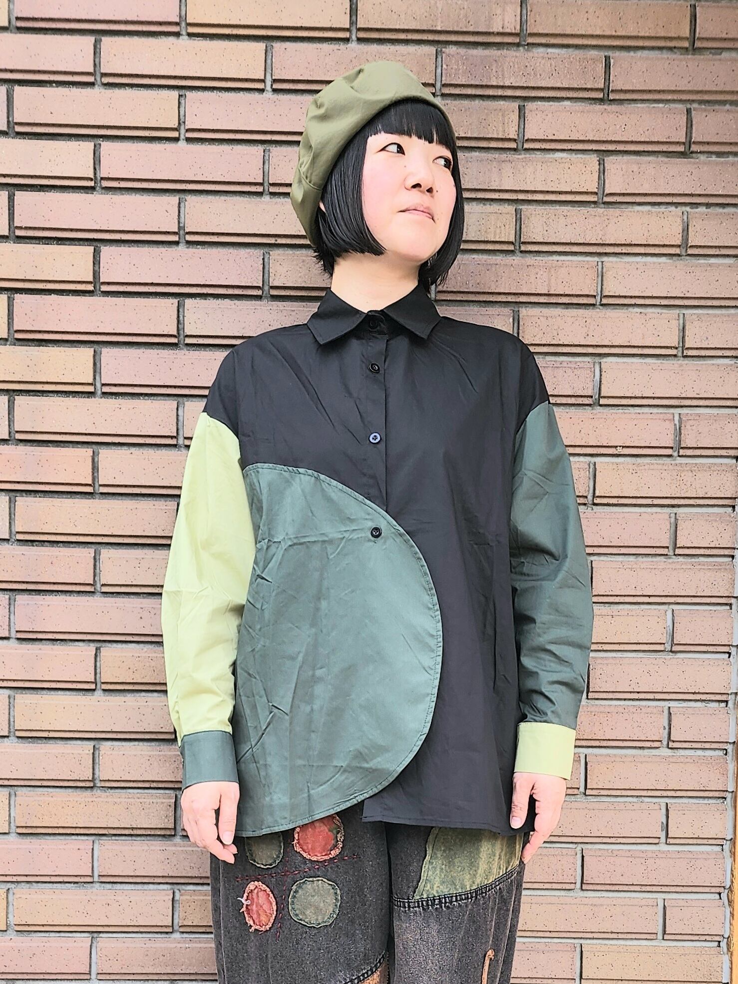 アシメデザイン配色シャツ