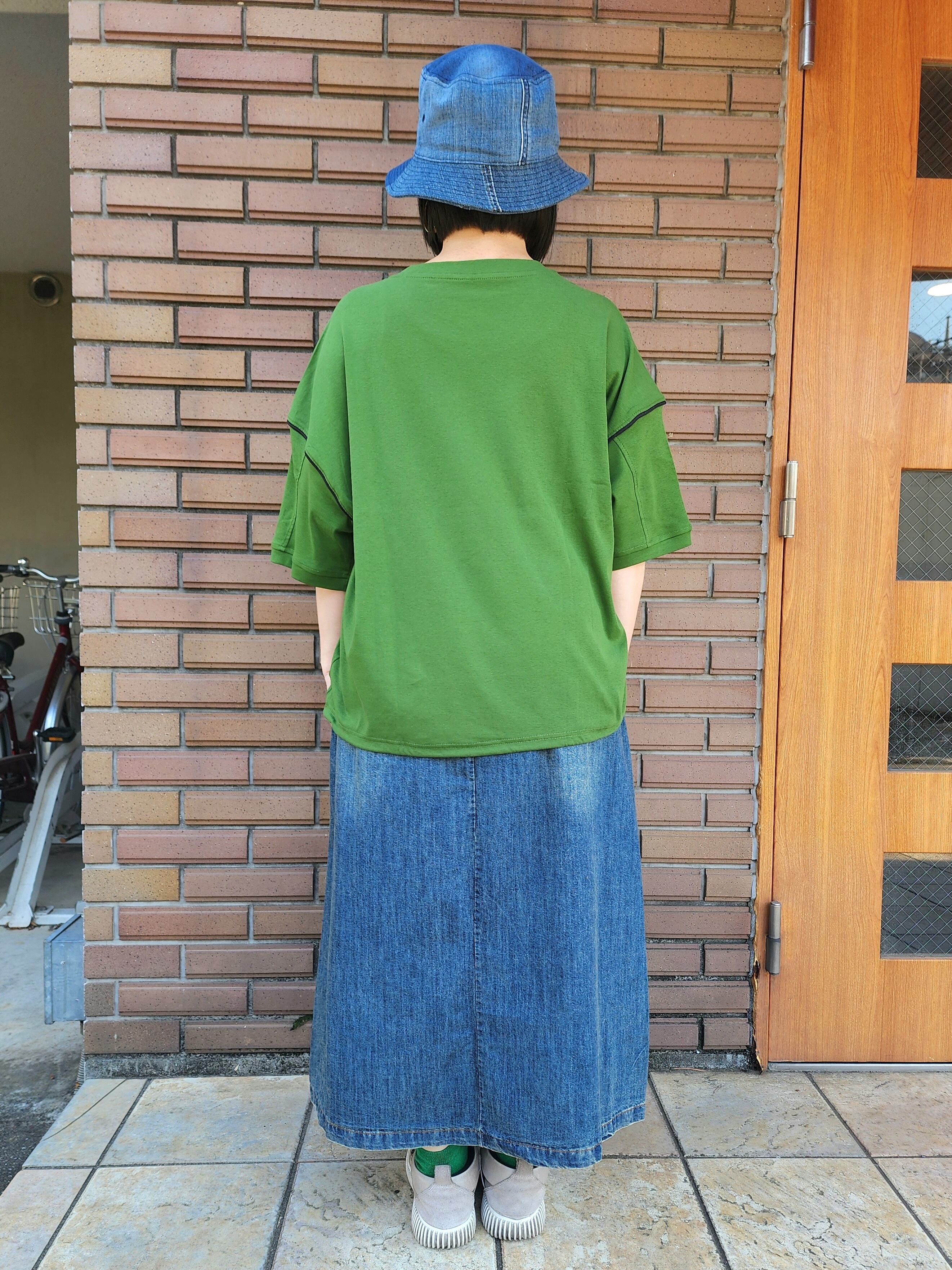 ドロップショルダーでゆったり五分袖×身幅もゆったり。
