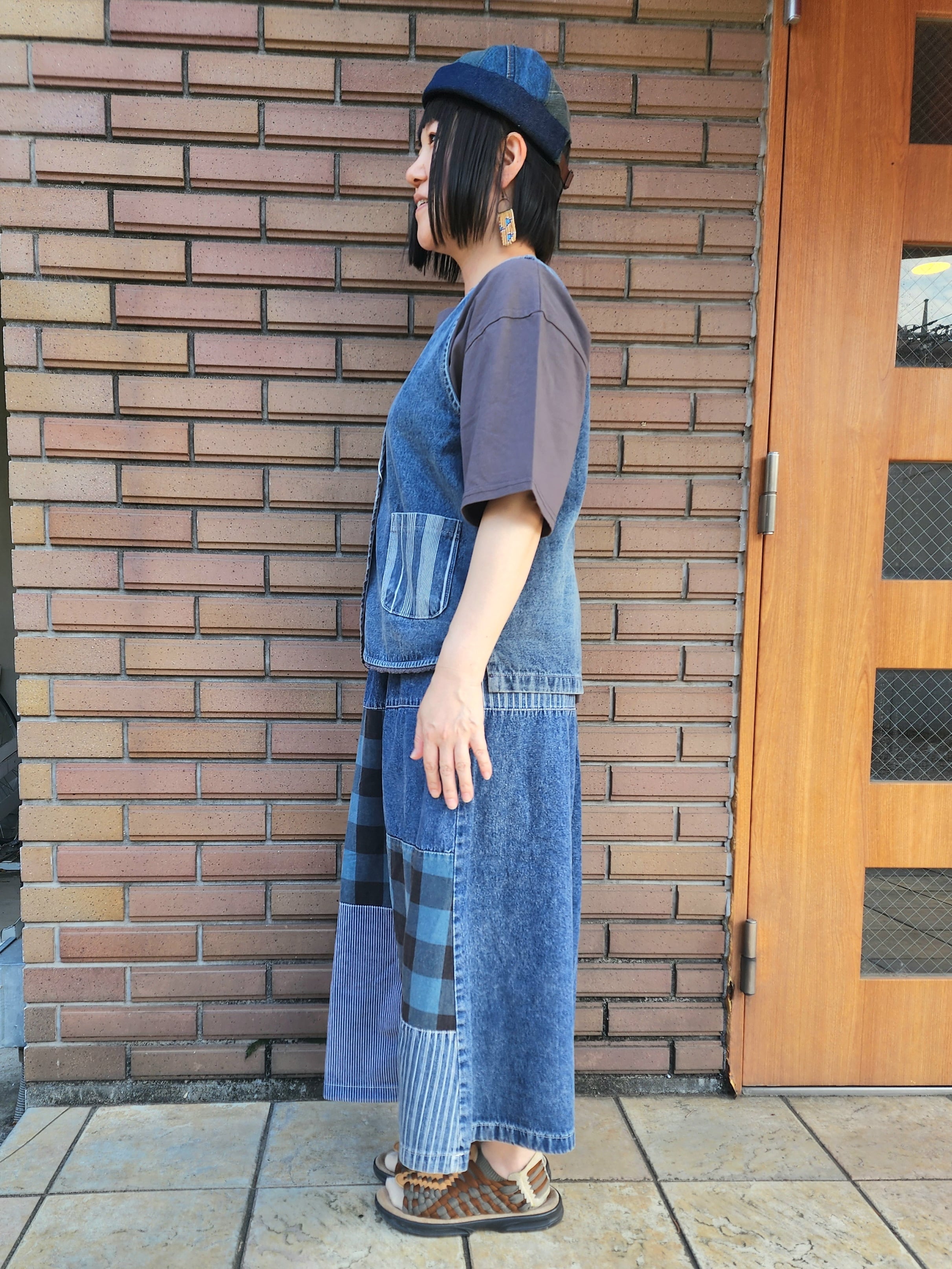 ストライプ×無地の切替がオシャレなデニムベスト。