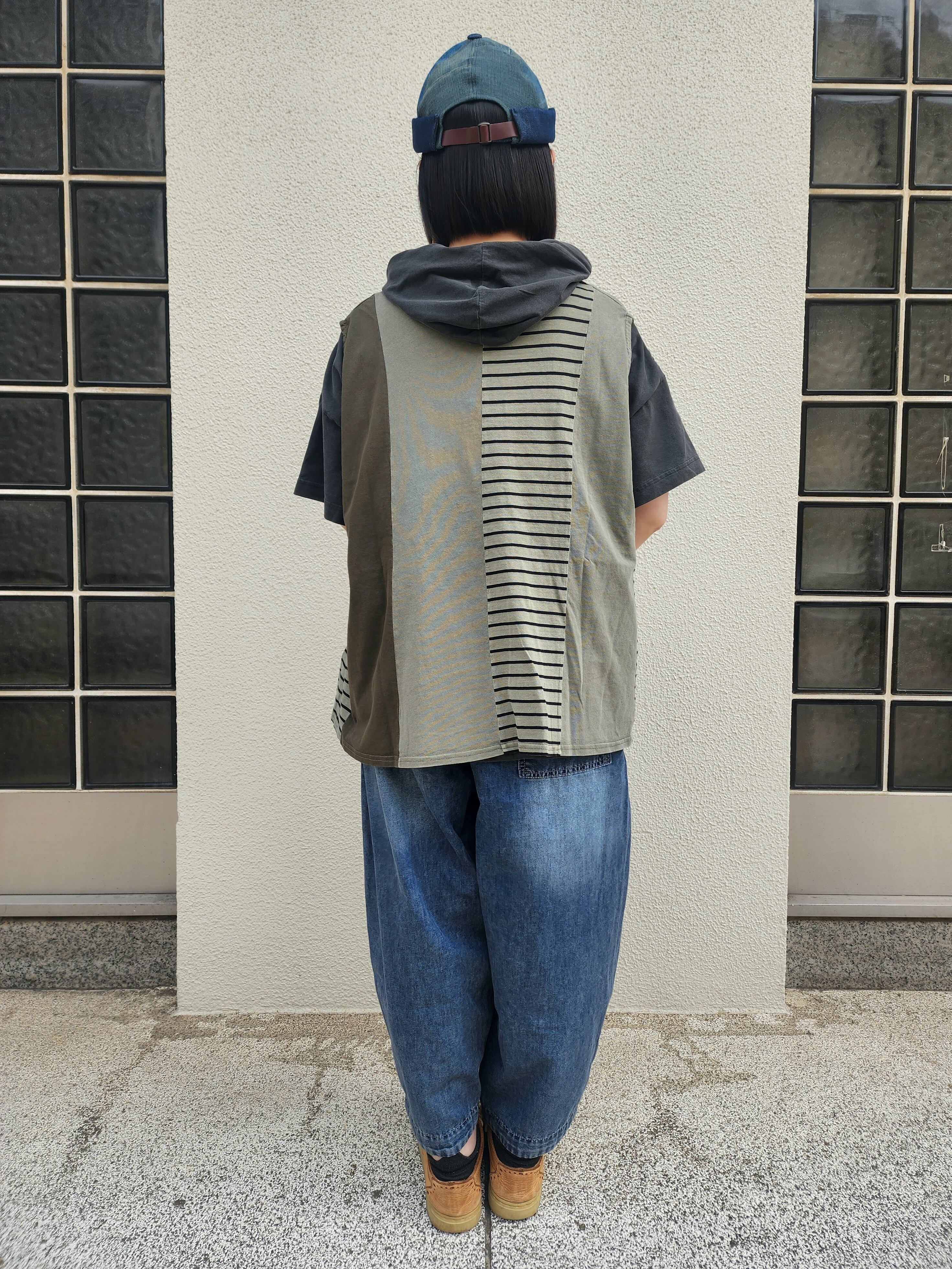 ボーダーや無地で切り替えたリメイク風のゆったりベスト。
