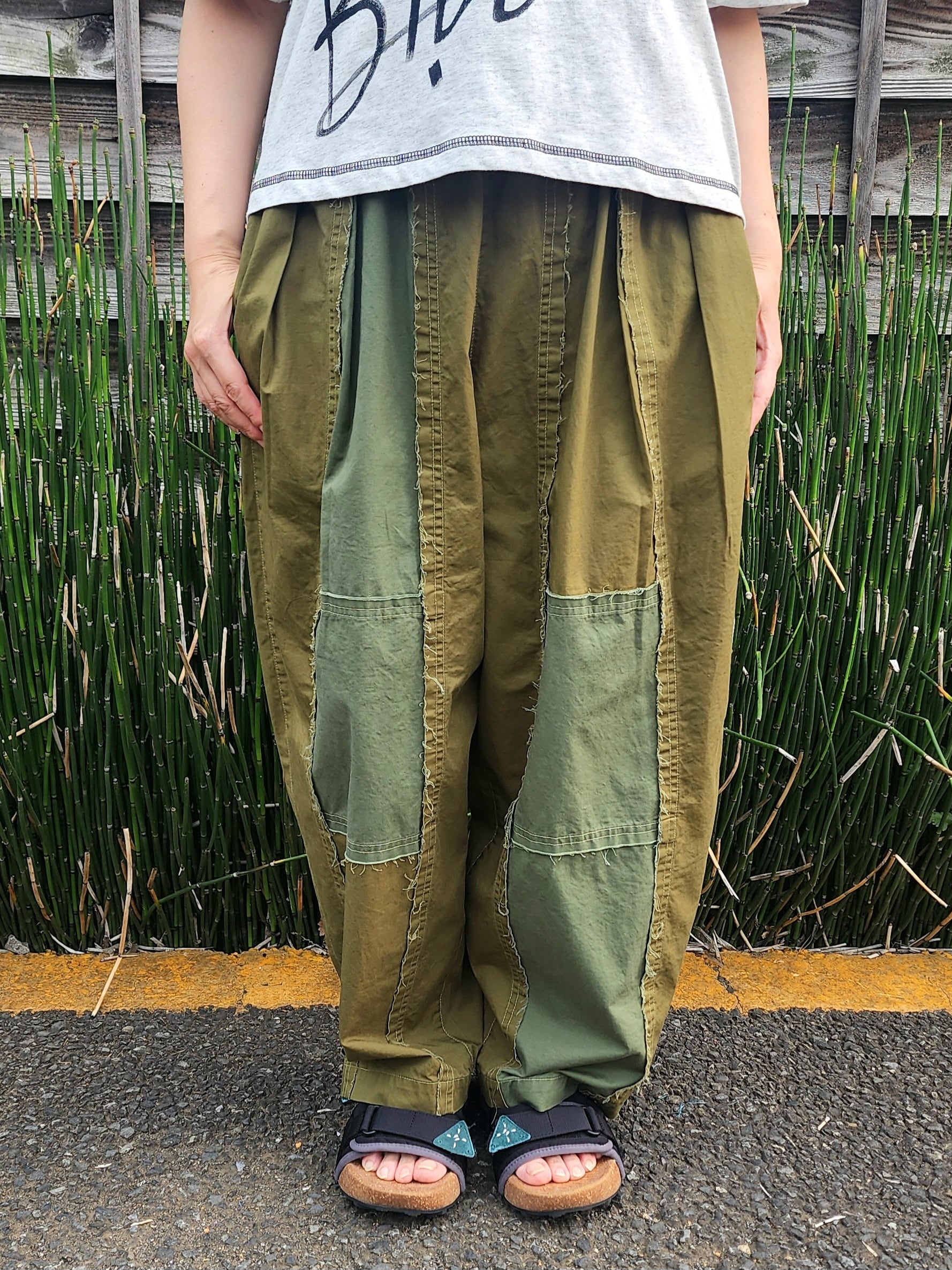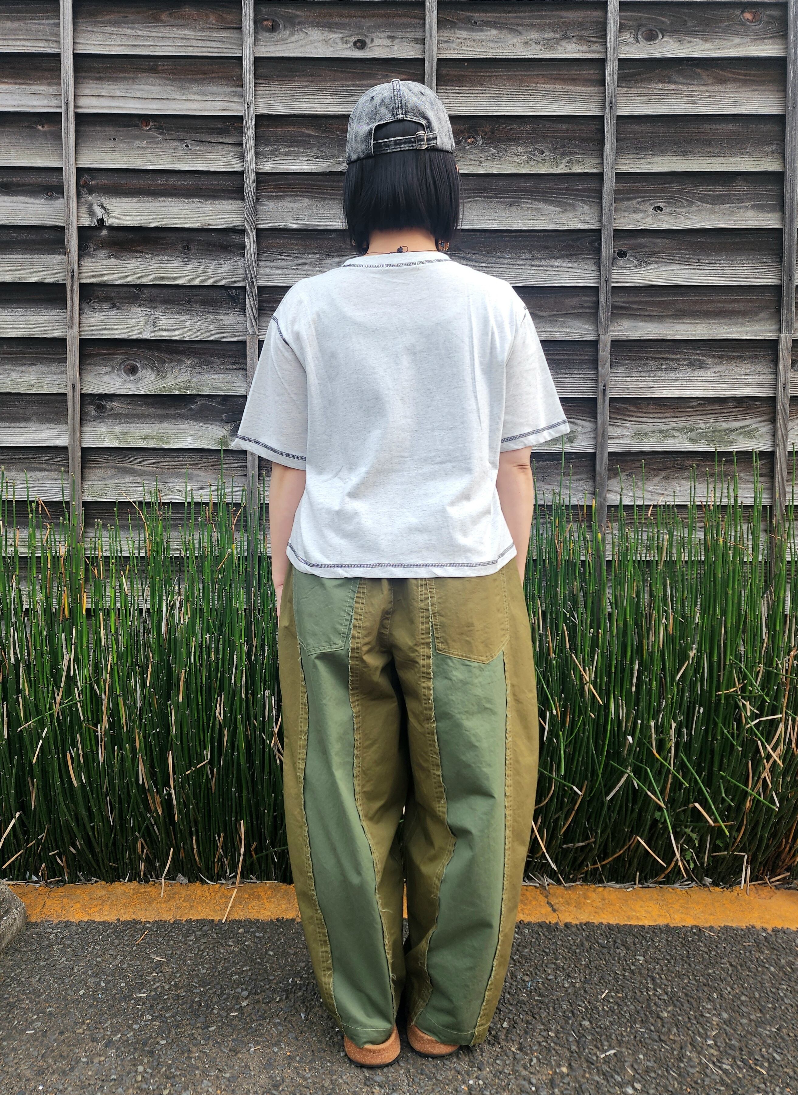 切りっぱなし切替のゆったりパンツ。