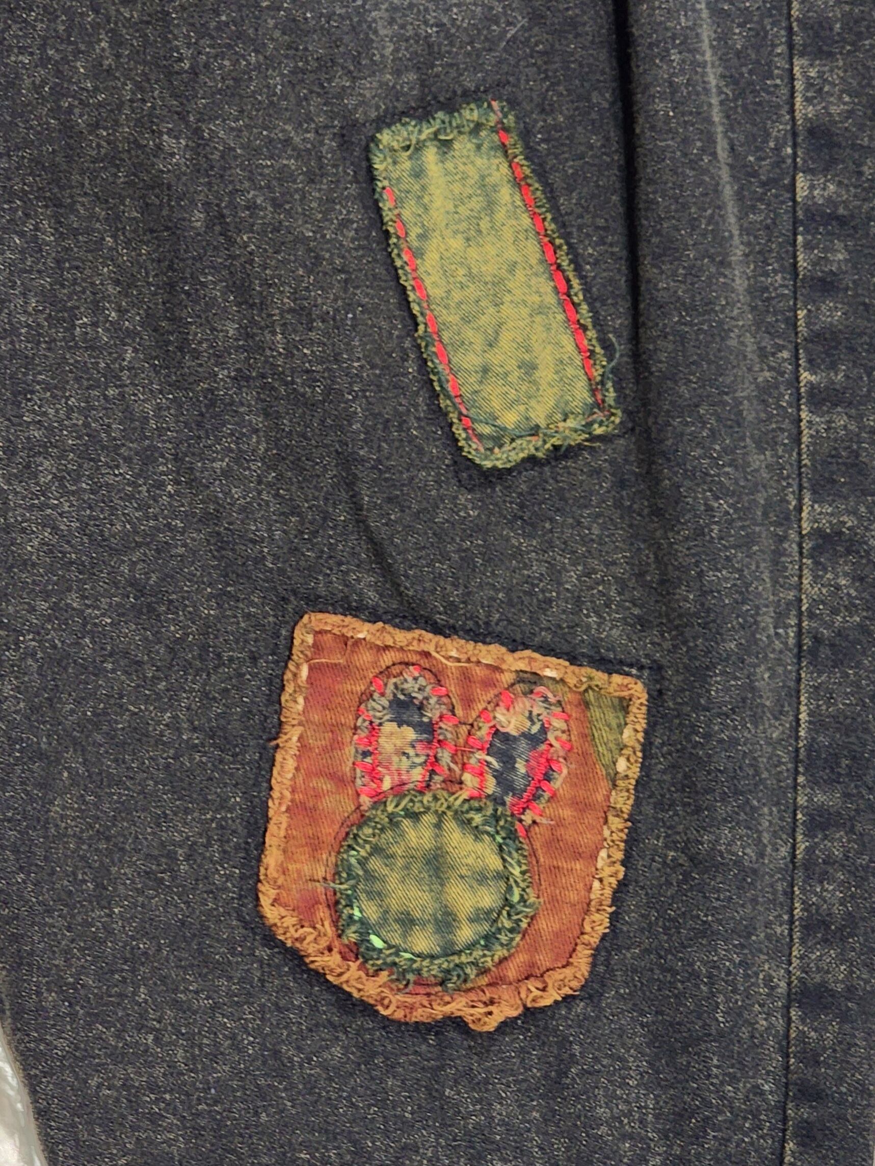 マチ付きポッケとうさぎモチーフのパッチワーク付きです。