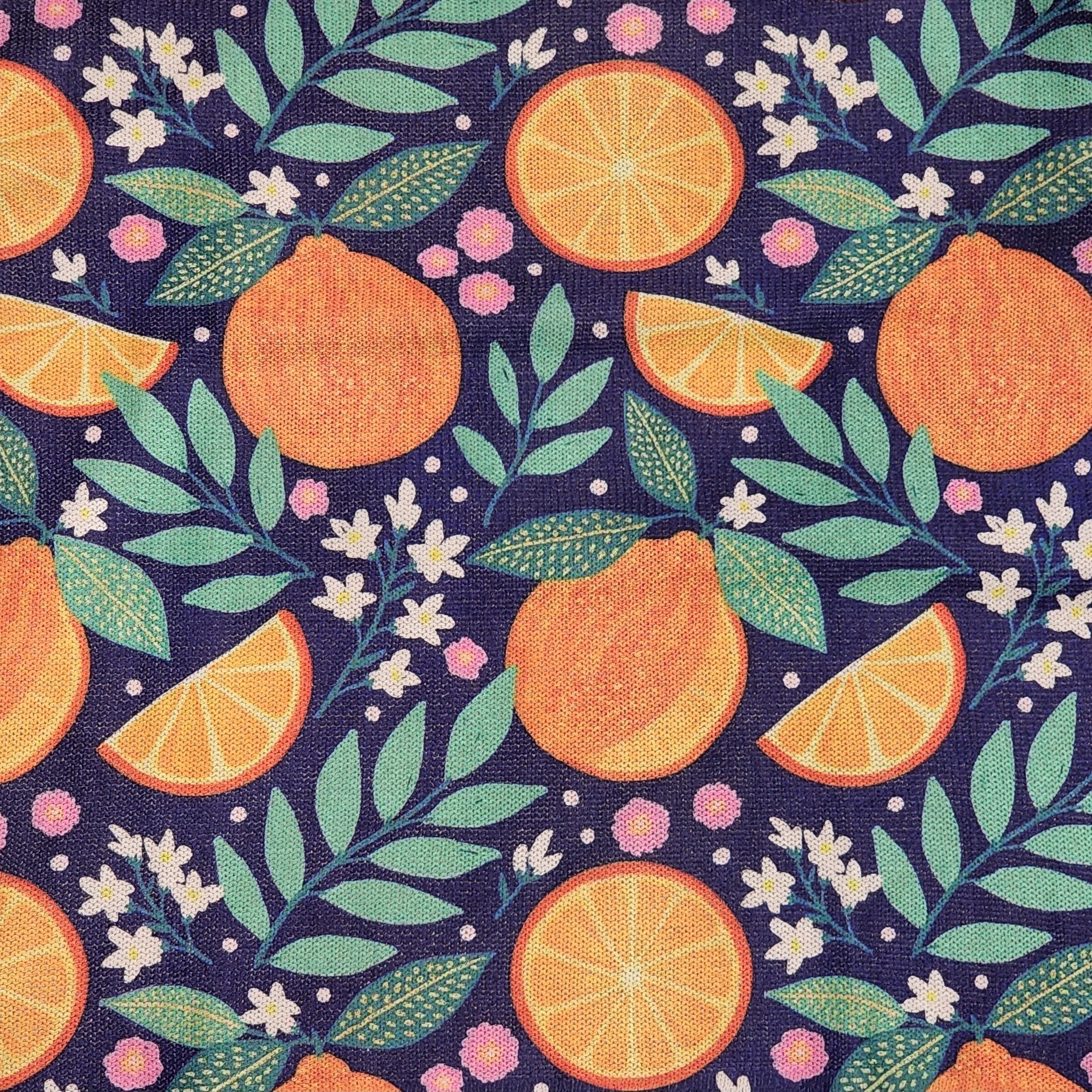 ネイビーにオレンジが映えた、爽やかで可愛らしい印象の一枚。
