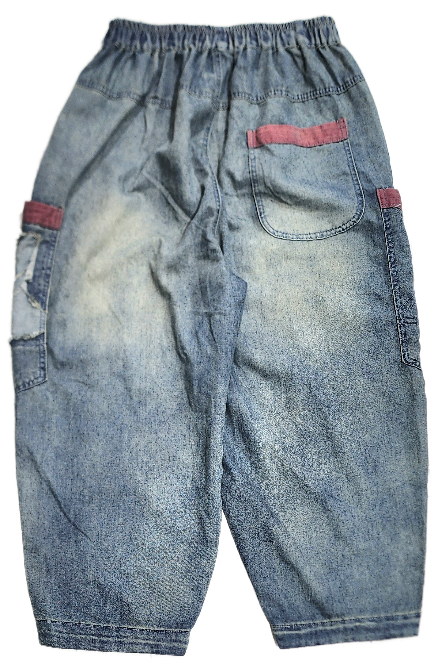 星モチーフのパッチワーク&ステッチが両サイドのポケットに入ったデニムパンツ。