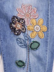 ハンドメイド感あふれる、ほっこりレトロなお花のパッチワーク&刺繍。