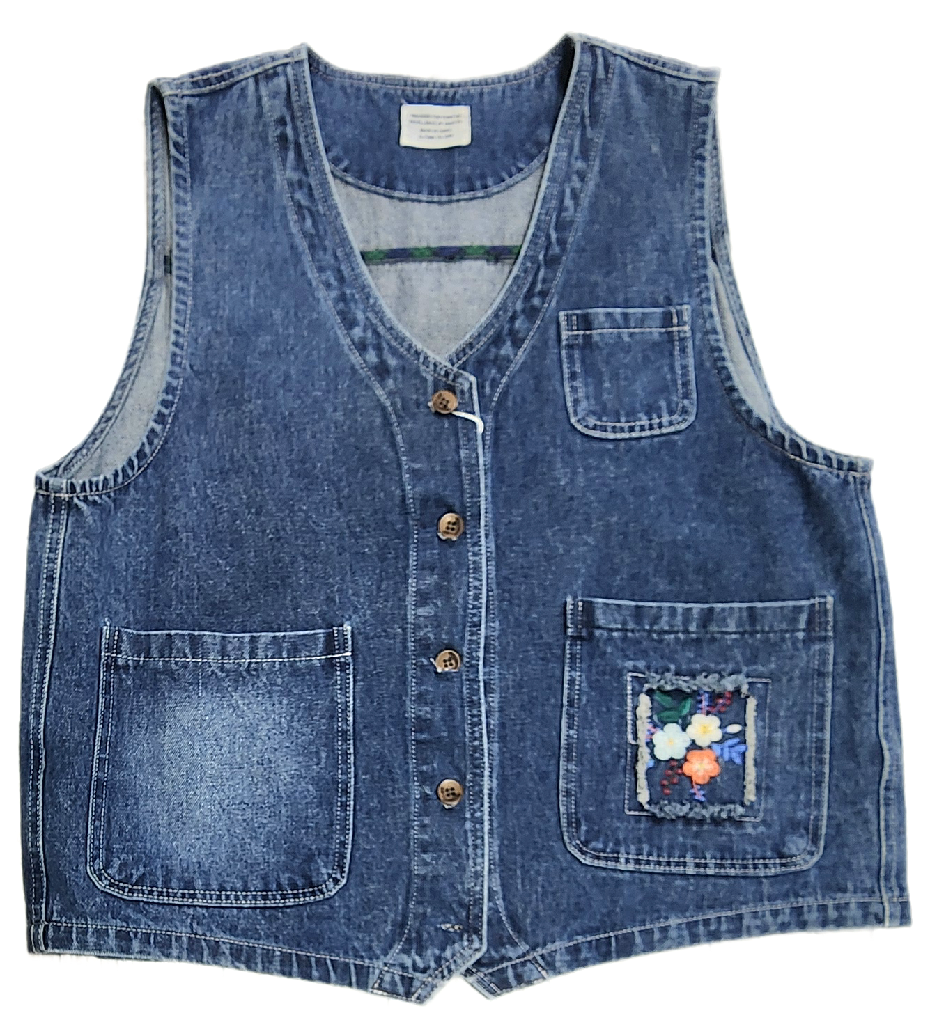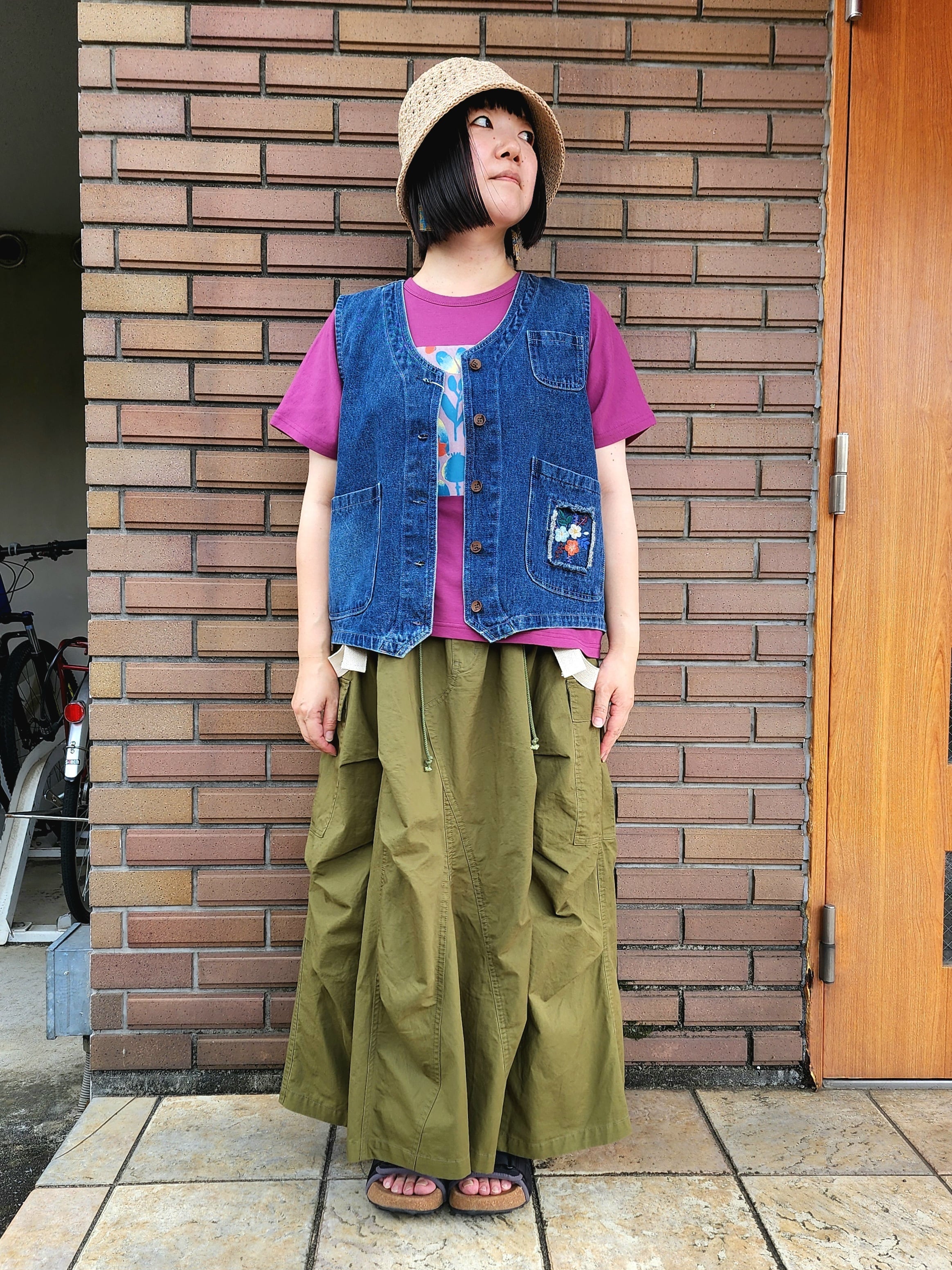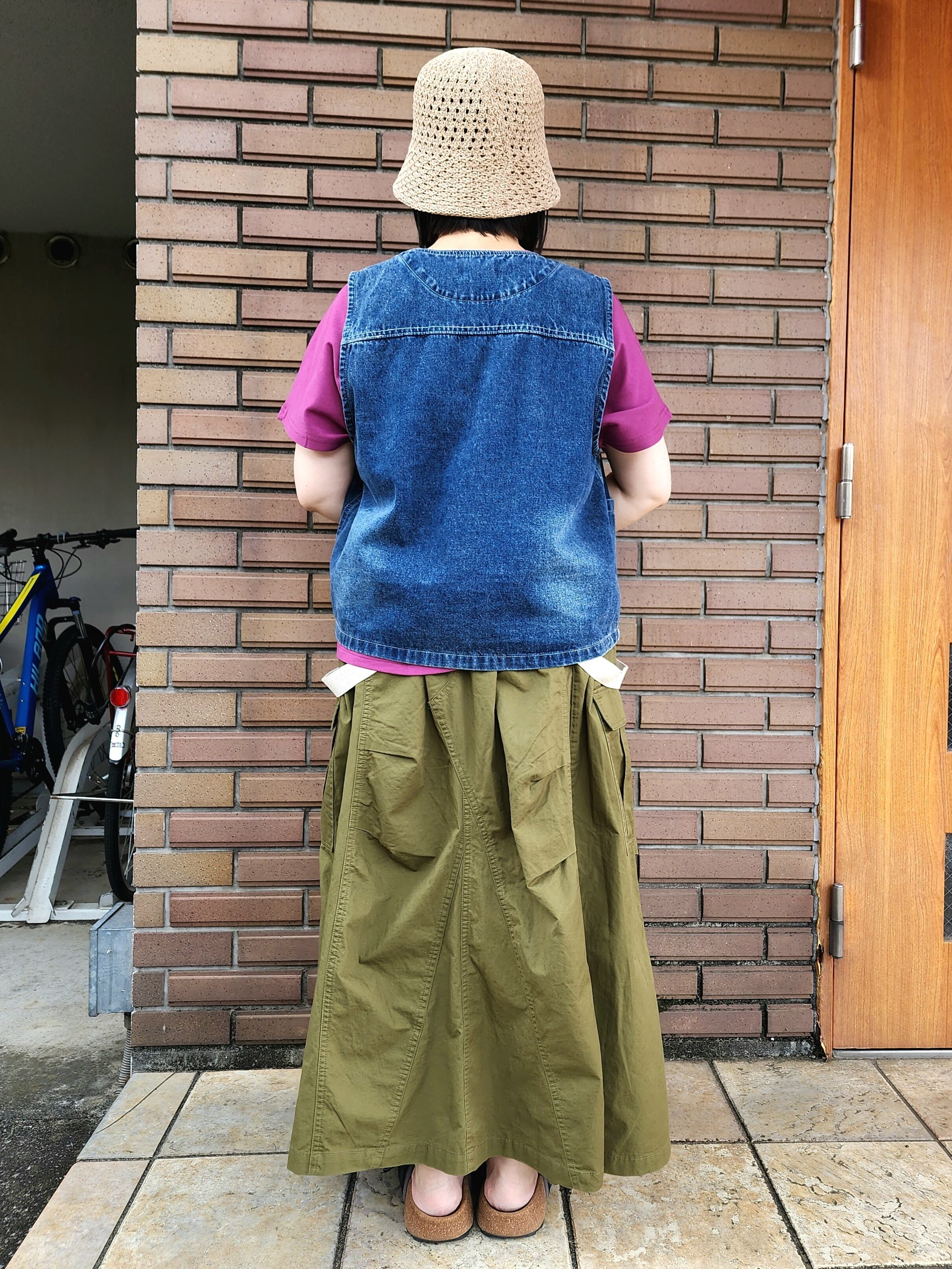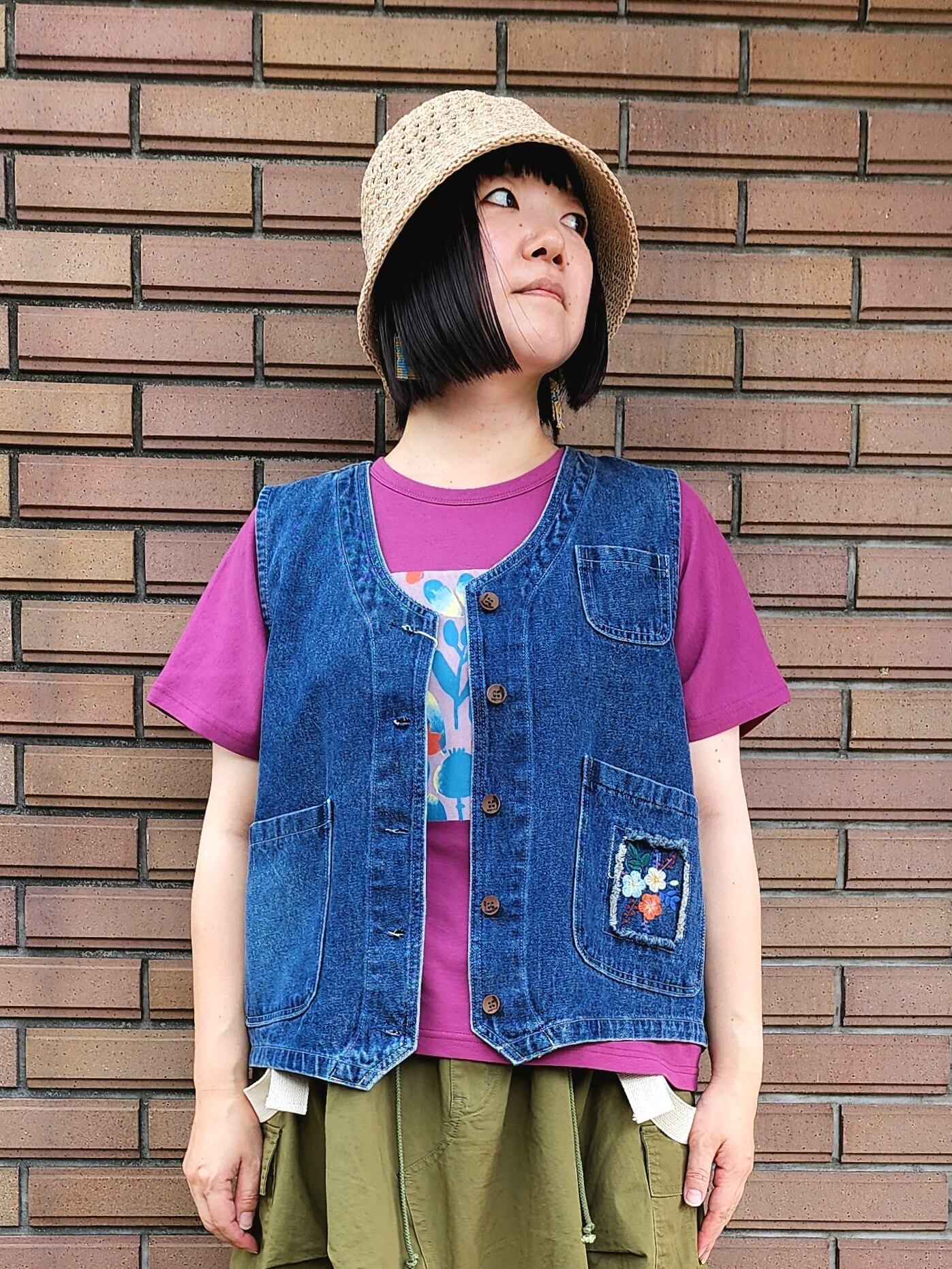 前開きでポケットも3つ付いた機能的なデニムベストです。