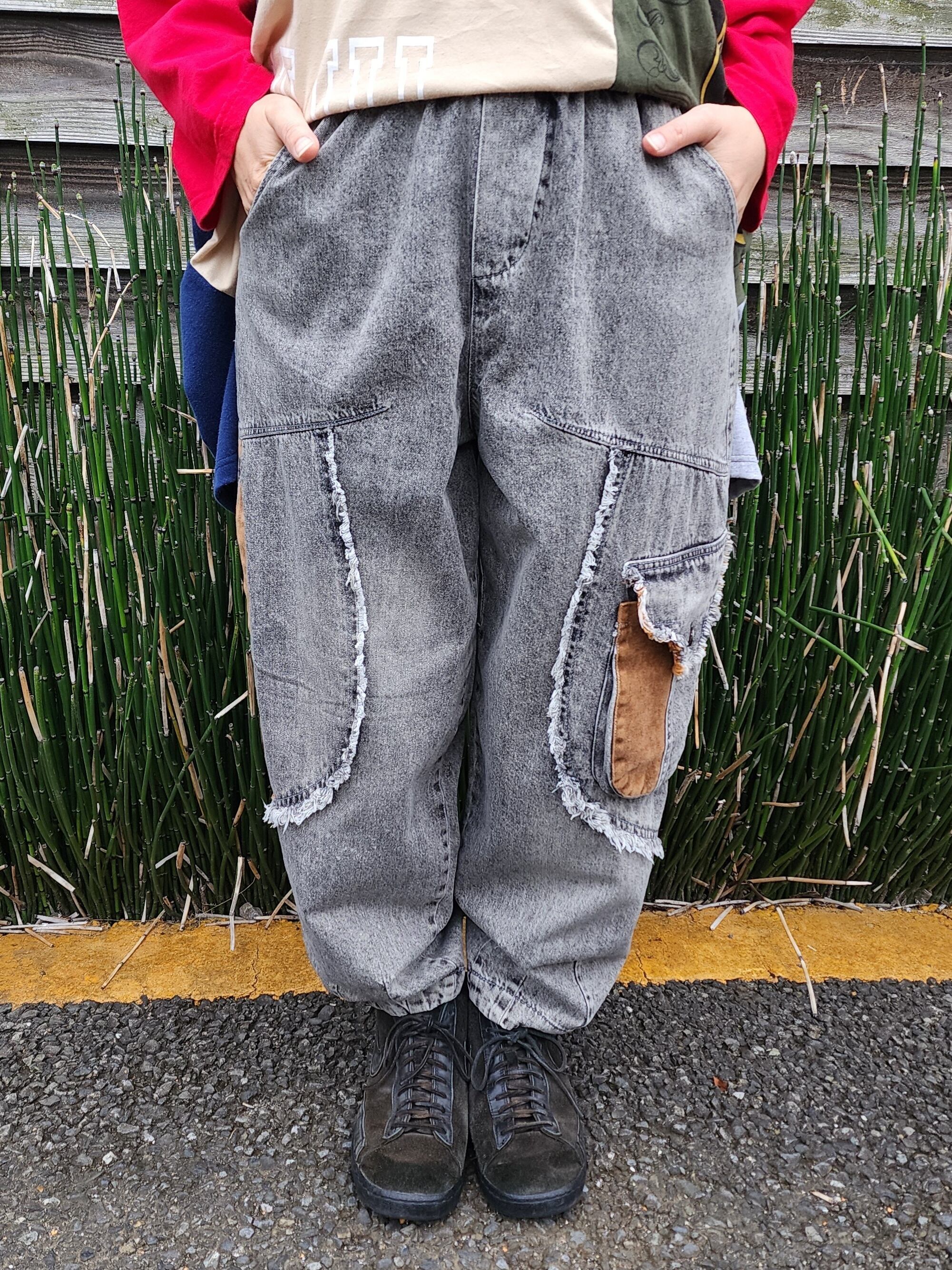 ポッケやサイドなどをちょこっとブラウンで切り替えたデニムパンツ。