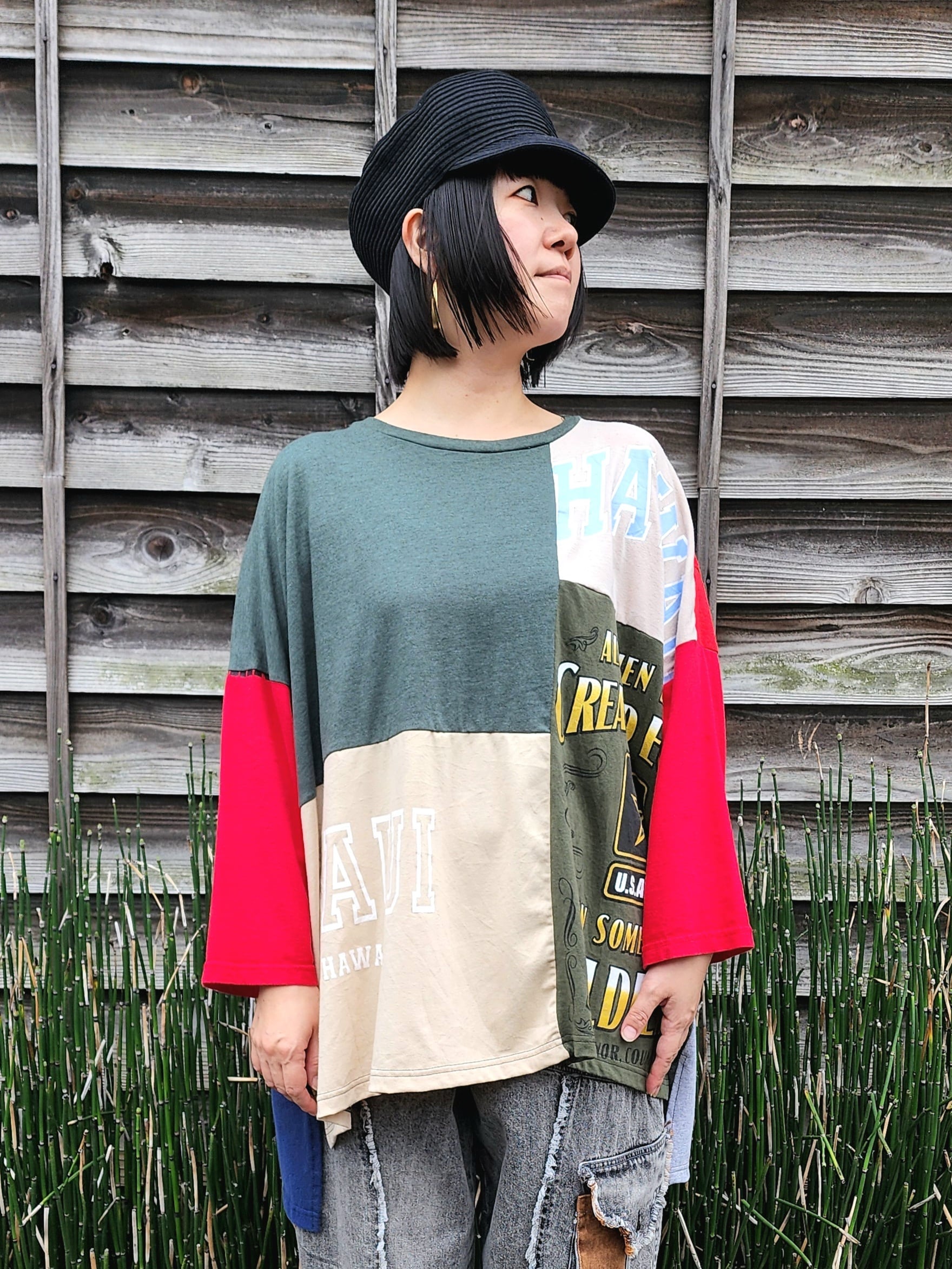 色々なTシャツを贅沢に組み合わせたパッチワークT。