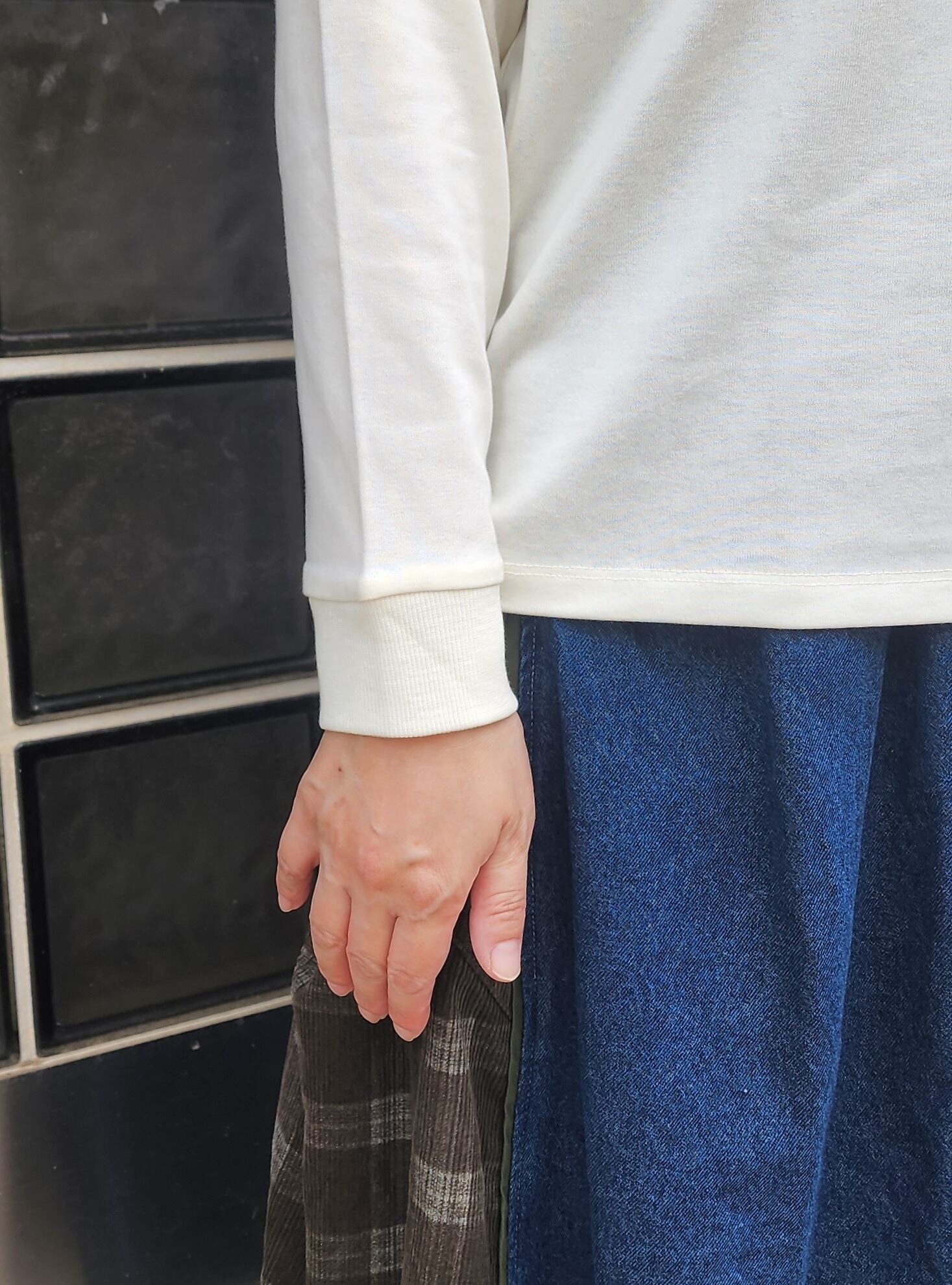 袖口はリブで手首まわりが邪魔にならずすっきり着られます。