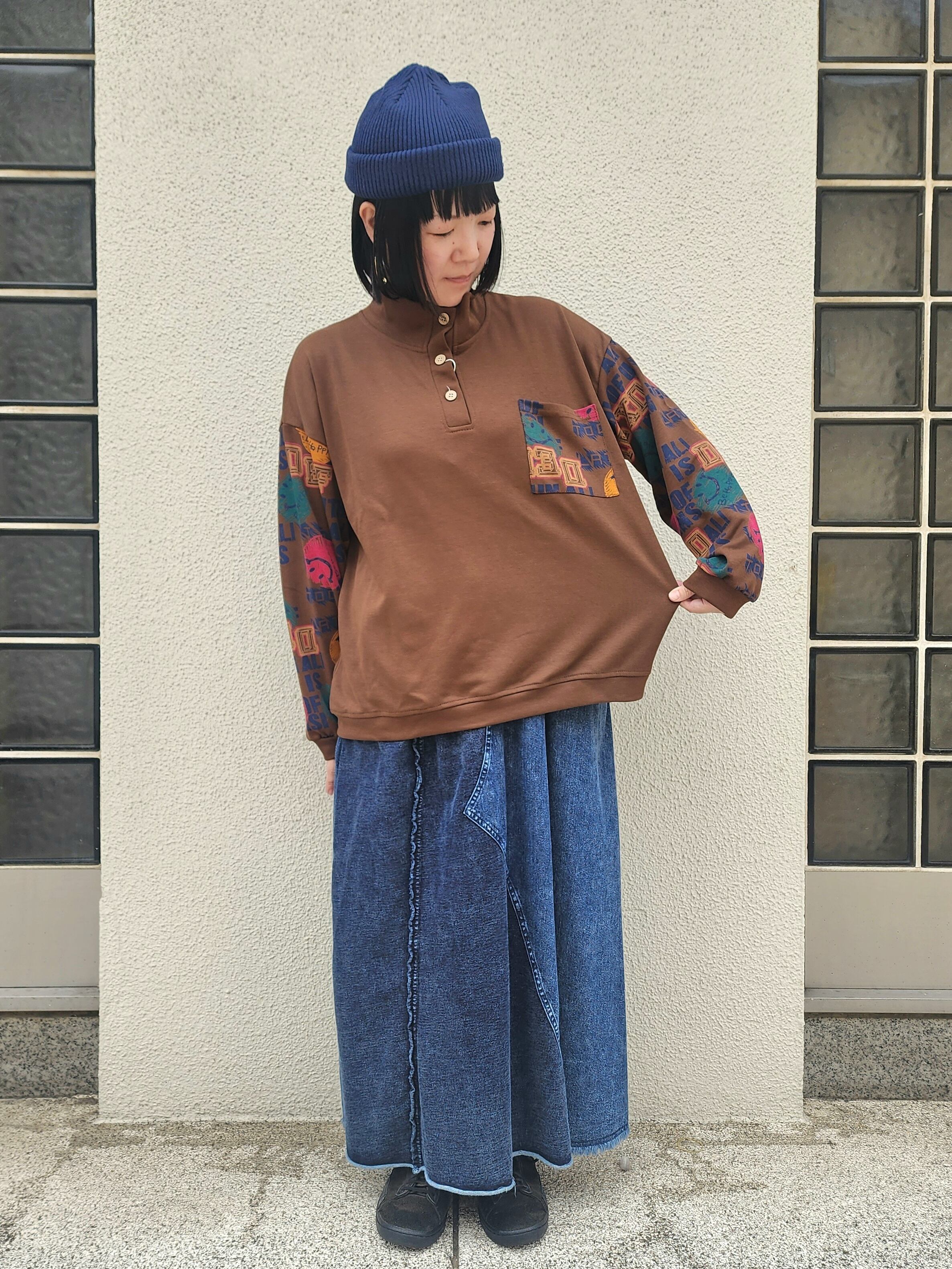 一枚でパンツやスカートに合わせても、袖のプリントや首のデザインを活かしてベストやサロペの中に着ても可愛いです。