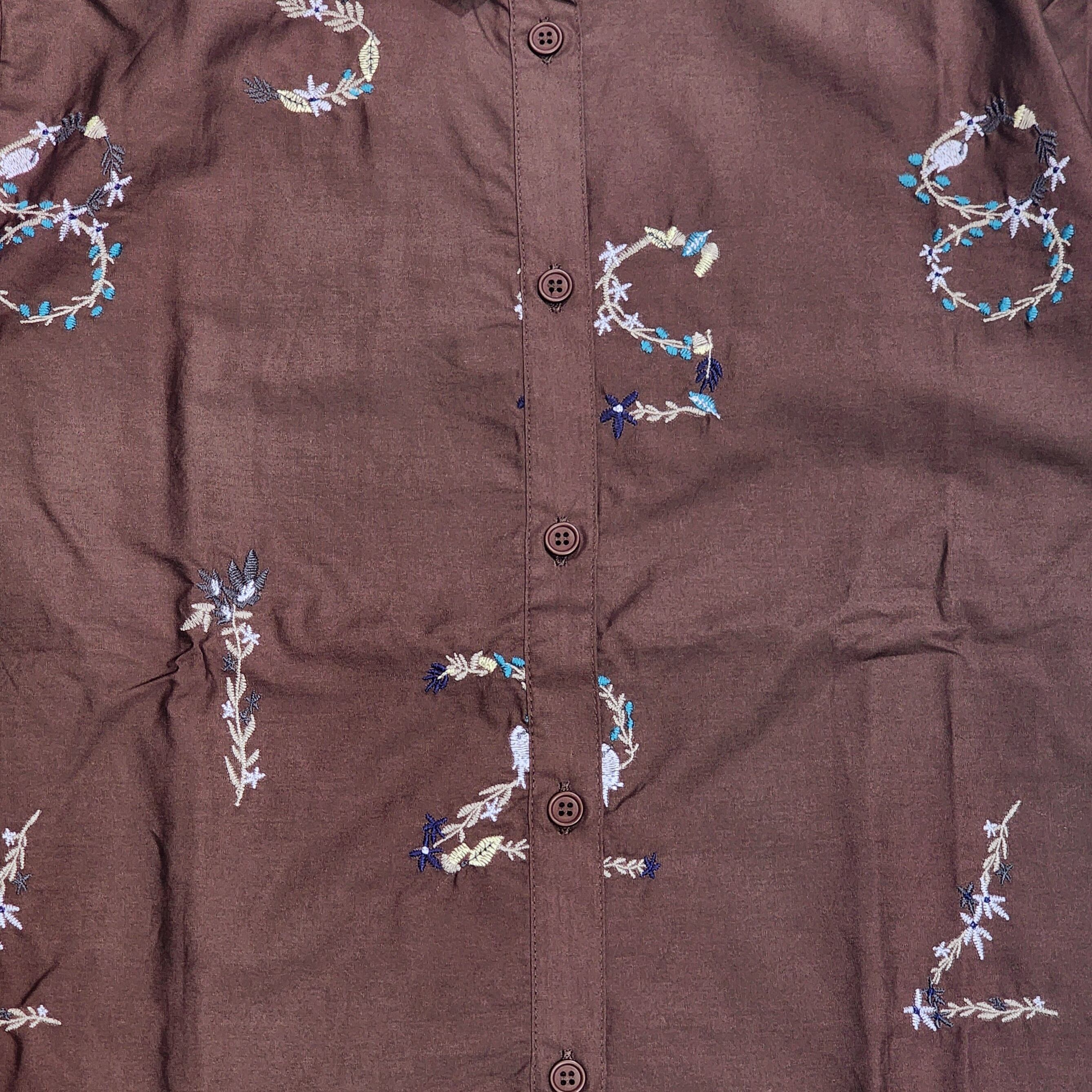 植物や小鳥で数字が刺繍された素敵なシャツ。