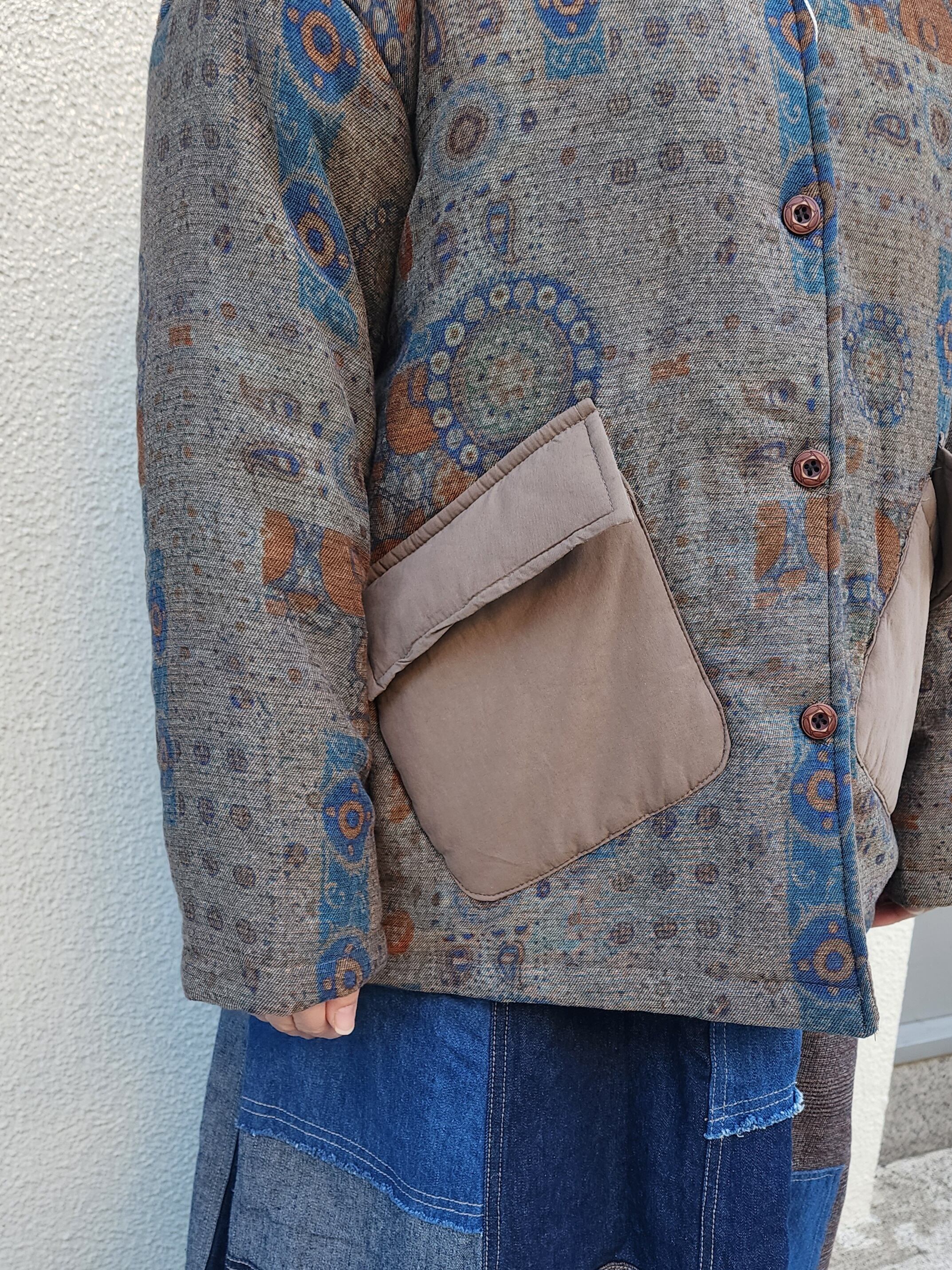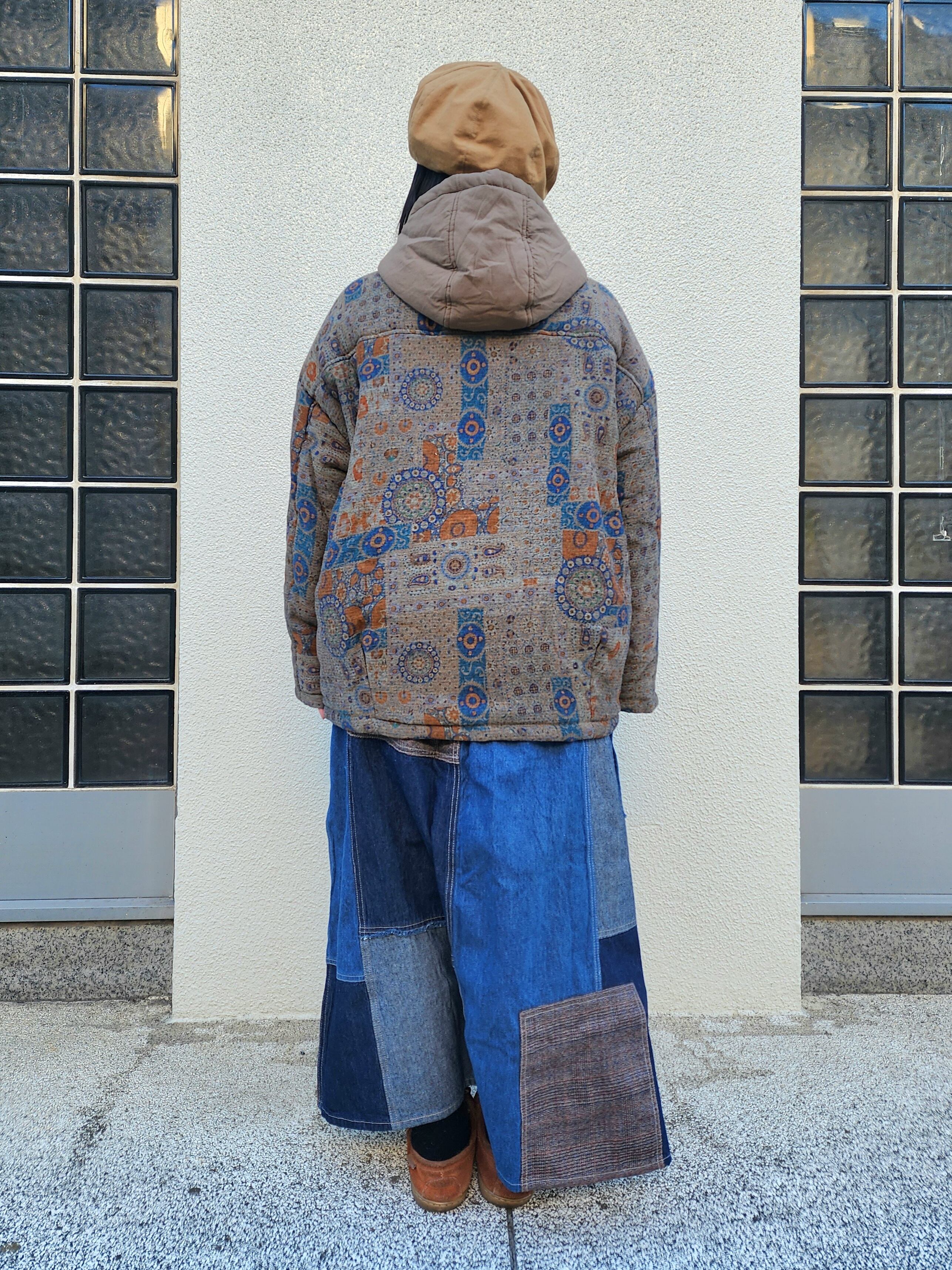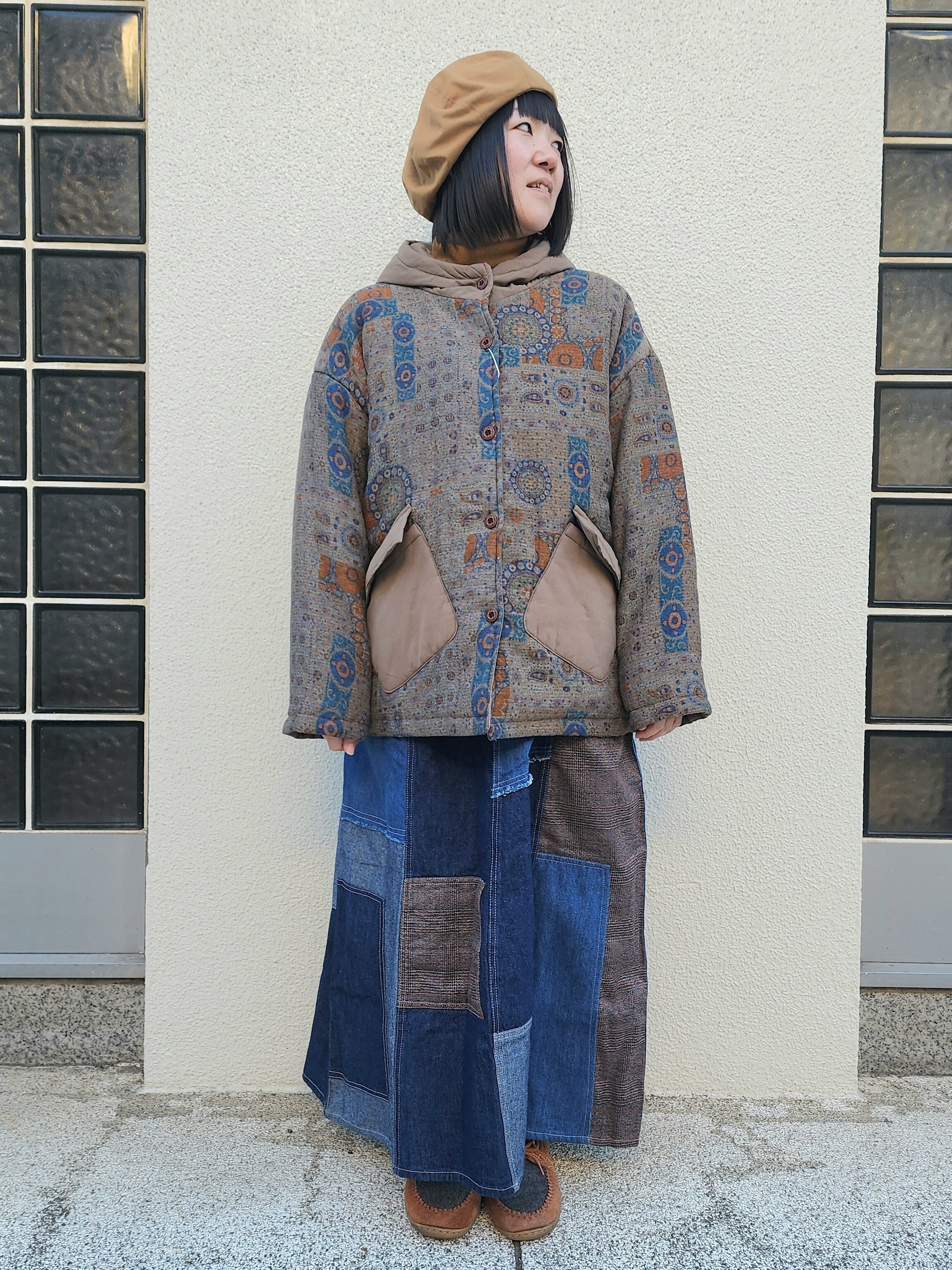 エスニック風の柄はベージュ地に馴染んだプリントになっていて、派手過ぎず取り入れやすいです。