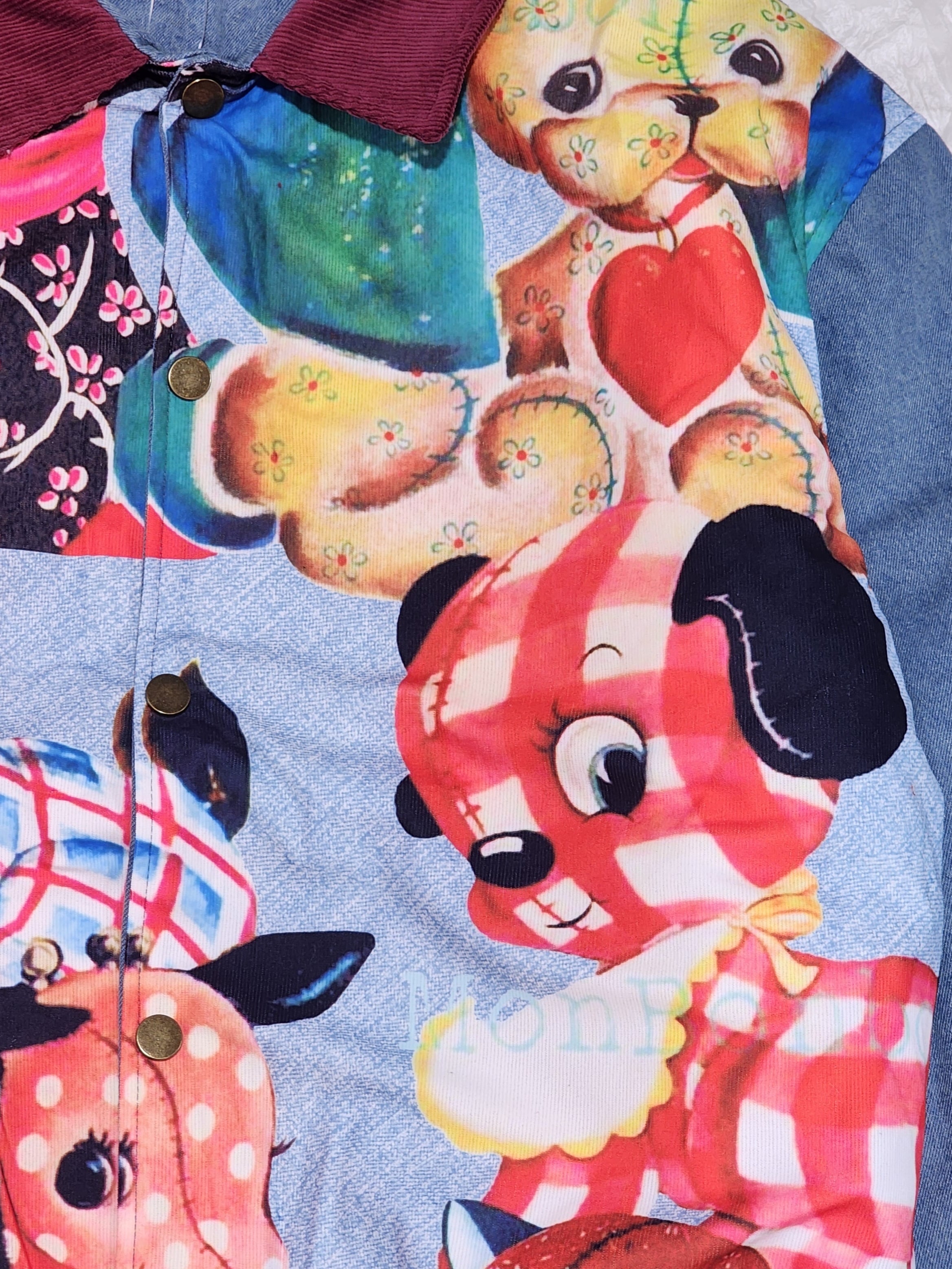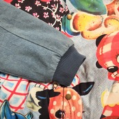 襟はコーデュロイ、袖と後ろ身頃は柔らかなデニムで切り替えています。