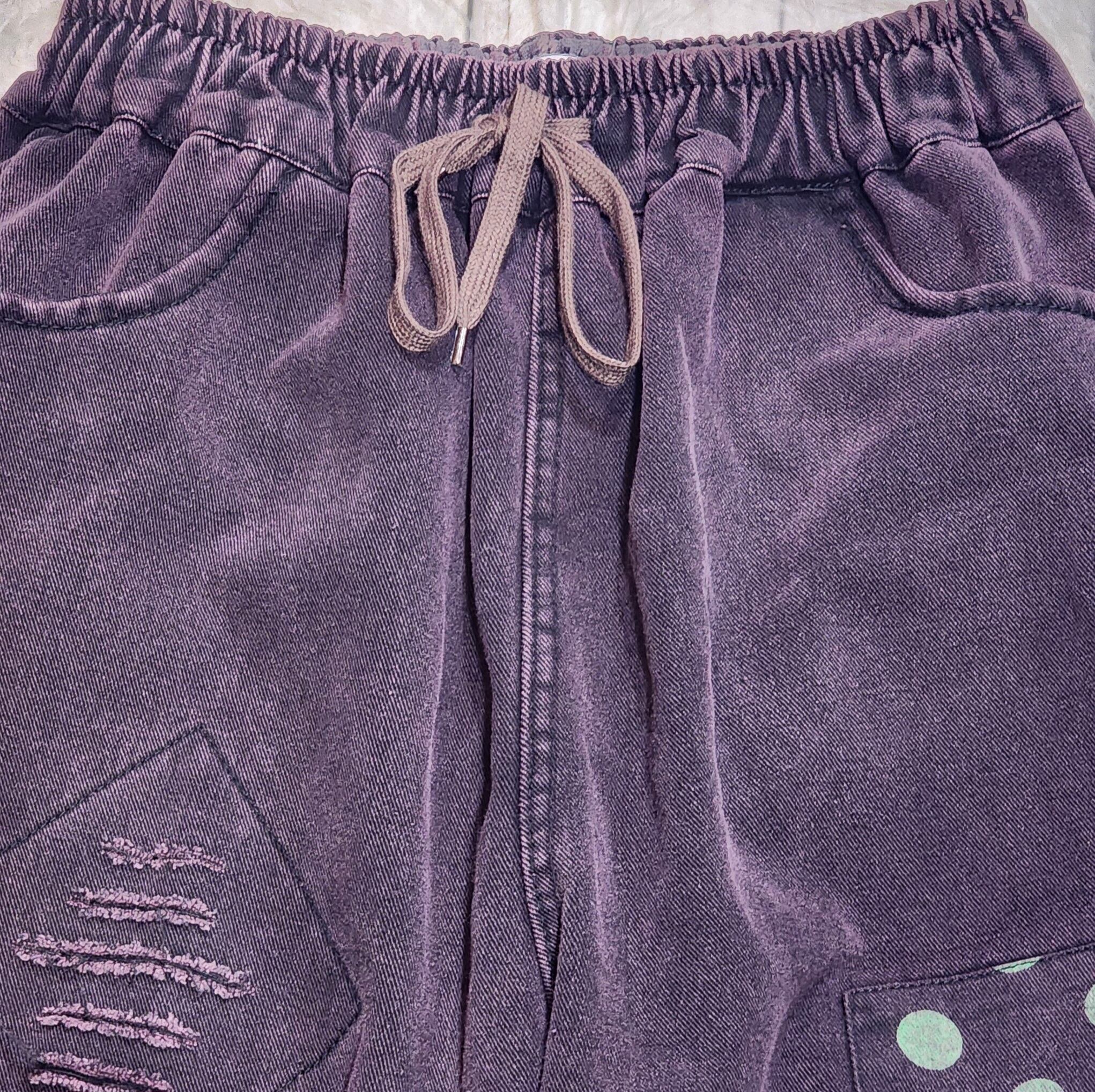 くすんだダークパープルカラーのデニム地が珍しい、裏起毛タイプのボトムスです。