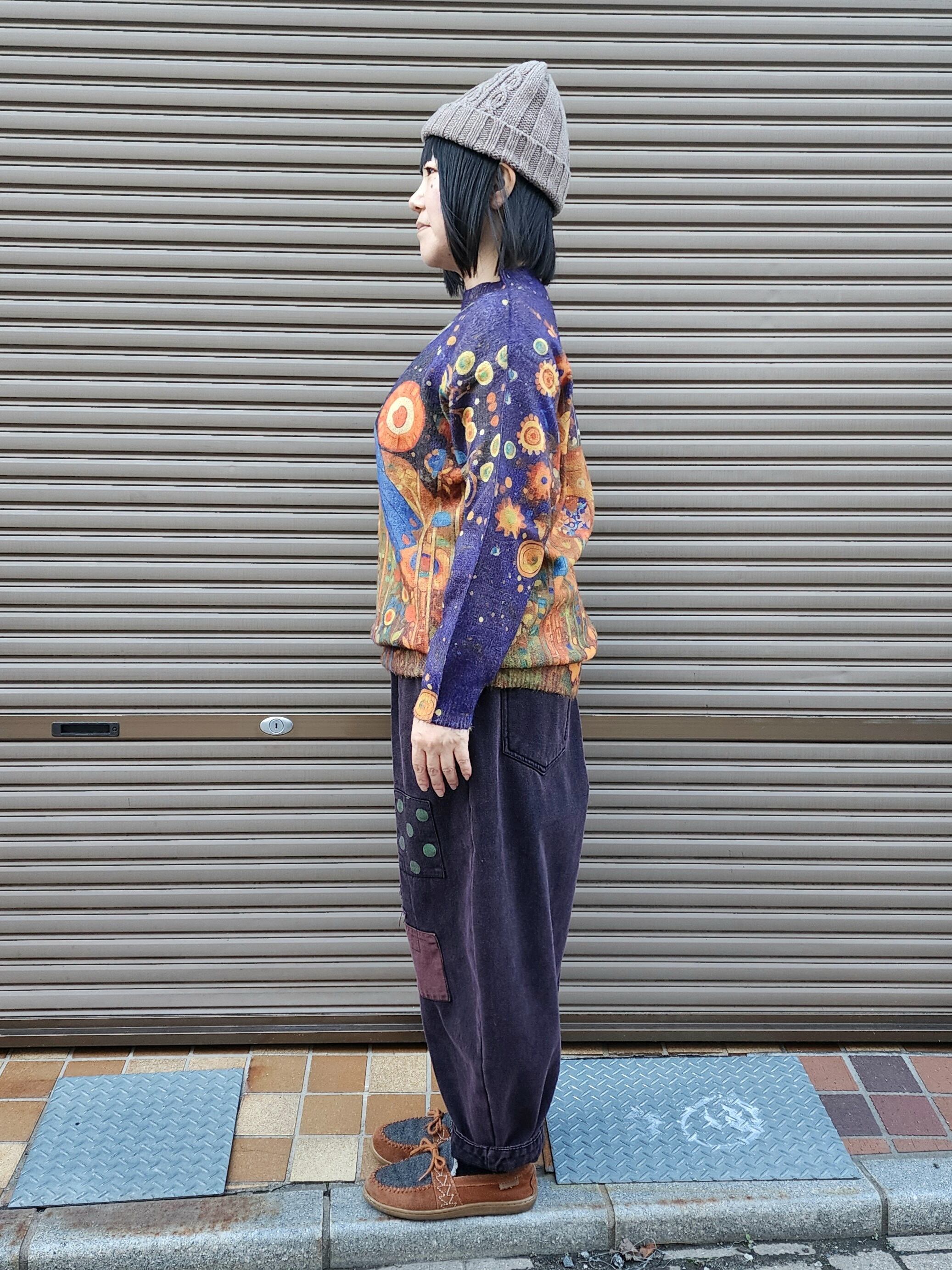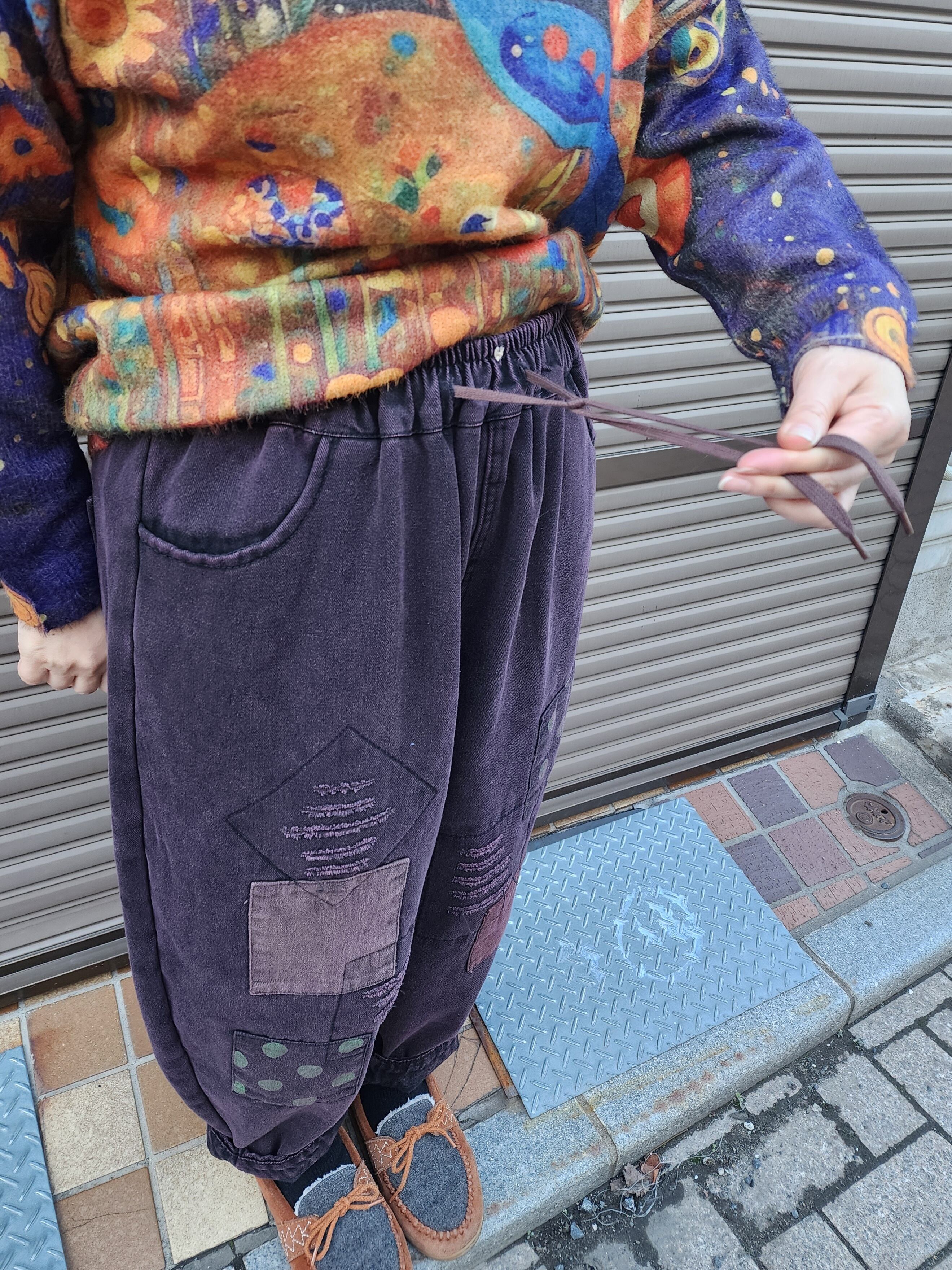 四角パッチワークの裏起毛パンツ