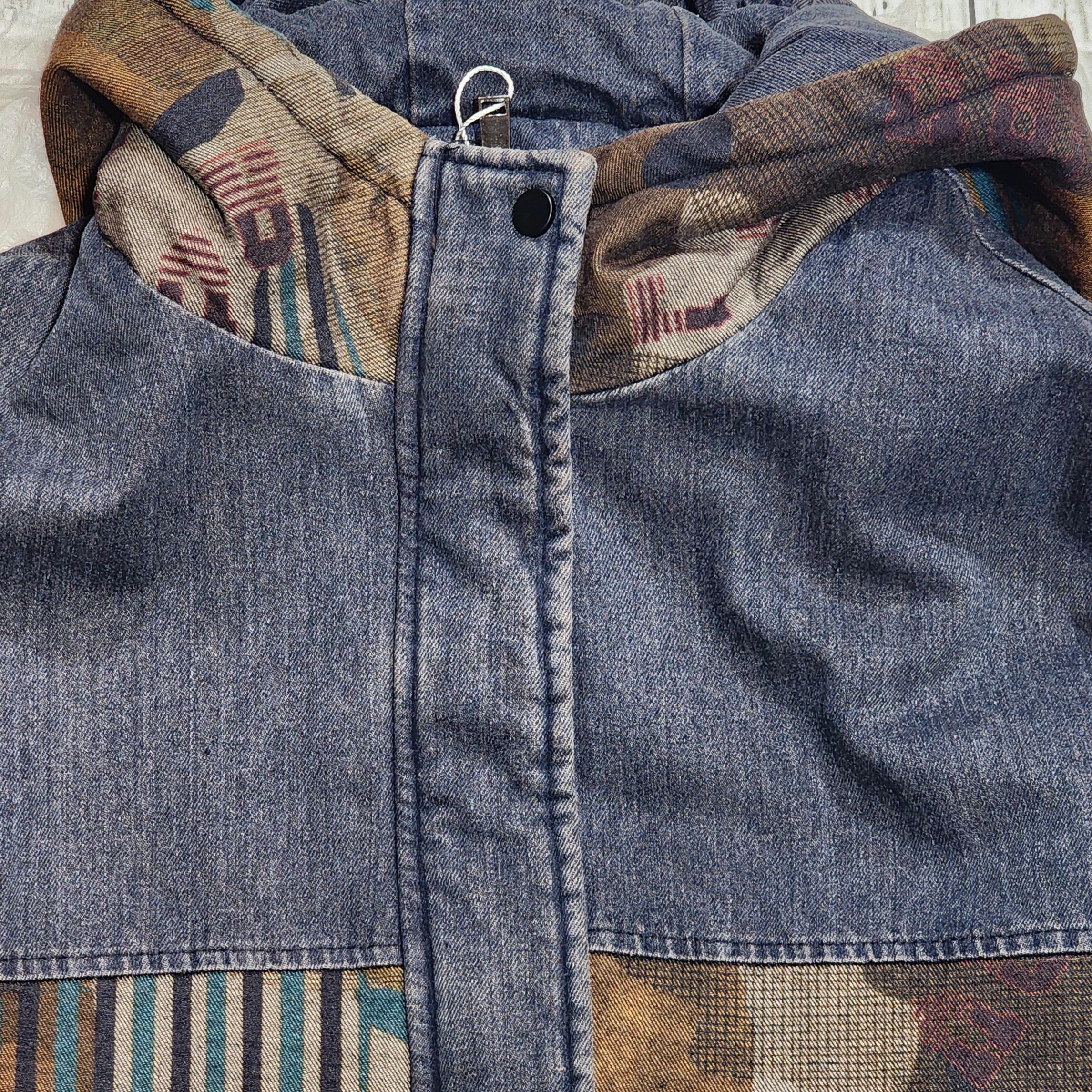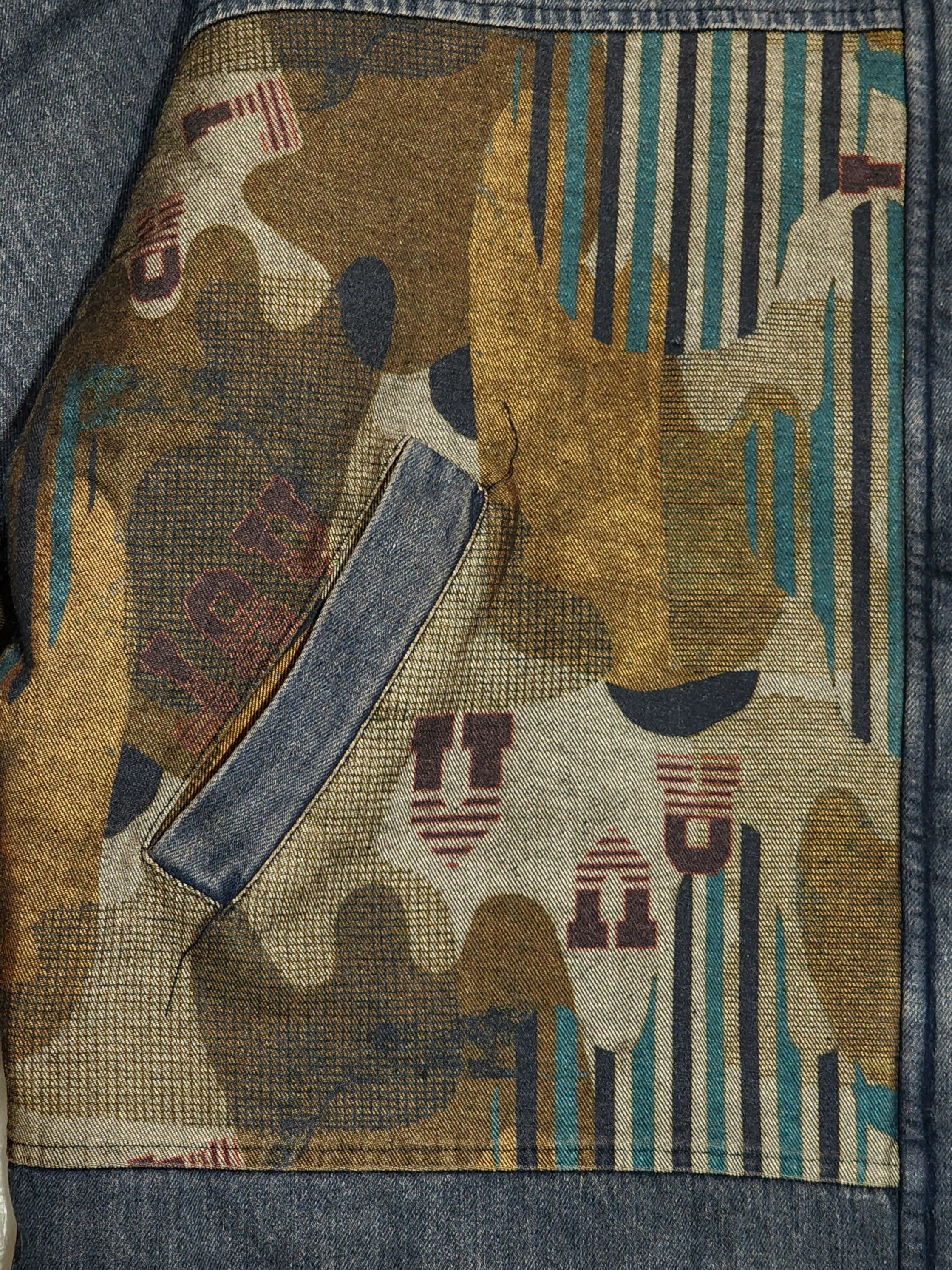 アートなカモフラ柄切替のデニムアウター