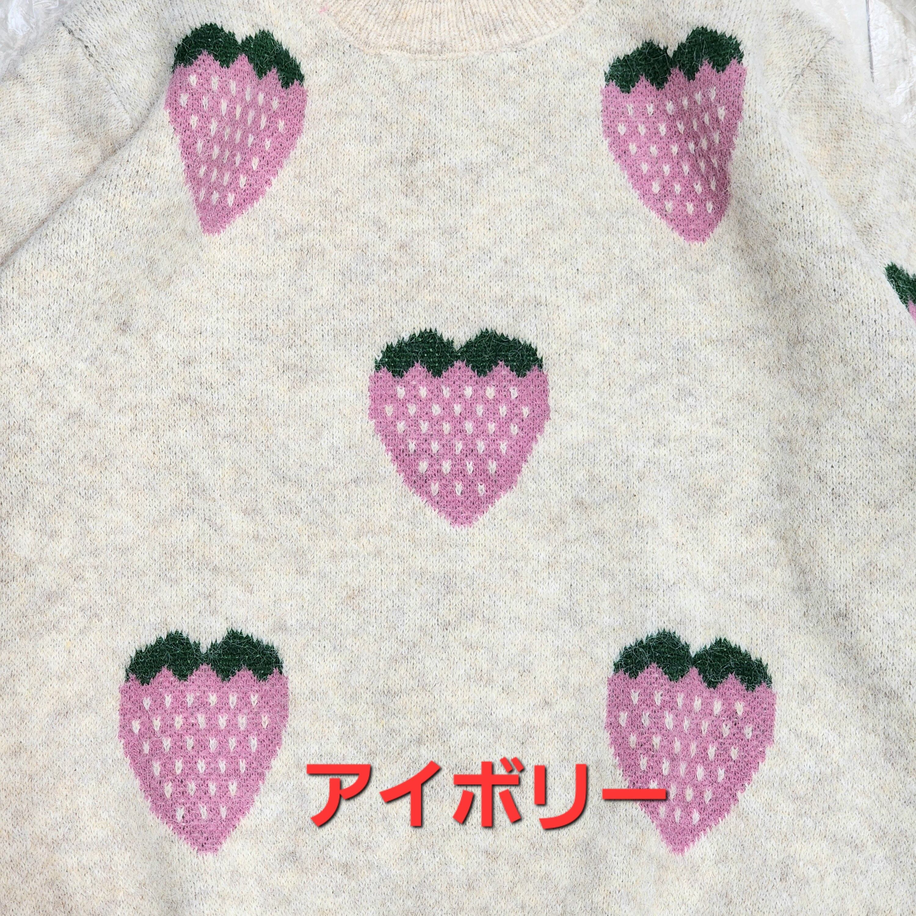 レトロ可愛いイチゴ柄のニットプルオーバー。