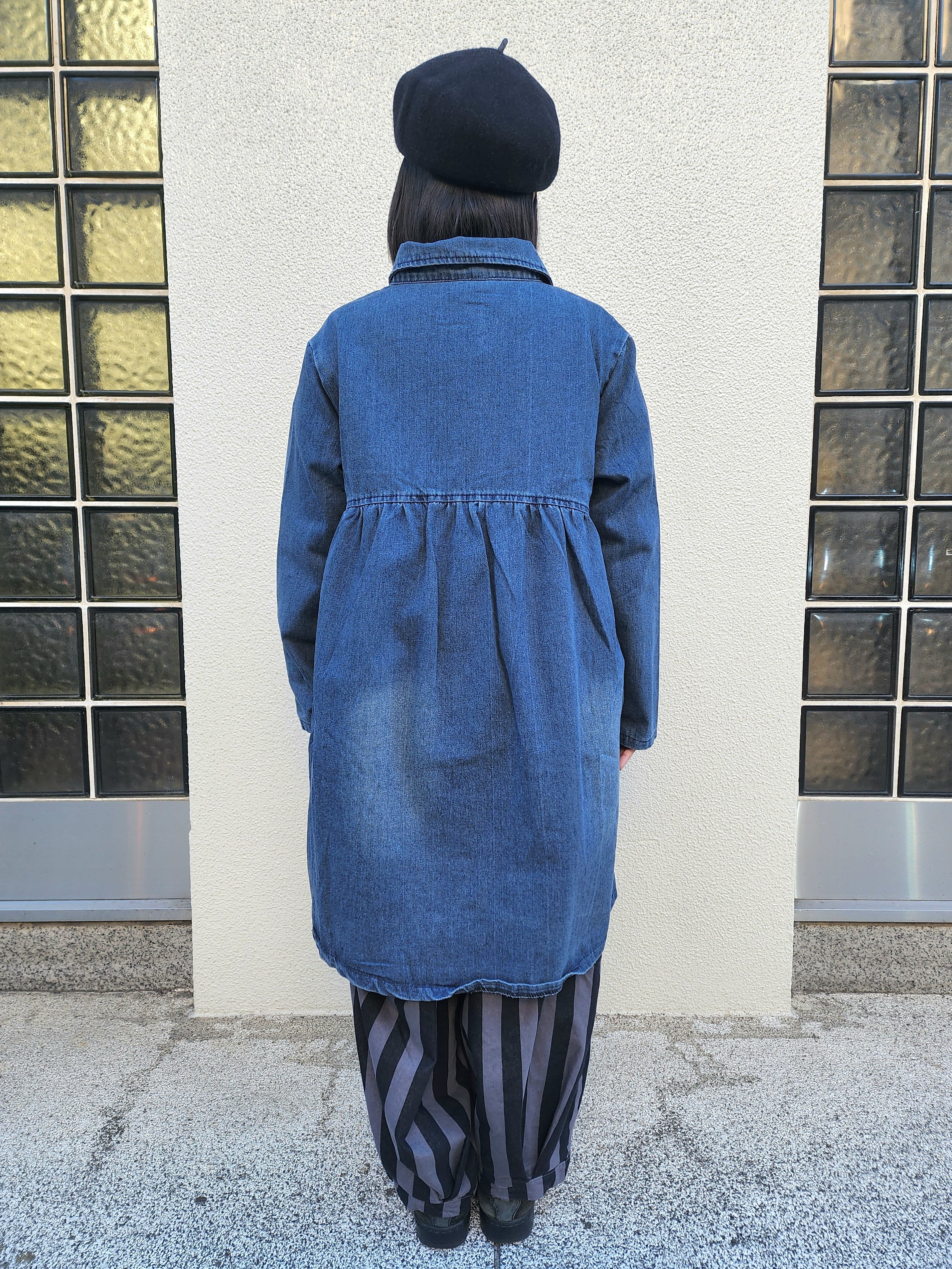 裾に向かって広がったゆったりとしたシルエットで羽織りやすく、シャツの様に羽織って着たり、前を閉めてチュニックの様に着たりと色々コーディネート可能なアイテムです。