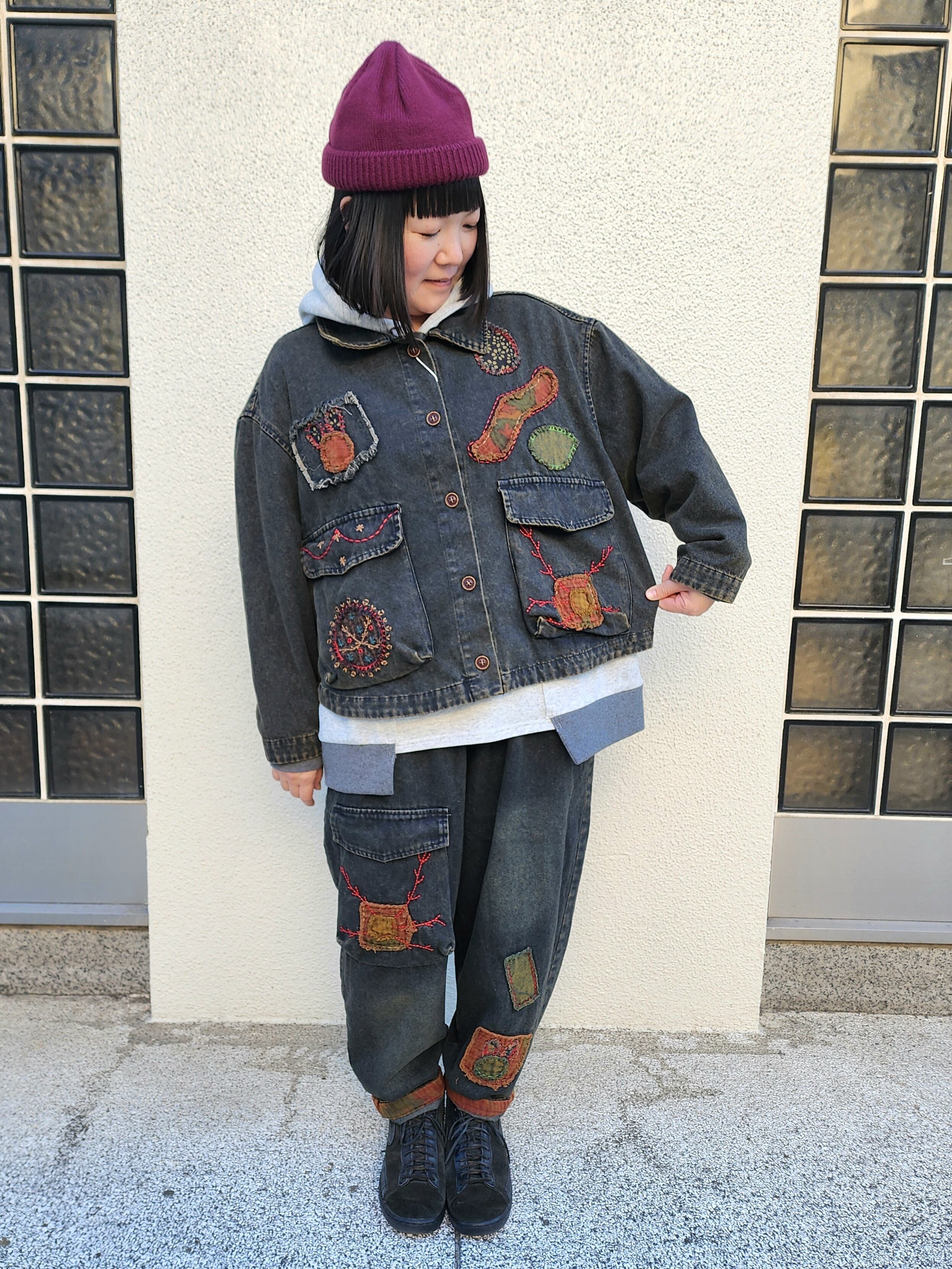 柔らかくて軽いデニムをベースに、ハンドメイド感が素敵な刺繍&パッチワークが他にはない個性的な一枚になっています。