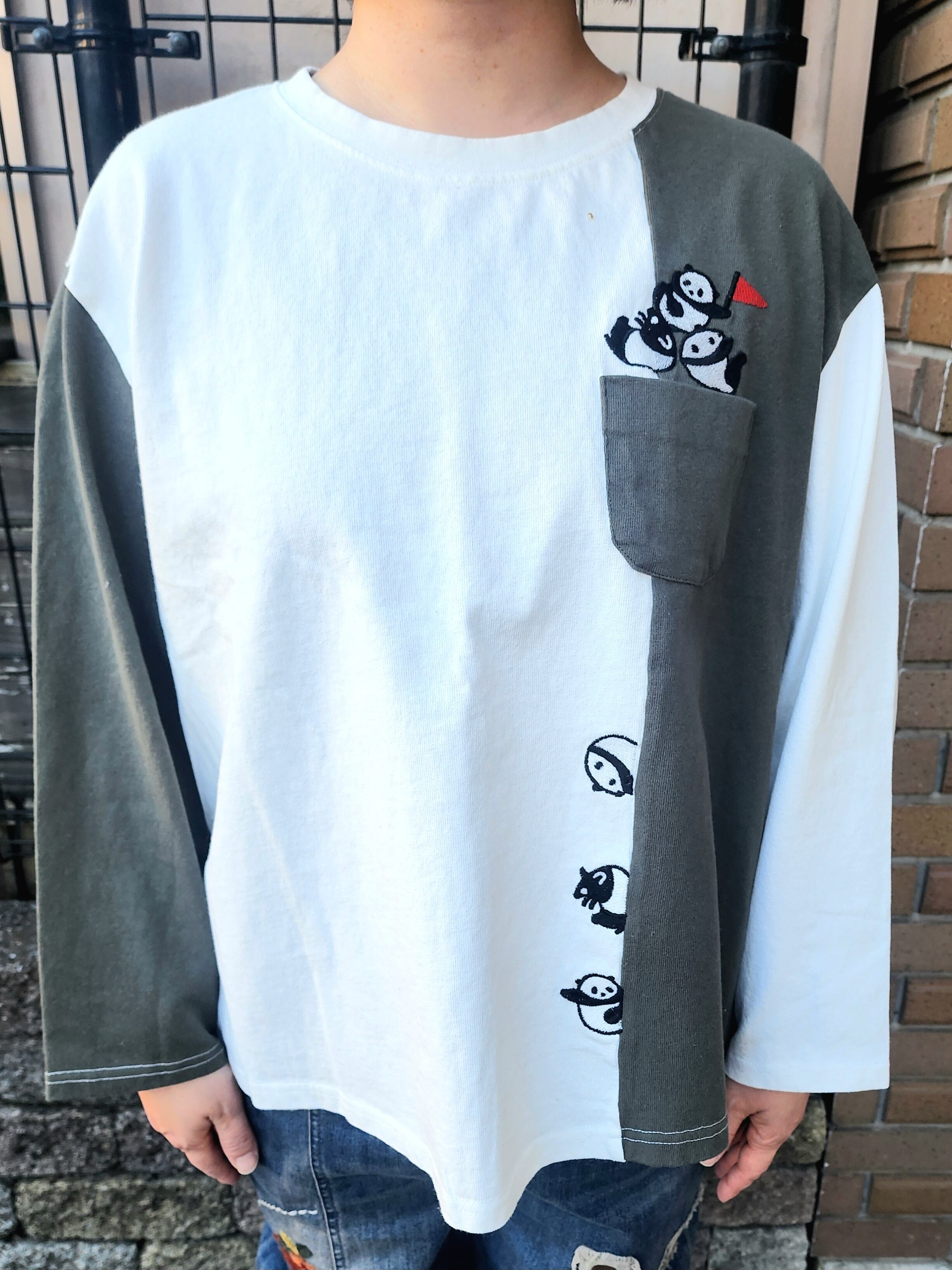 バイカラーの動物たちに合わせたバイカラーのプルオーバーで、ユーモアあふれる一枚。