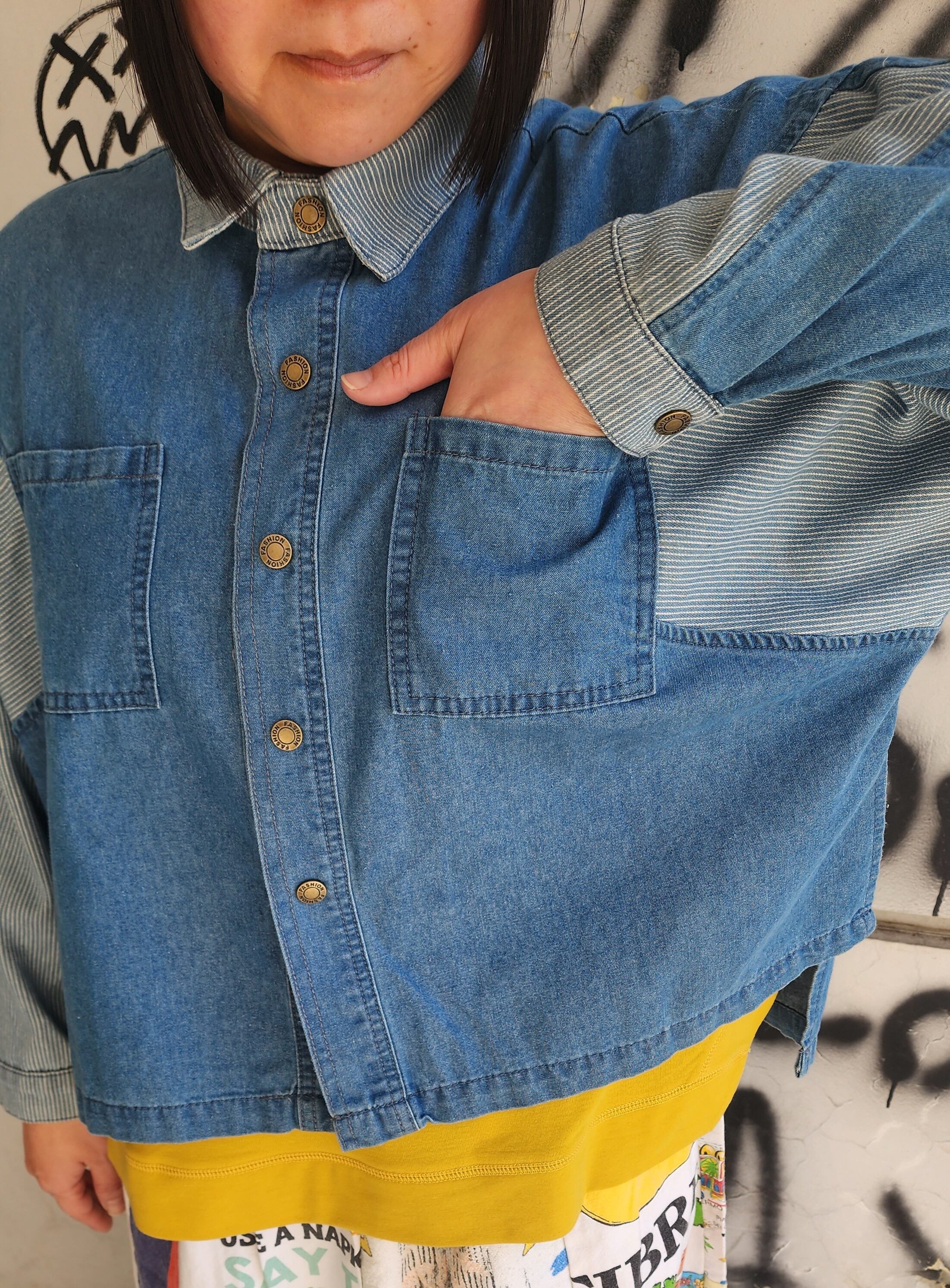 〈GENTIL〉デニム×ヒッコリー切替シャツ